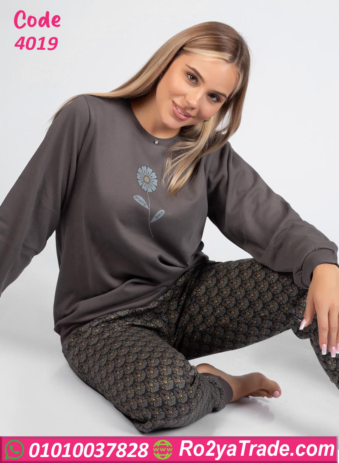 بيجامة شتوي حريمي ناعمة ومريحة جدًا بخامة دافية وسوفت، بلوزة طويلة سادة بطبعة زهرة أنيقة وبنطلون مشجر راقي ✨