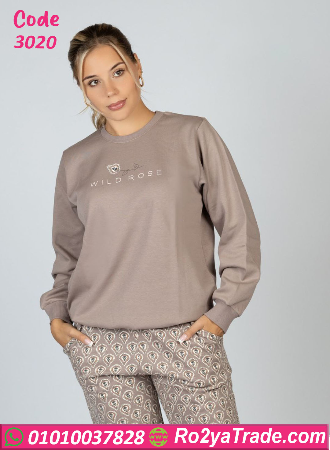 بيجامة شتوي حريمي ناعمة جدًا بخامة دافئة مريحة، بلوزة بتصميم مطبوع “Wild Rose” وبنطلون منقوش شيك جدًا 💕