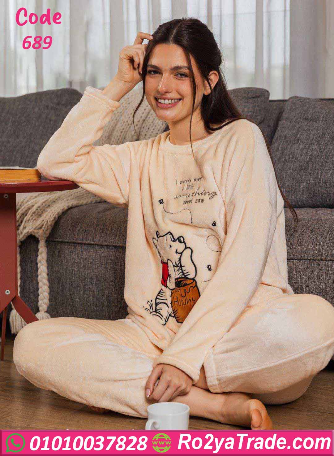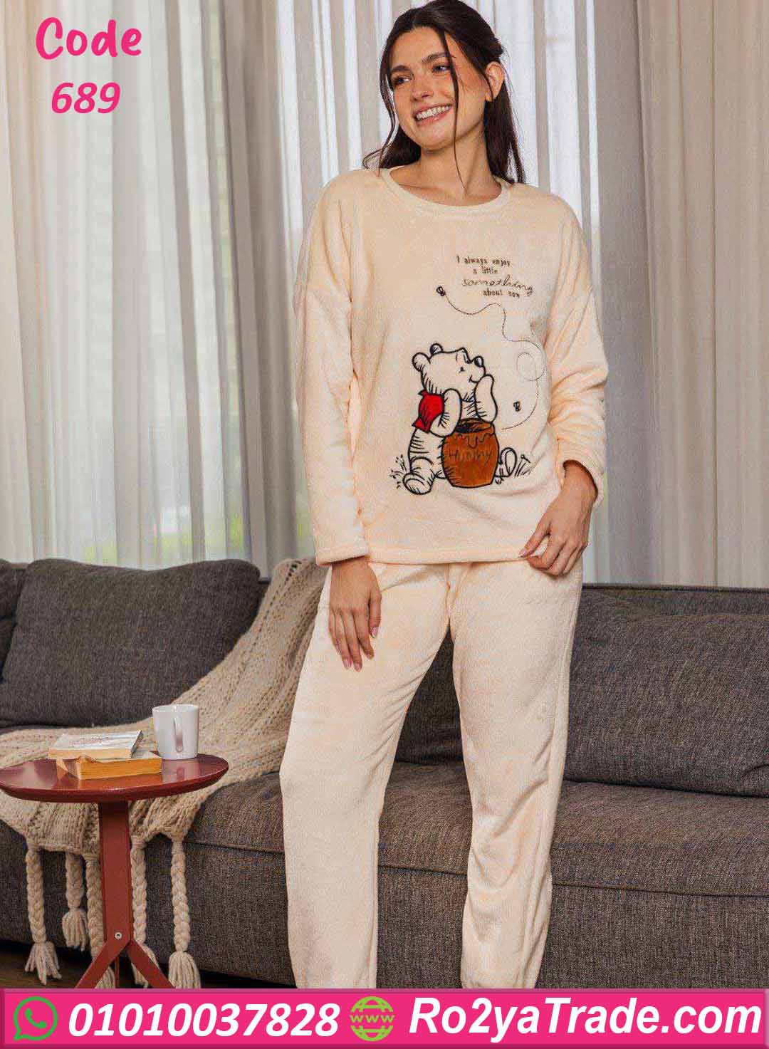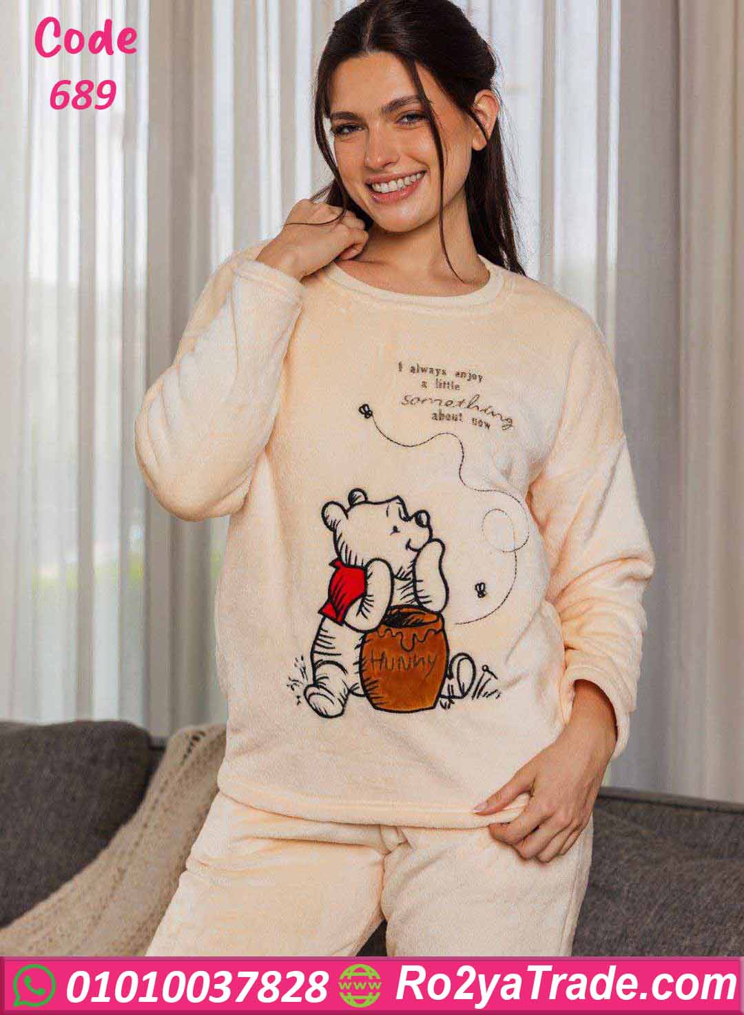 بيجامة دب عسل 689 من KERA اختيار مثالي لكل بنت بتحب الراحة والبساطة مع لمسة كيوت في ملابس البيت الشتوية. التصميم مكون من قطعتين،