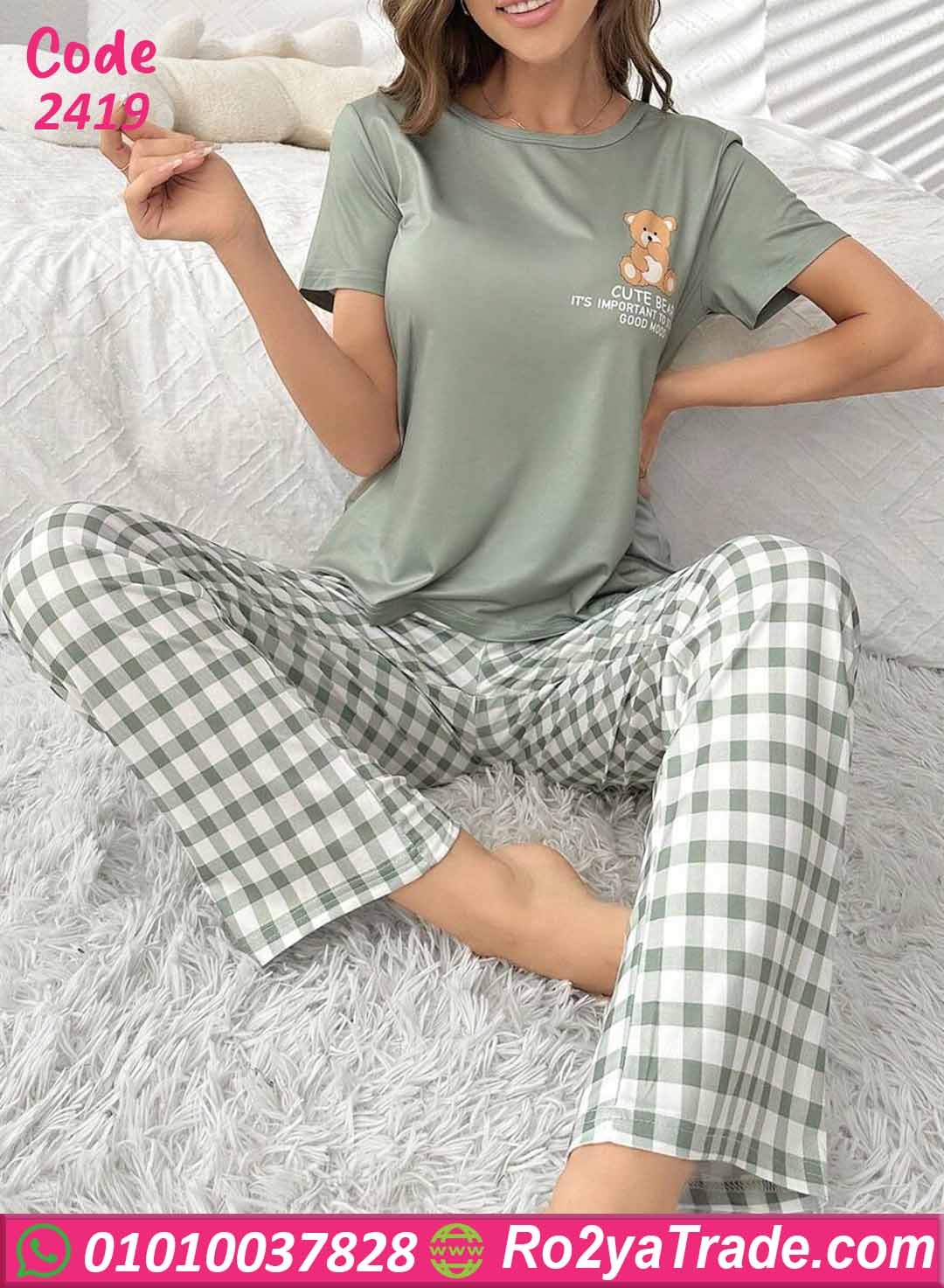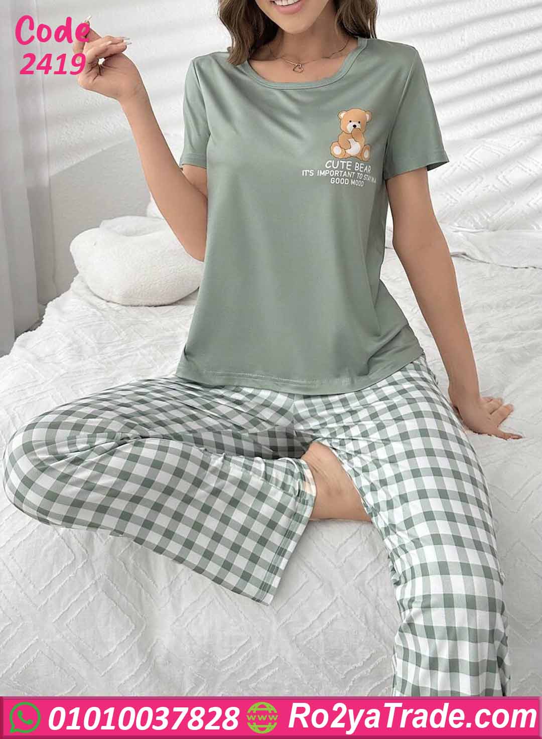 بيجامة نسائية صيفي بتصميم هادئ ولمسة كيوت بطبعة دب ناعمة تمنحك راحة وأناقة داخل المنزل.