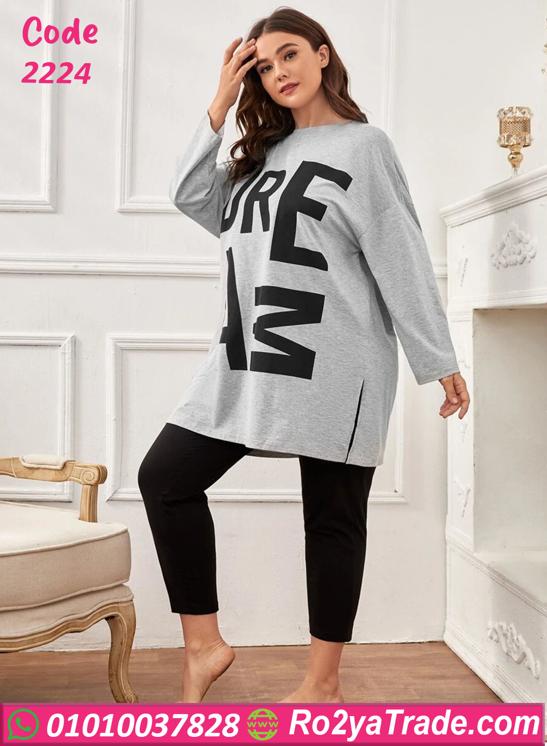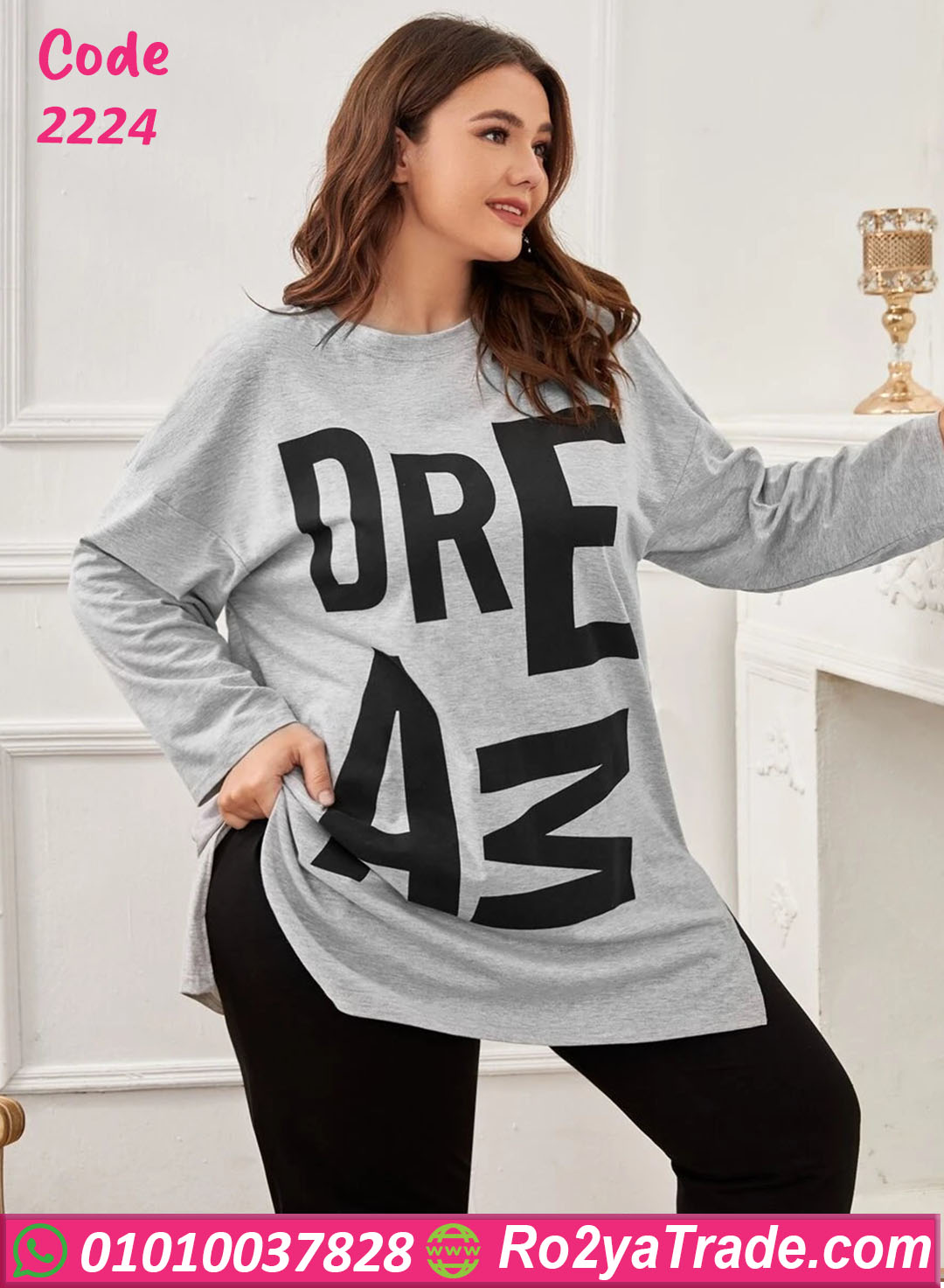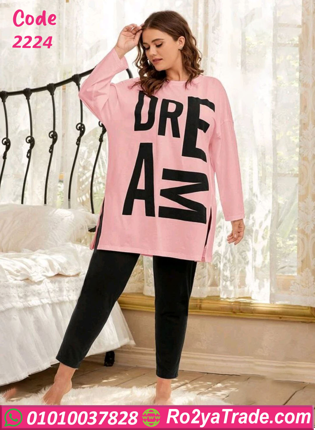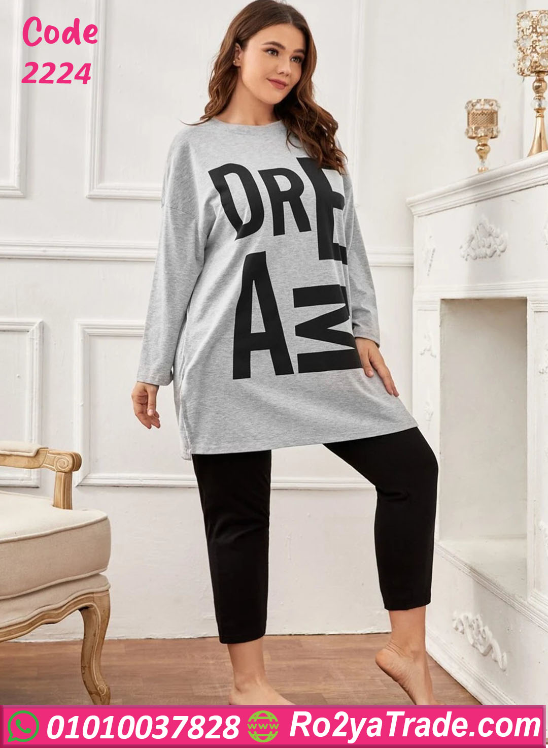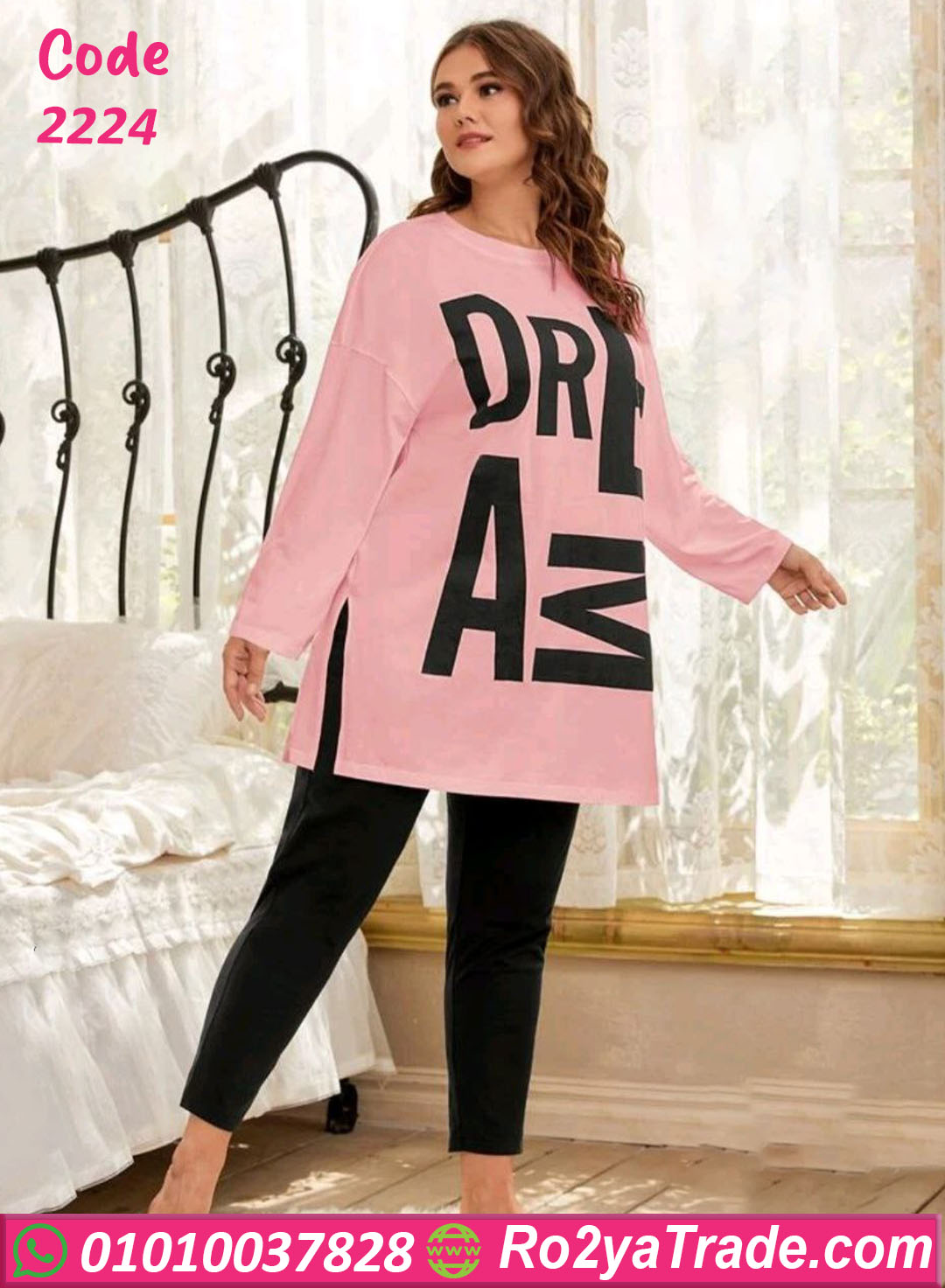 التصميم العصري بالطباعة الكبيرة DREAM بيضيف لمسة شبابية جذابة، والبنطلون الأسود بيدي توازن للألوان وشكل أنيق جدًا.