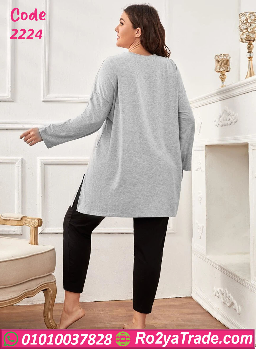 الطقم مثالي للبيت أو للسهرات المريحة في الشتاء، بخياطة ممتازة وضبط مقاسات مناسب للسيدات الممتلئات.