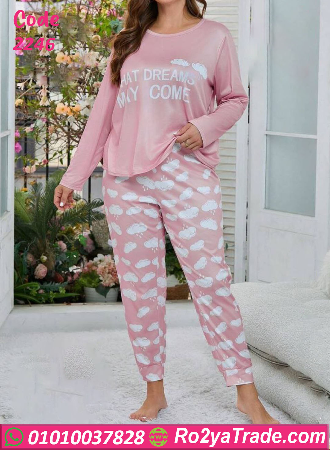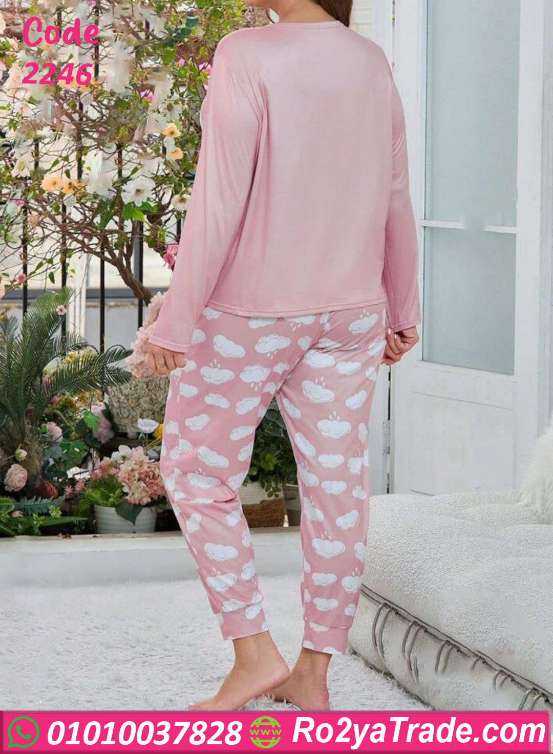 التصميم باللون البينك المميز مع نقشة السحاب الأبيض بيخليها شكلها بناتي جدًا وهادي. الخامة طرية وناعمة على الجسم، مش بتكهرب ولا بتكشّ مع الغسيل.