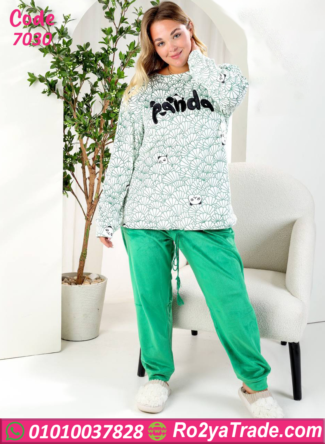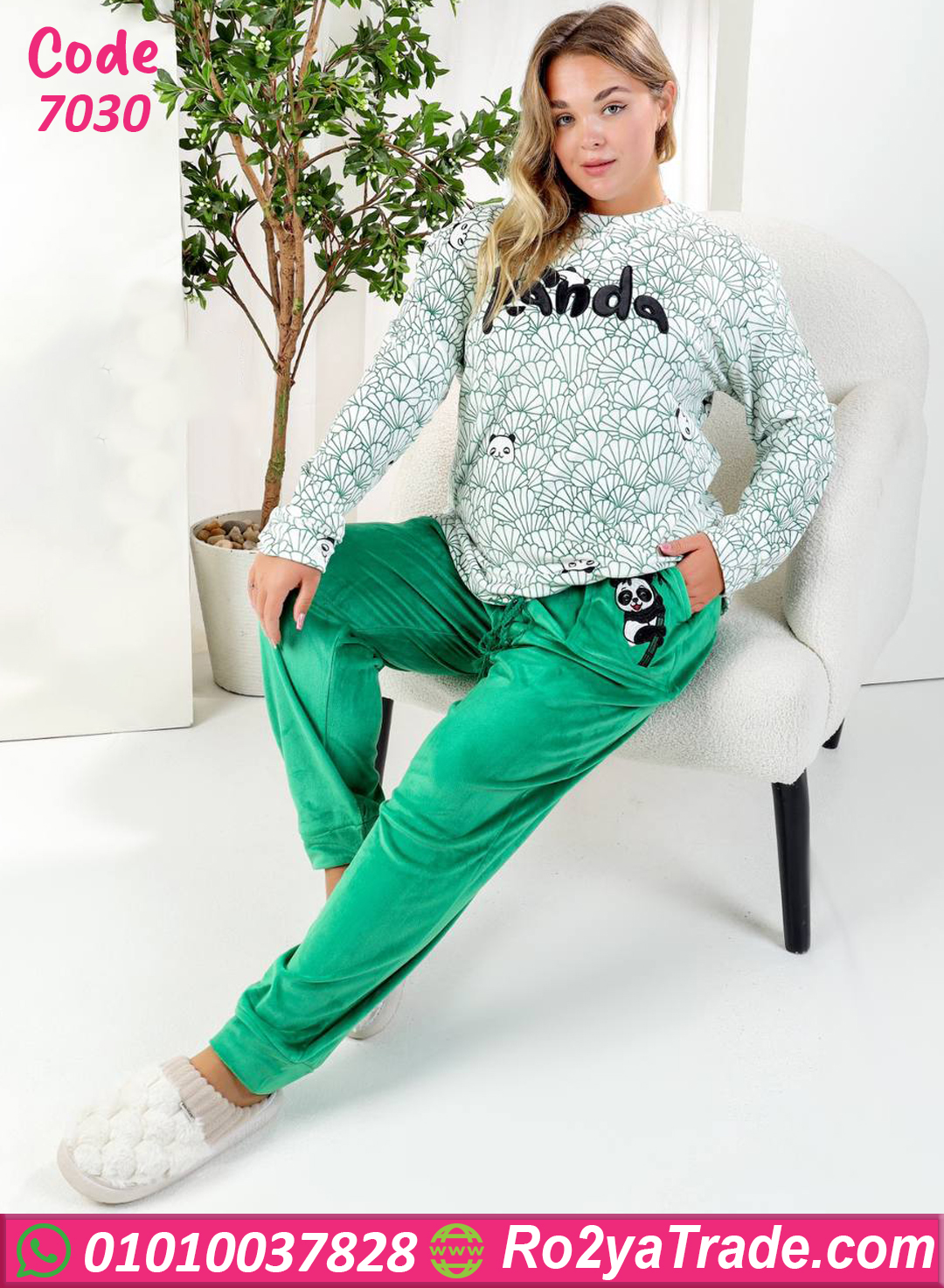 بيجامة شتوي قطيفة مريحة جدا بنقشة باندا لطيفة 🐼، تصميم عملي للمقاسات الكبيرة،