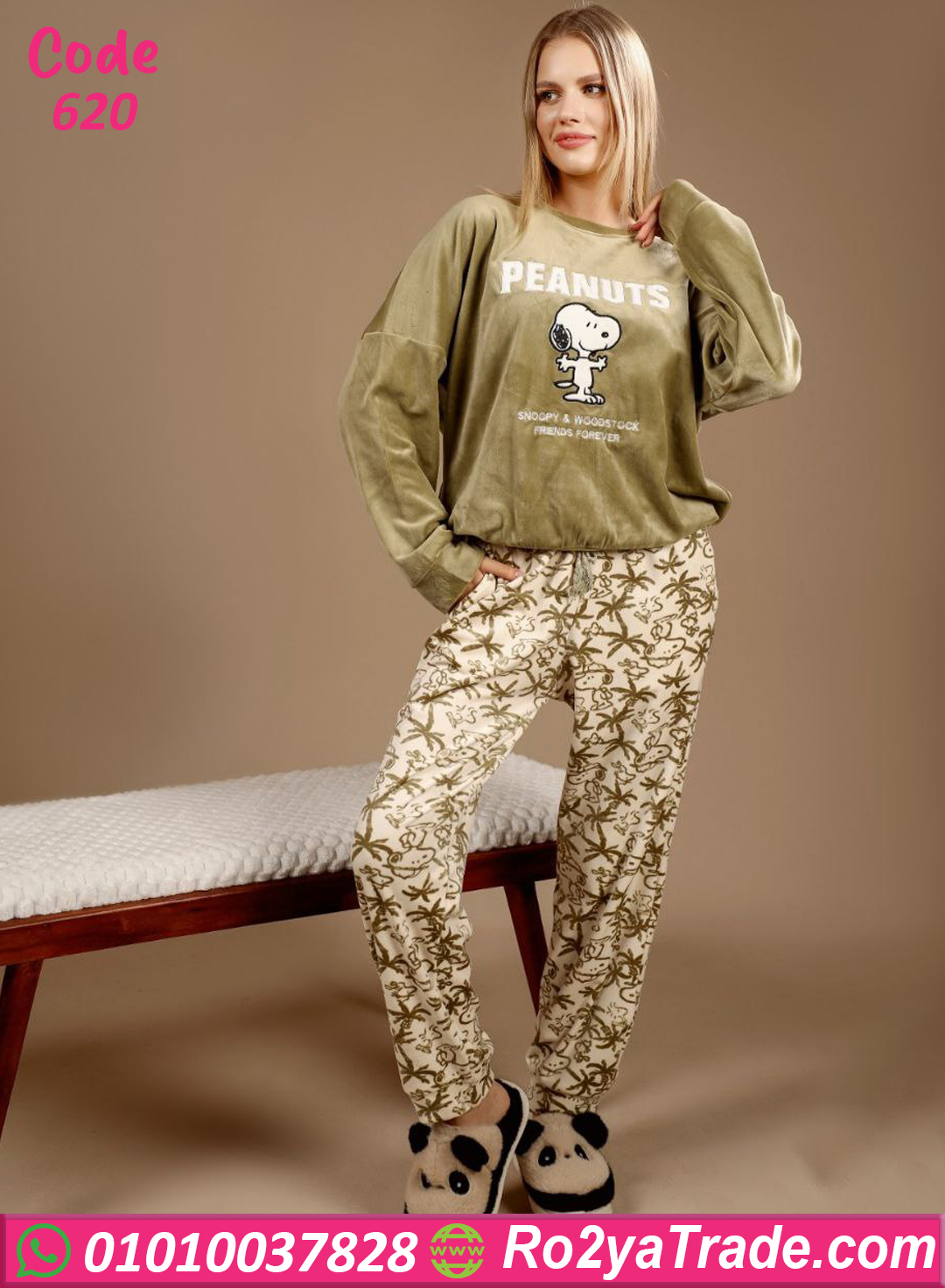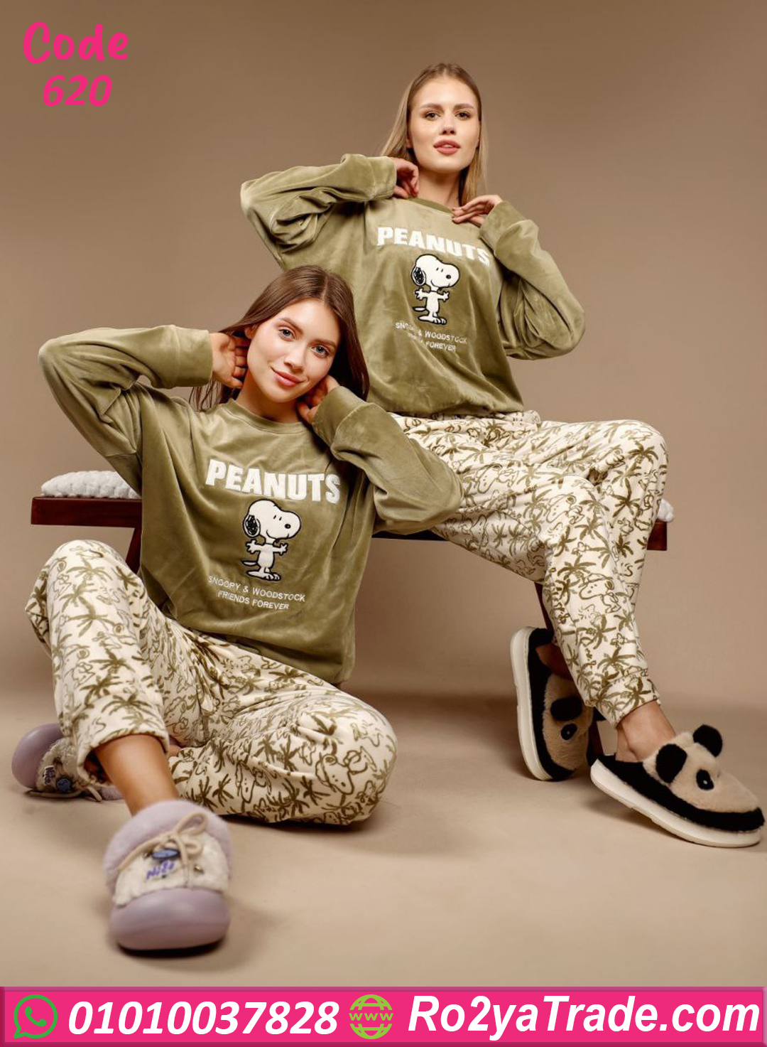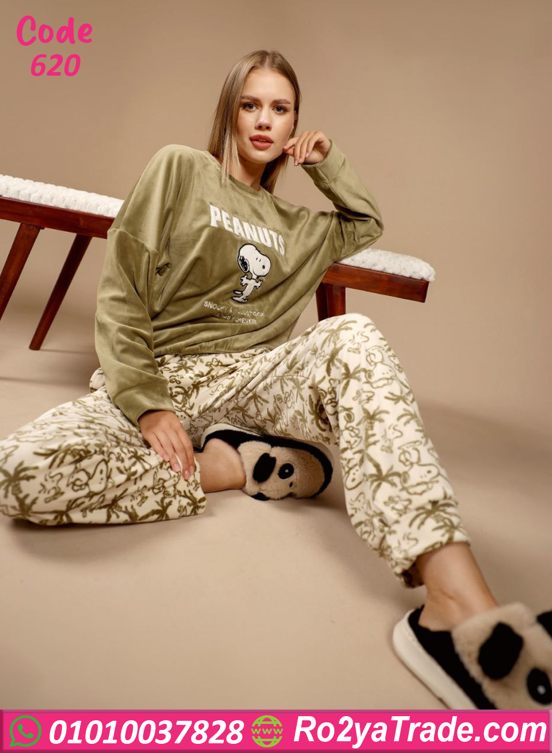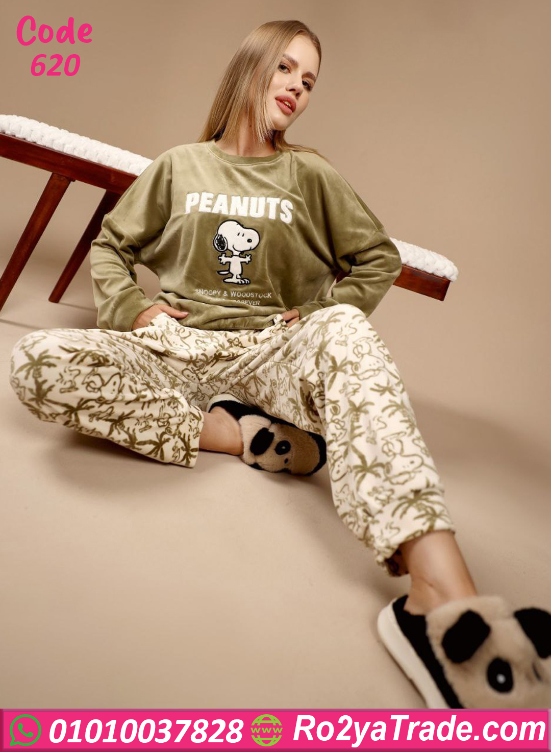 بيجامة شتوي أنيقة بخامة قطيفة ناعمة جدًا، بتصميم كاجوال مطبوع بشخصية Snoopy المحبوبة ❤️