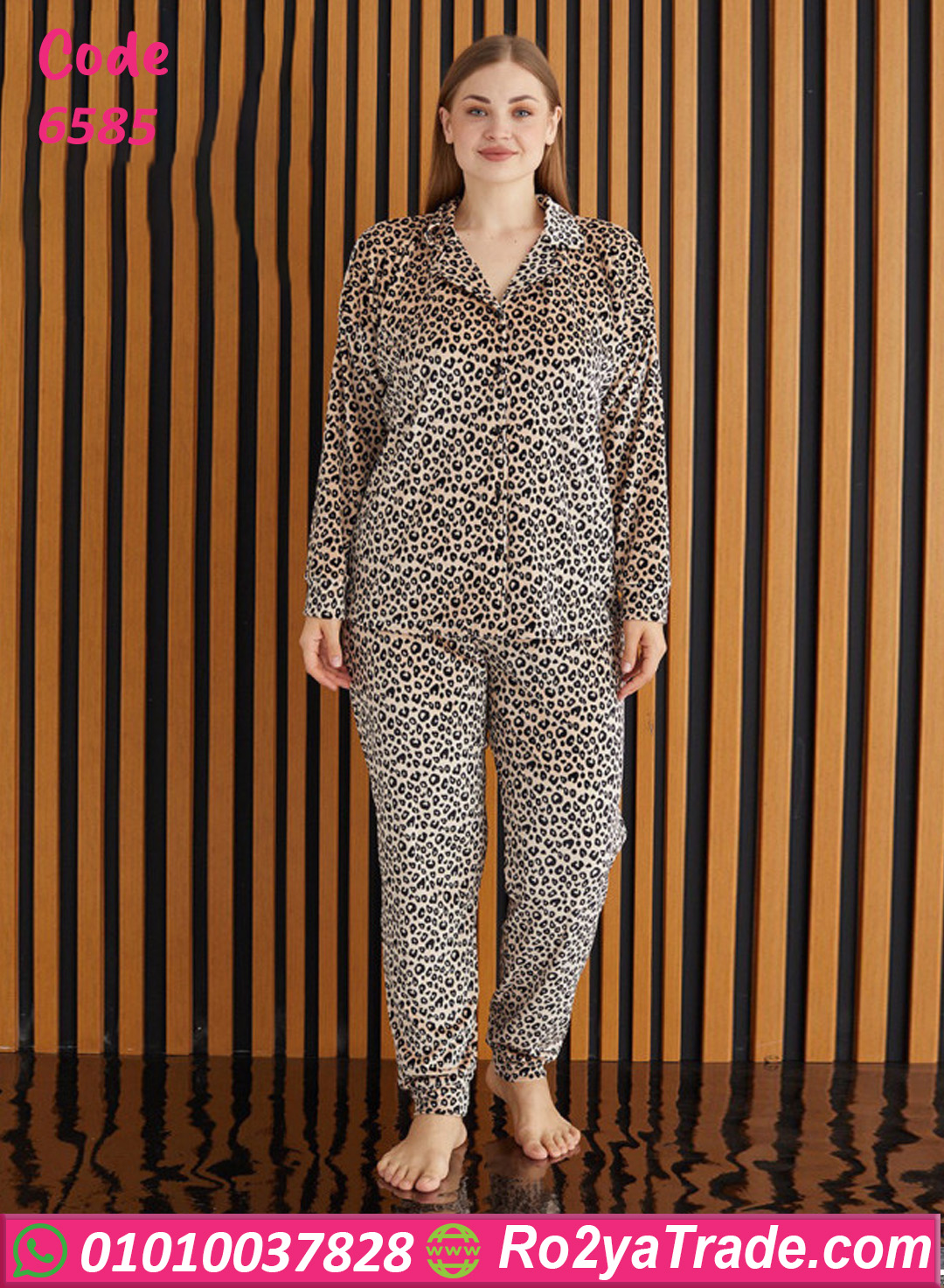 بيجامة حريمي شتوي بنقشة تايجر أنيقة، خامة ناعمة ومريحة بتدي إحساس بالدفا، تصميم عملي مناسب للبيت والنوم.