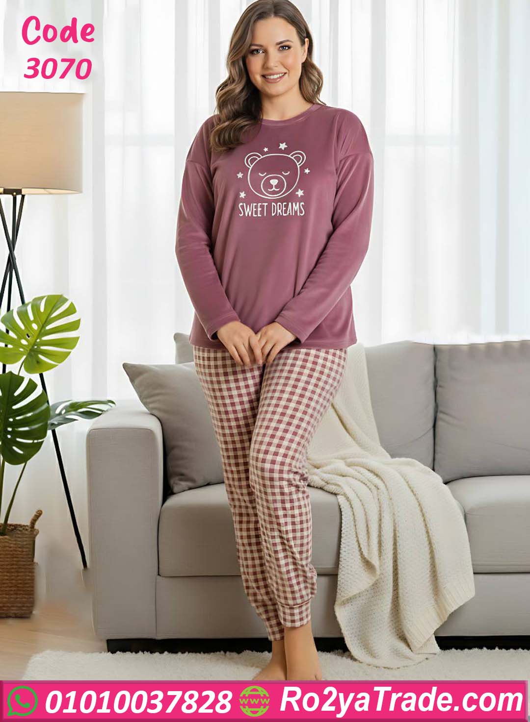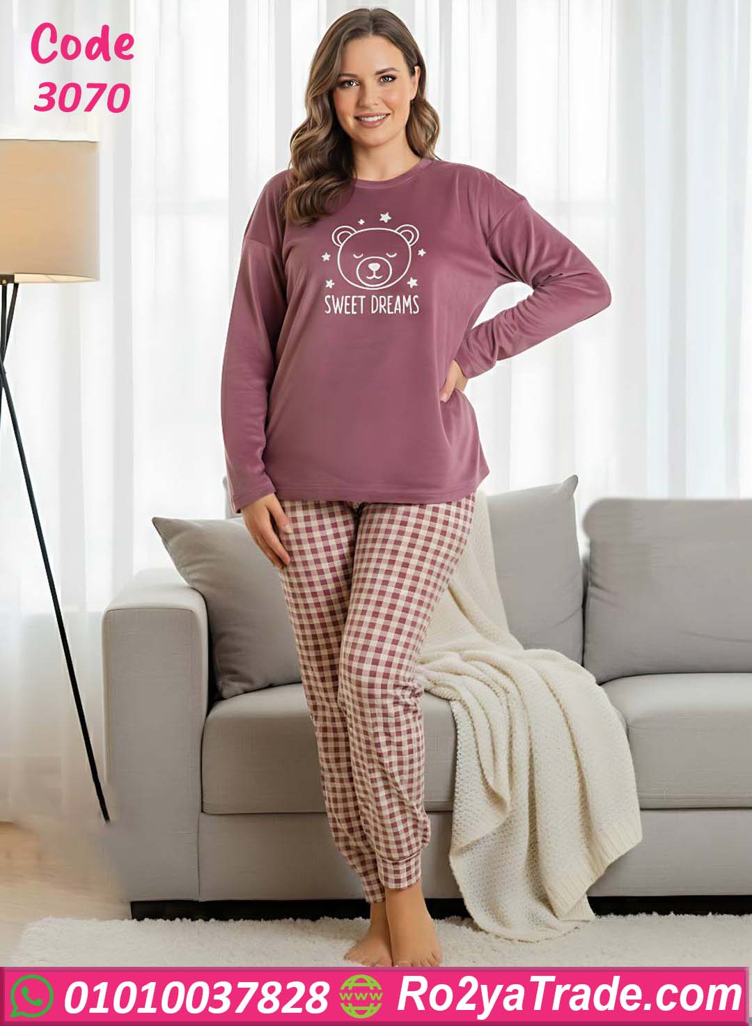 موديل كود 3070 اختيار ممتاز للشتاء وللبنات اللي بتدور على الراحة والدفا في نفس الوقت. البيجامة معمولة من خامة شتوي ناعمة على الجسم وبتدي إحساس دافي ومريح طول اليوم.