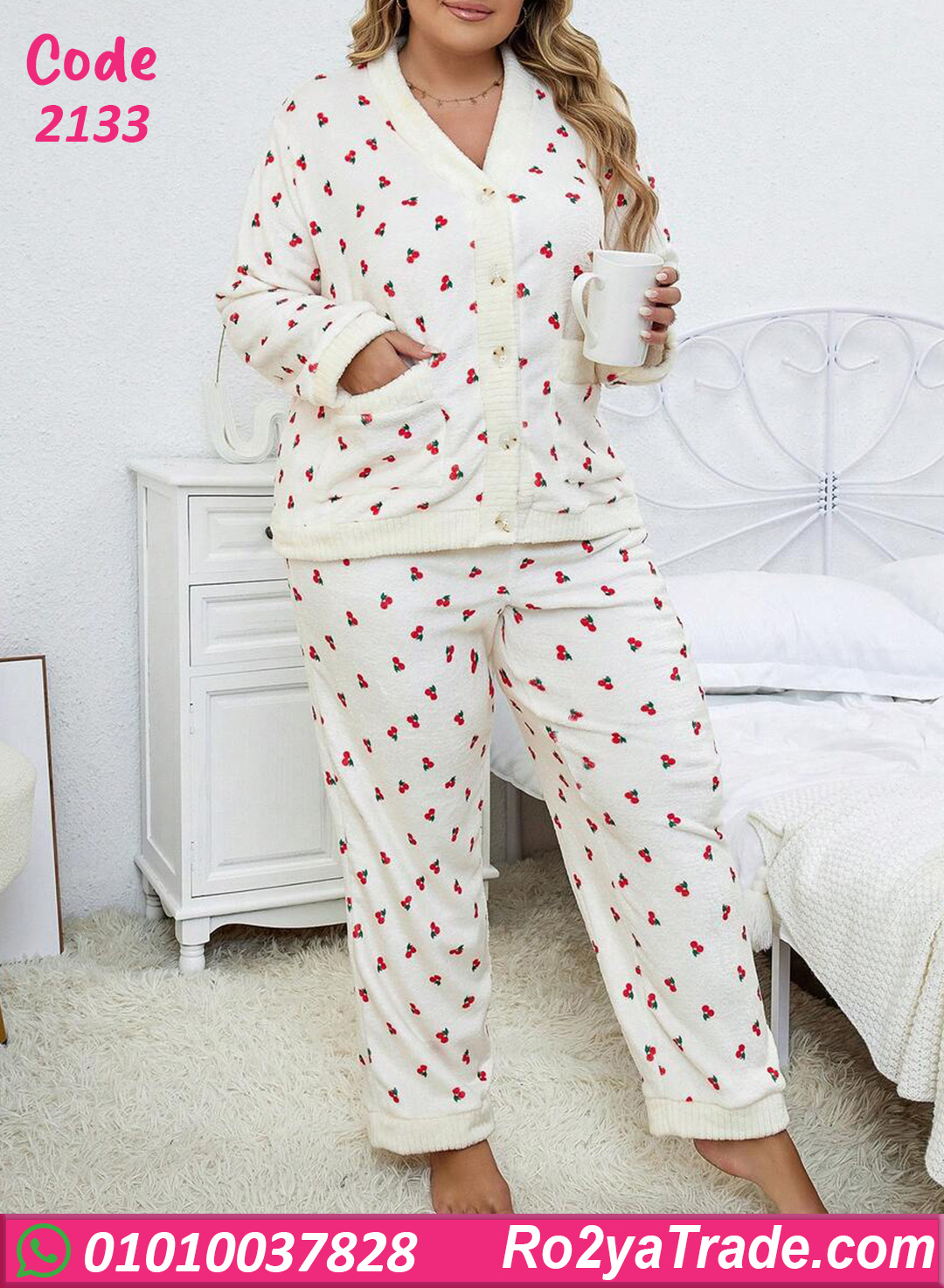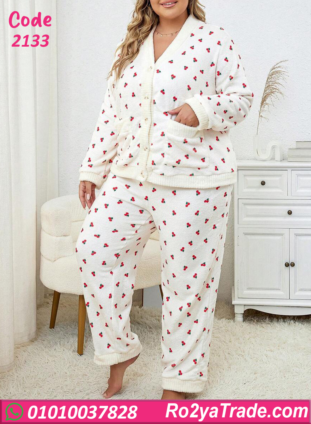 بيجامة شتوي حريمي شيك ومريحة جدًا، خامتها ناعمة وبتدي إحساس دفا ممتاز، تصميم عملي يناسب اللبس اليومي في البيت،