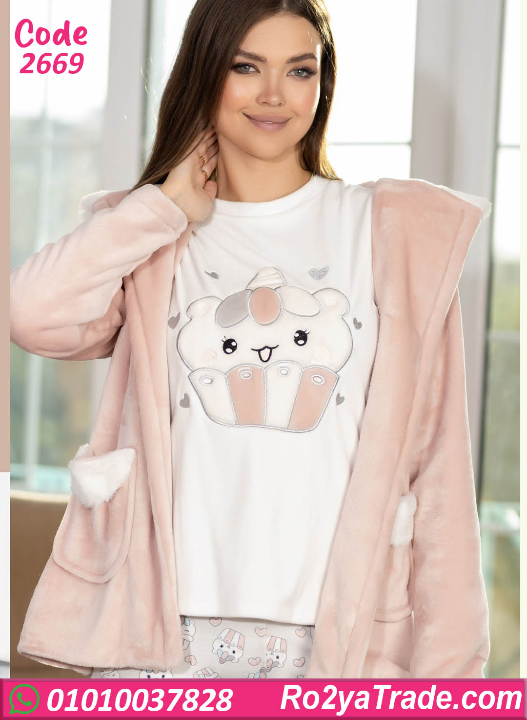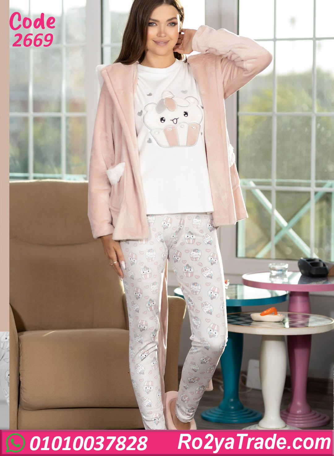 بيجامة شتوي حريمي مميزة بتصميم أنيق وخامة دافية تناسب الجو البارد، بتتكون من تيشيرت وبنطلون مع جاكت فرو ناعم، بتوفر أعلى درجة راحة ودفا أثناء اللبس. الخامة ناعمة على الجسم ومناسبة للاستخدام اليومي في البيت، وكمان اختيار ممتاز للهدايا. تصميم عملي وألوان هادية تناسب كل الأذواق، قطعة أساسية لكل ست بتحب الراحة والشكل الشيك في نفس الوقت. كود 2669