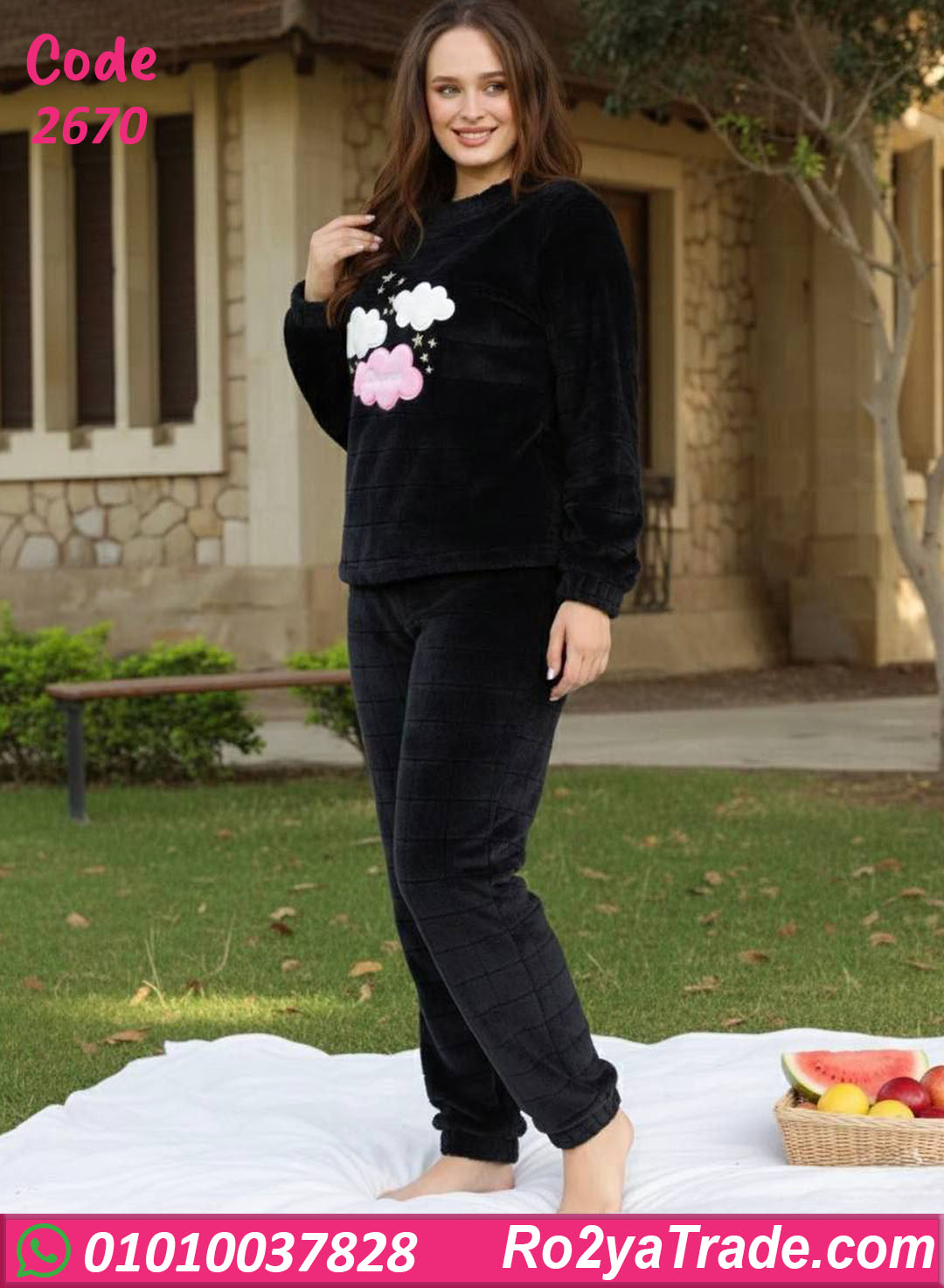 بيجامة شتوي حريمي موديل 2670 اختيار عملي لكل ست بتدور على الدفا مع شكل لطيف. التصميم مكوّن من قطعتين بخامة فرو ناعمة ومبطنة، مع رسمة سحاب كيوت على الصدر بتدي شكل مبهج وعصري. البنطلون مريح بوسط مطاطي بيوفّر حرية حركة وسهولة في اللبس. الخامة تقيلة وتحافظ على الحرارة، وده بيخلي البيجامة مثالية للاستخدام اليومي داخل البيت في أيام الشتاء الباردة.