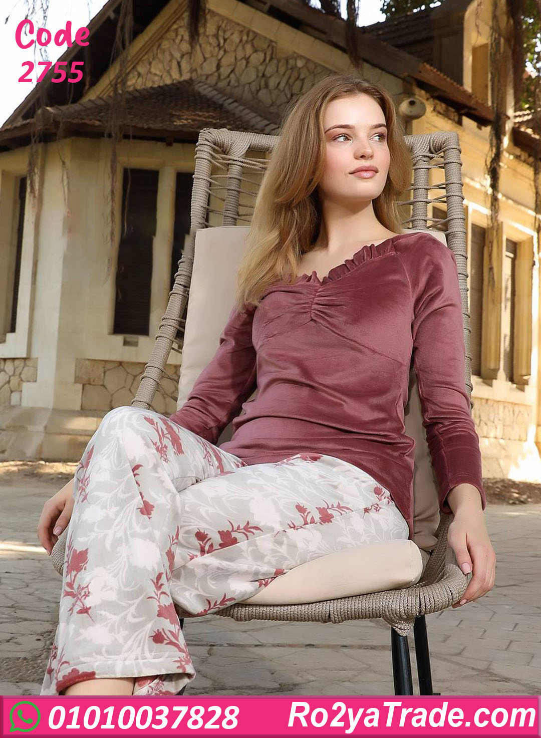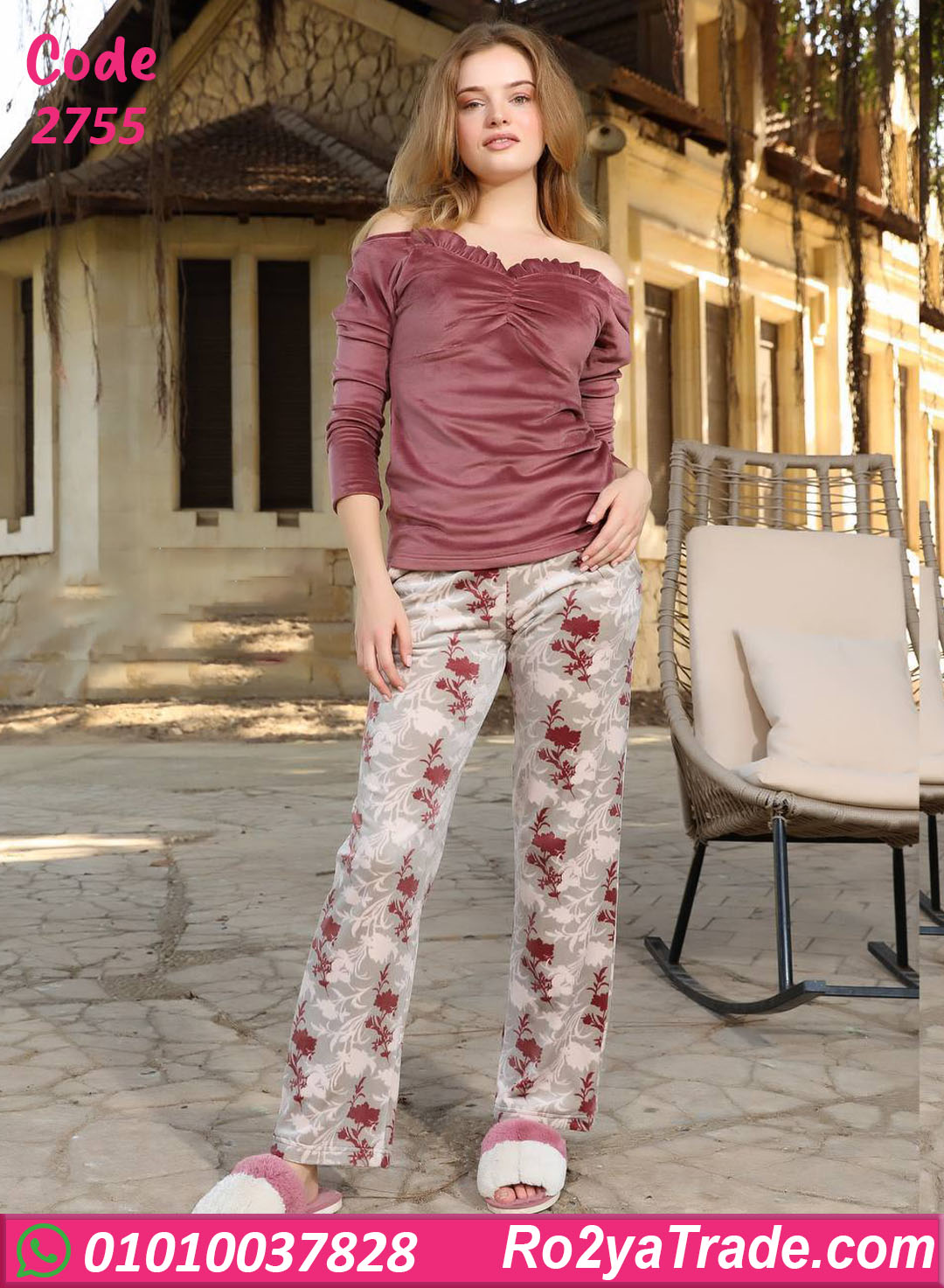 بيجامة شتوي حريمي موديل 2755 اختيار مميز لكل ست بتحب تجمع بين الراحة والشياكة. التصميم مكوّن من بلوزة بفتحة كتف ستايل أوف شولدر بتدي لمسة أنثوية ناعمة، مع بنطلون مطبوع بنقشة ورد هادية وألوان متناسقة. الخامة ناعمة على الجسم ومناسبة للشتا، بتوفّر دفا كويس من غير أي إحساس بالتقل، والبنطلون بقصة مريحة بيسمح بحرية حركة كاملة. البيجامة عملية جدًا للبس اليومي داخل البيت وكمان شكلها شيك ومختلف.