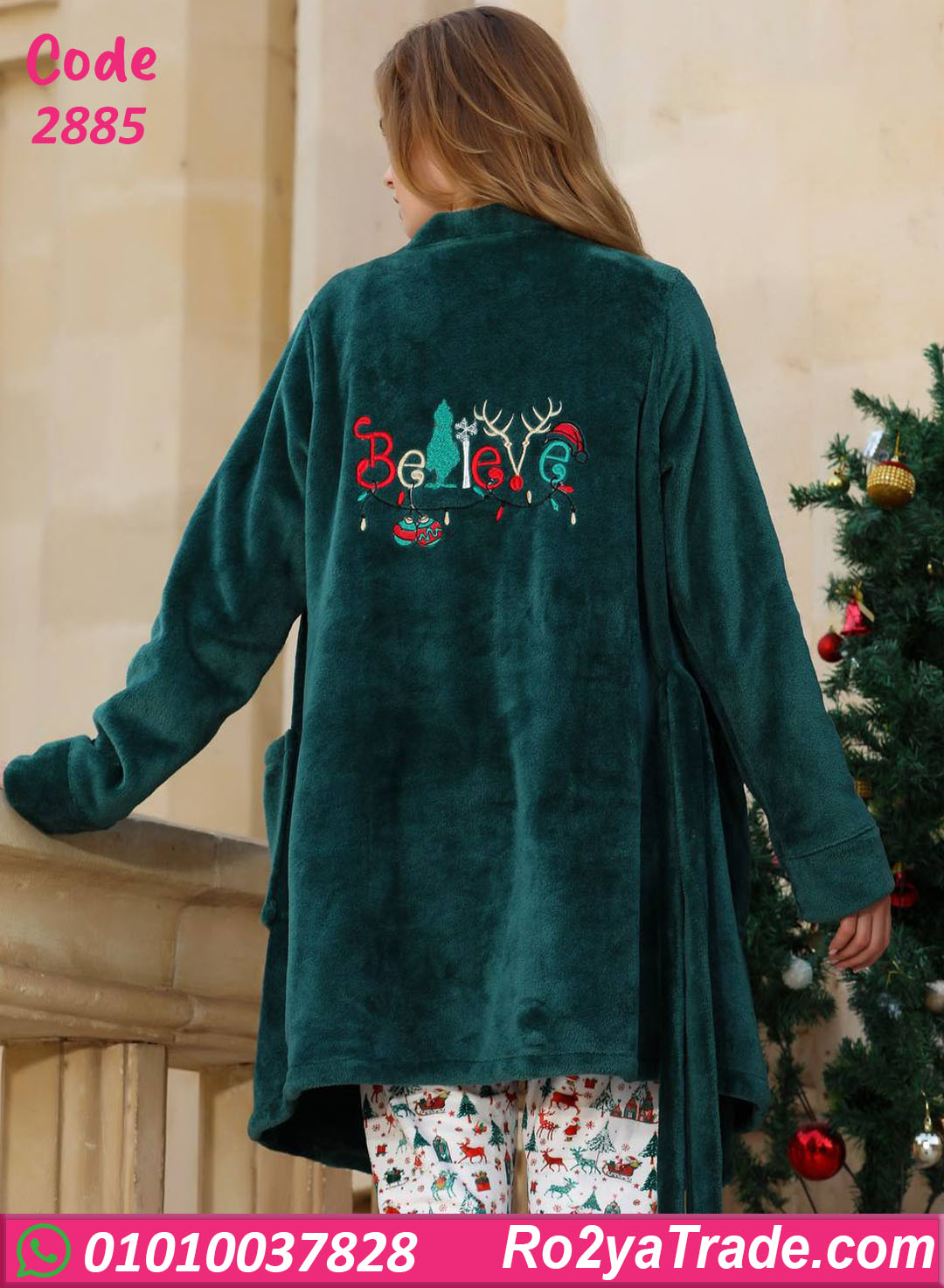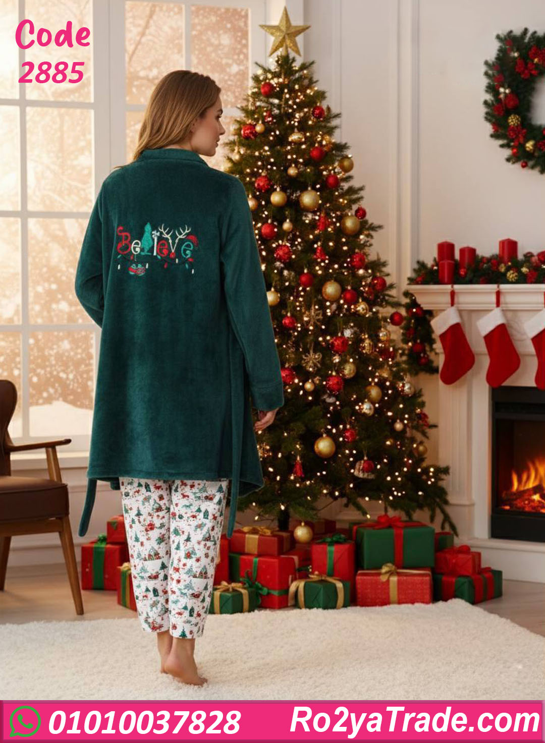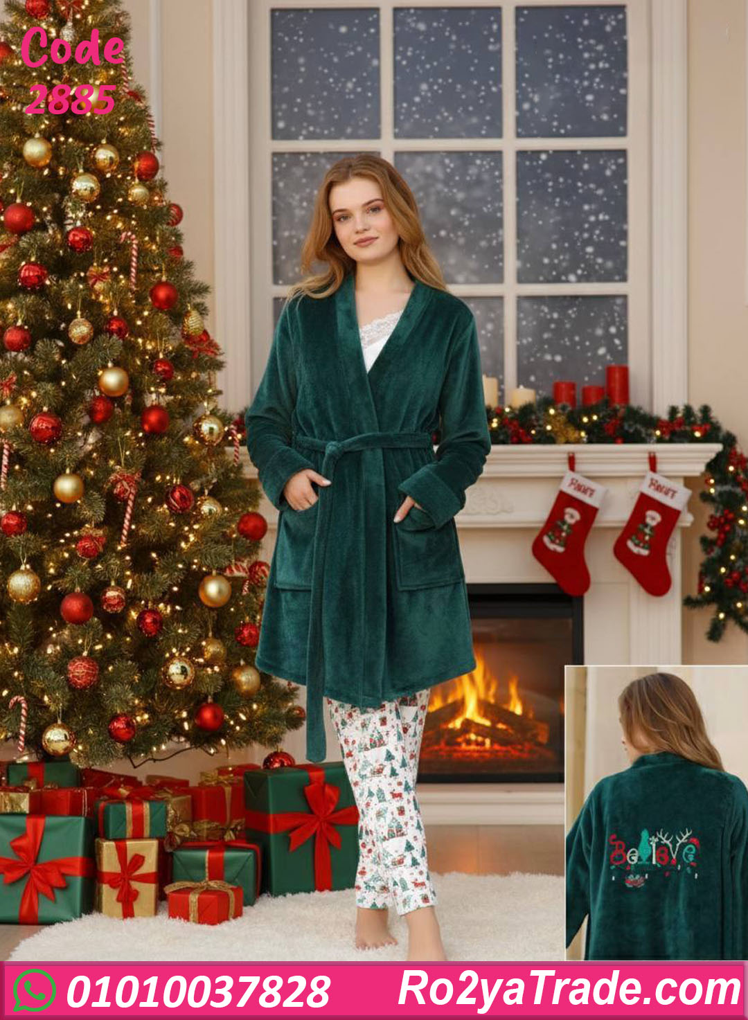 بيجامة شتوي حريمي موديل 2885 اختيار مثالي لأيام الشتاء واللمّات الدافية. التصميم مكوّن من روب قطيفة ناعم بحزام على الوسط وجيوب عملية، مع بنطلون بطبعة شتوية مبهجة يدي شكل أنيق ومميز. الخامة قطيفة تقيلة ودافية، لطيفة على الجسم ومناسبة للاستخدام اليومي داخل البيت. الطقم عملي وسهل اللبس وبيجمع بين الشياكة والراحة في نفس الوقت.
