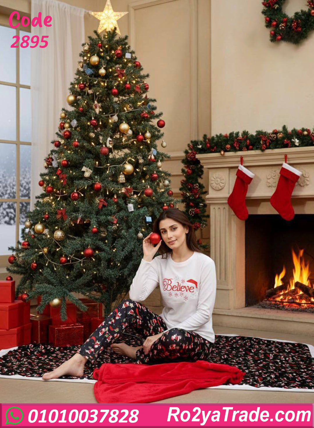 بيجامة شتوي حريمي موديل 2895 اختيار مثالي لأيام الشتاء واللمّات الدافية. التصميم مكوّن من جاكيت قطيفة دافي بقصة مريحة مع تيشيرت مطبوع ستايل شتوي، وبنطلون بطبعة كريسماس مميزة يدي شكل أنيق ومبهج. الخامة ناعمة على الجسم وتوفر دفا عالي من غير أي إحساس بالتقل، والطقم عملي وسهل اللبس ومناسب للاستخدام اليومي داخل البيت.
