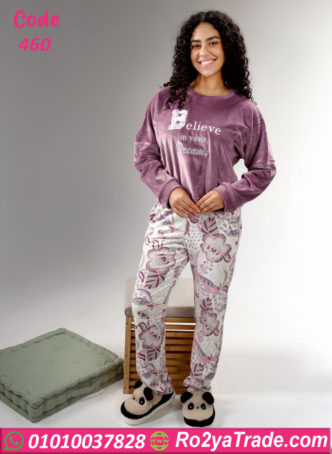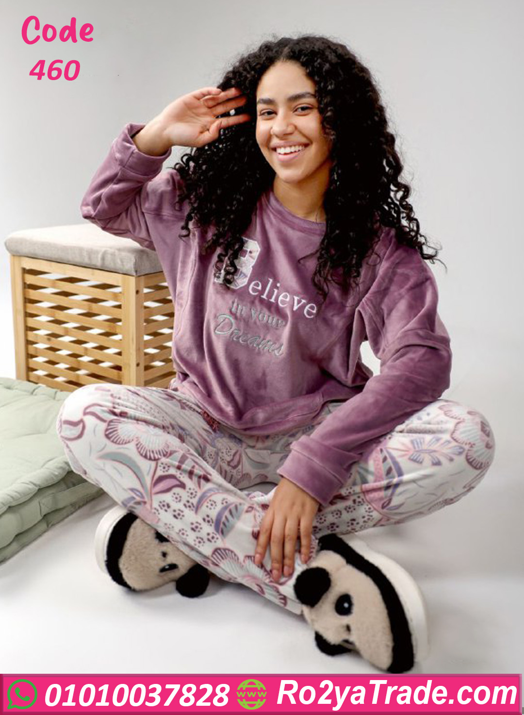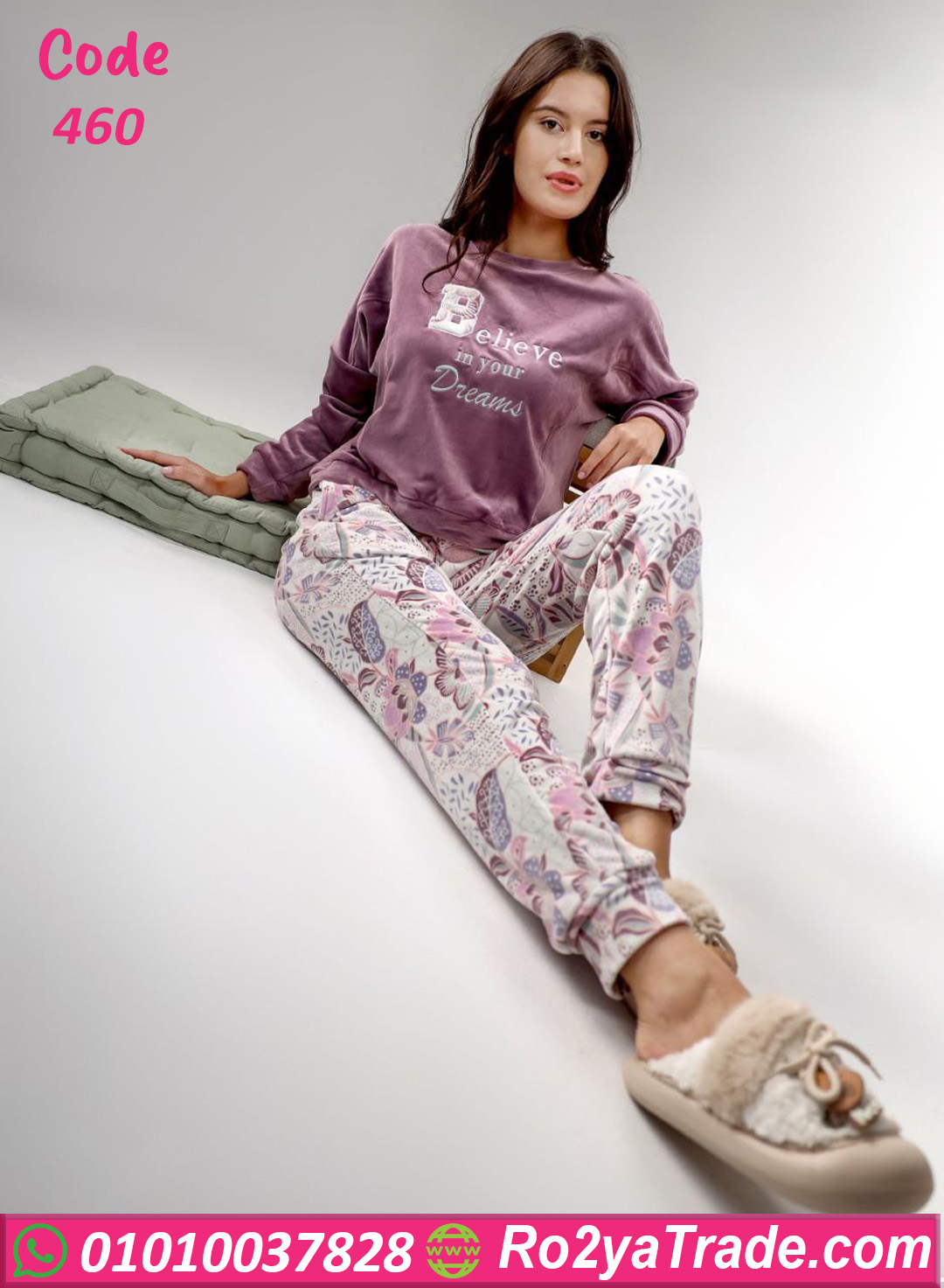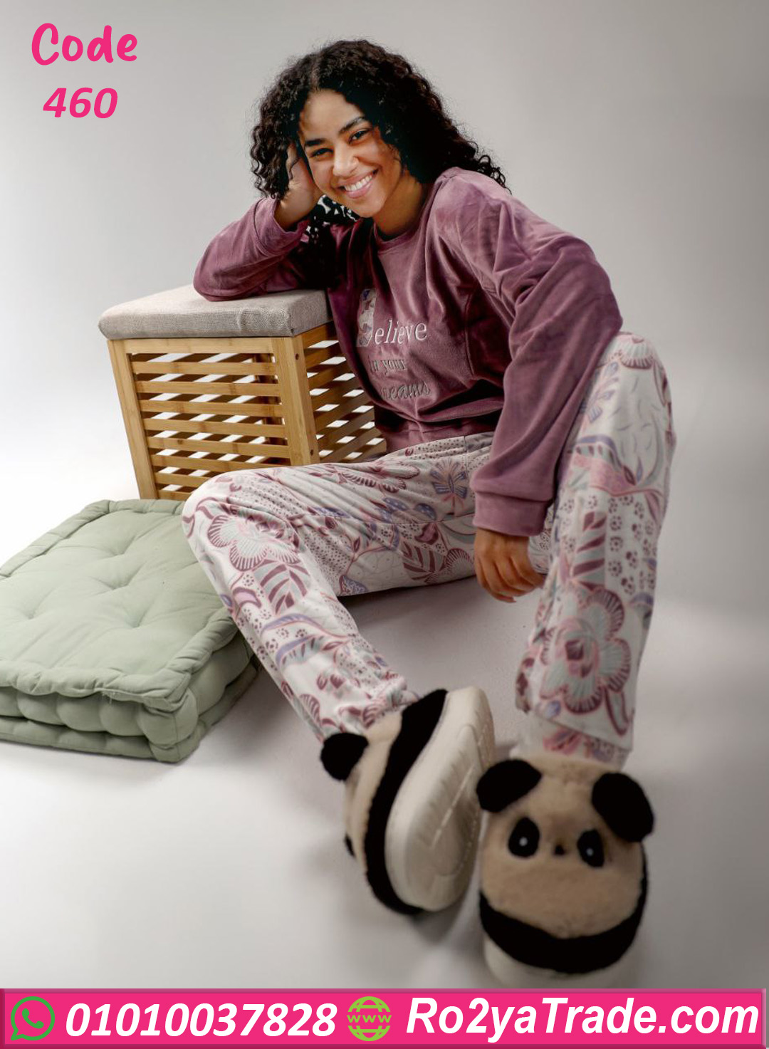 والبنطلون بنقشة ناعمة ومريحة في الحركة. مناسبة للستات اللي بتحب الراحة مع شكل بسيط وكيوت في نفس الوقت. اختيار ممتاز لأيام الشتاء الباردة. كود 460