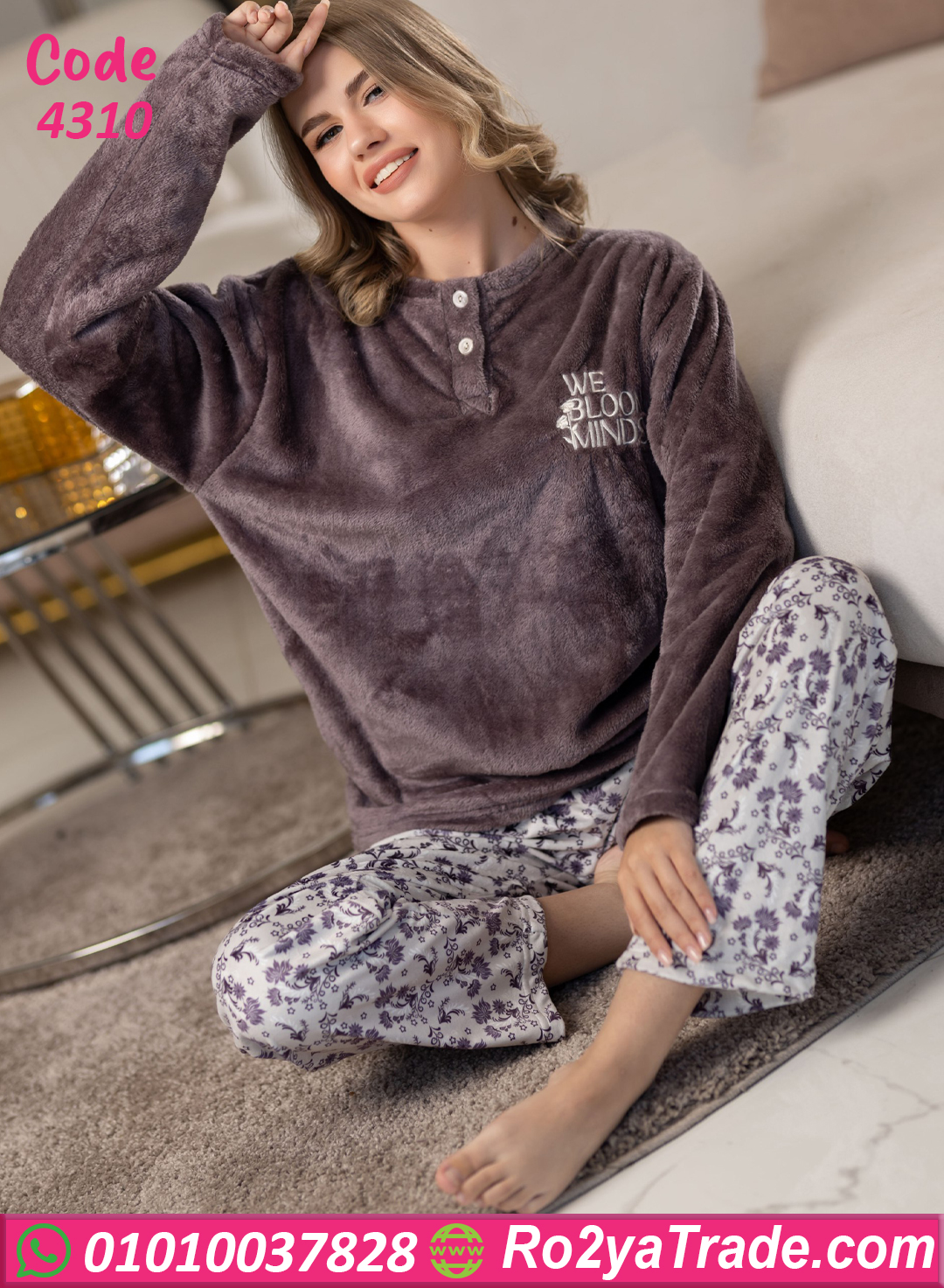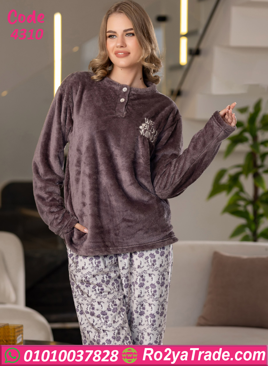 بيجامة شتوي قطيفة مريحة جدًا – كود 4310 – بخامة ناعمة مش هتقدري تستغني عنها في البرد ❤️