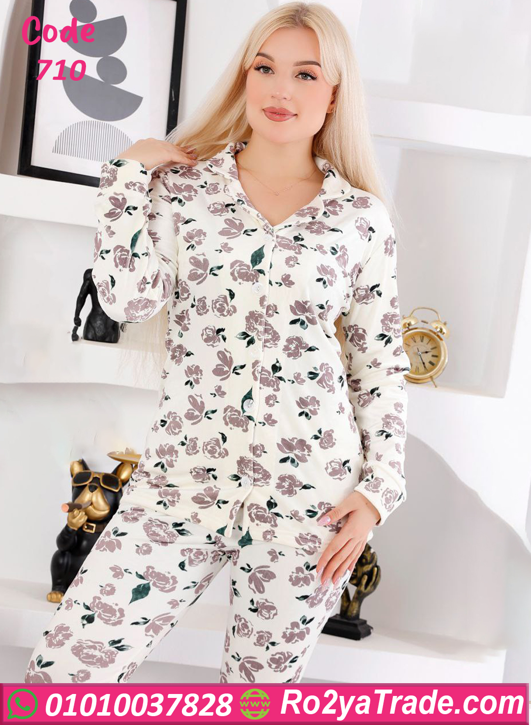 بيجامة شتوي قطن ستانبس بنقشة ورد شيك ومناسبة للدفا والراحة 👌