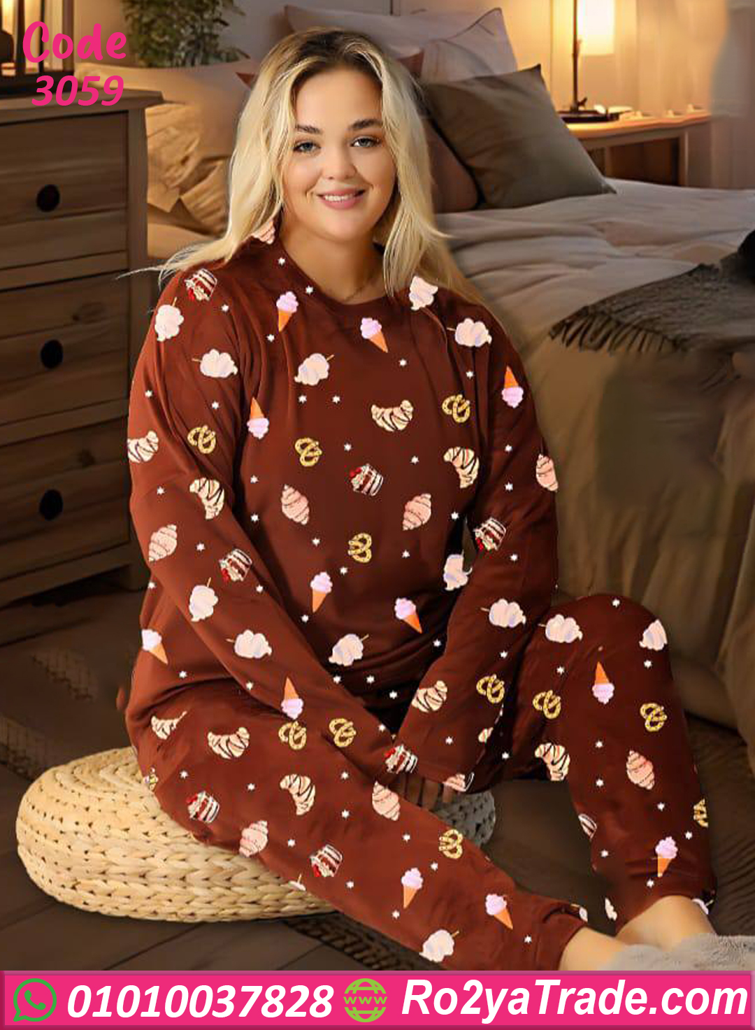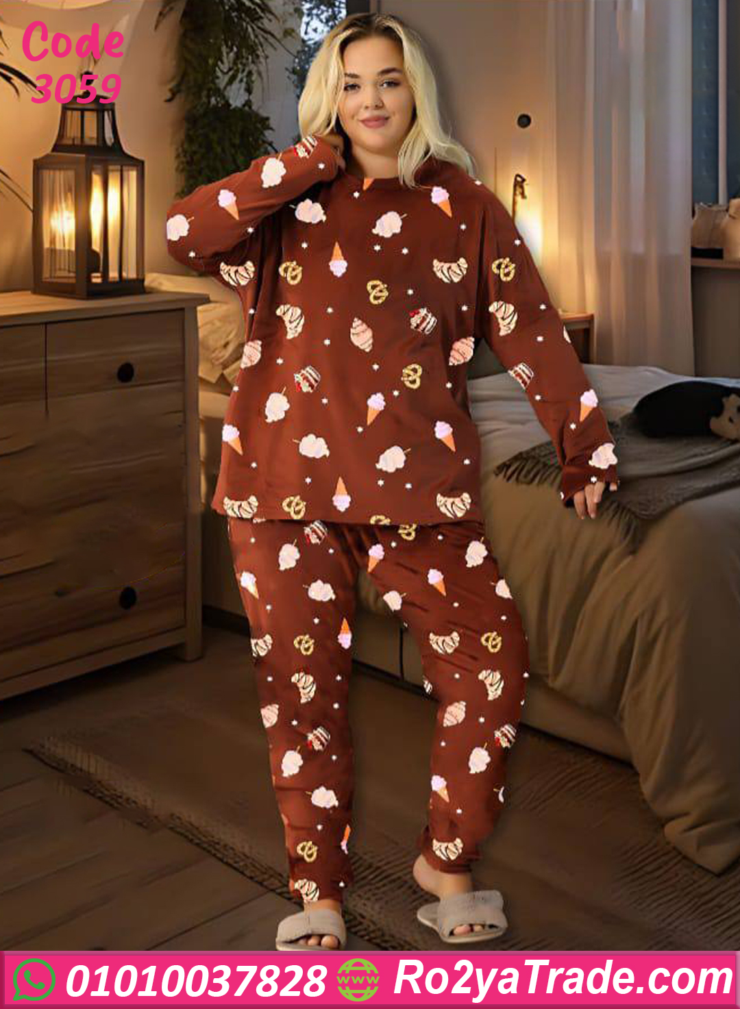 استمتعي بالدفا والأناقة مع بيجامة فرو شتوي كود 3059 😍