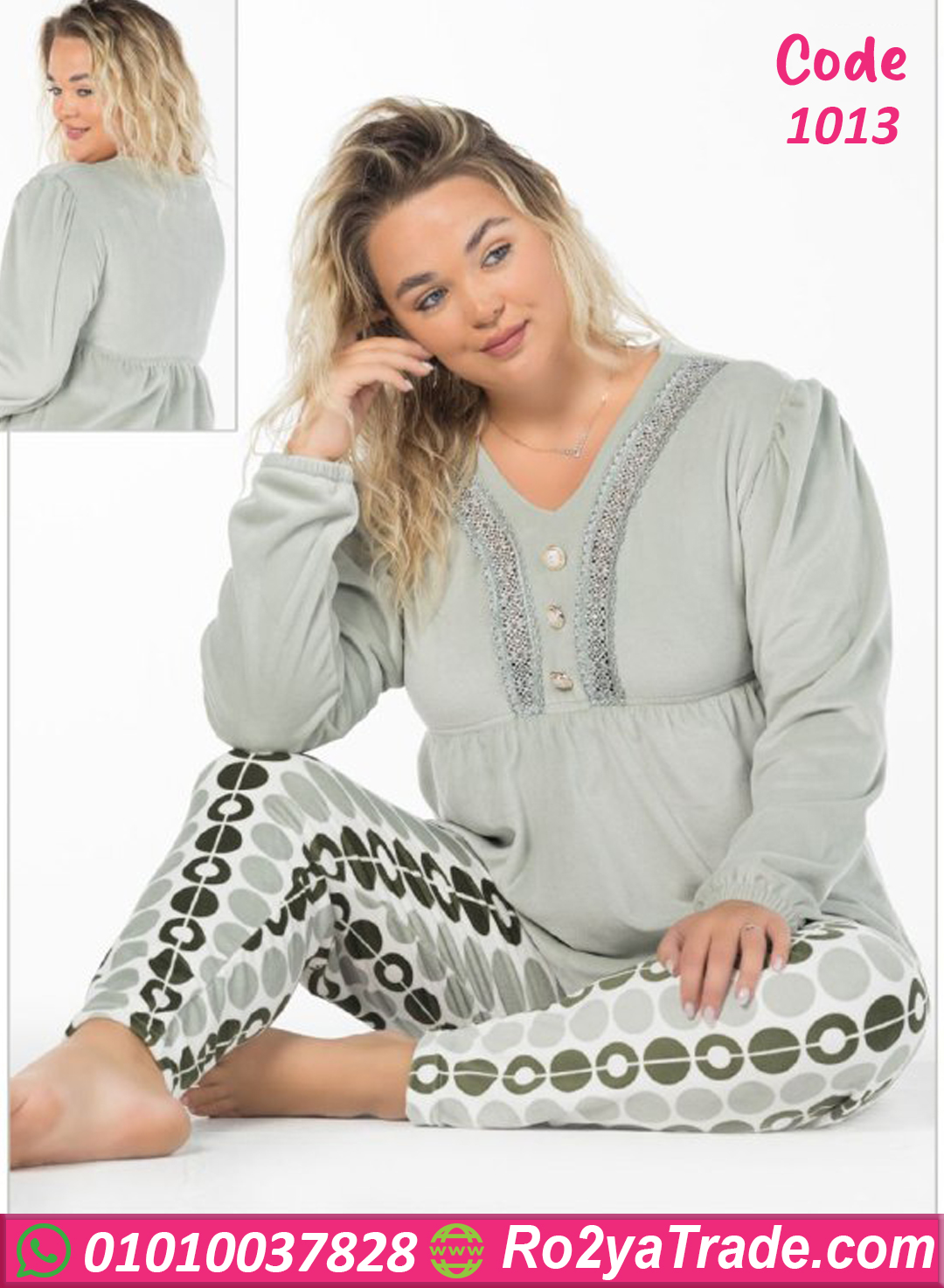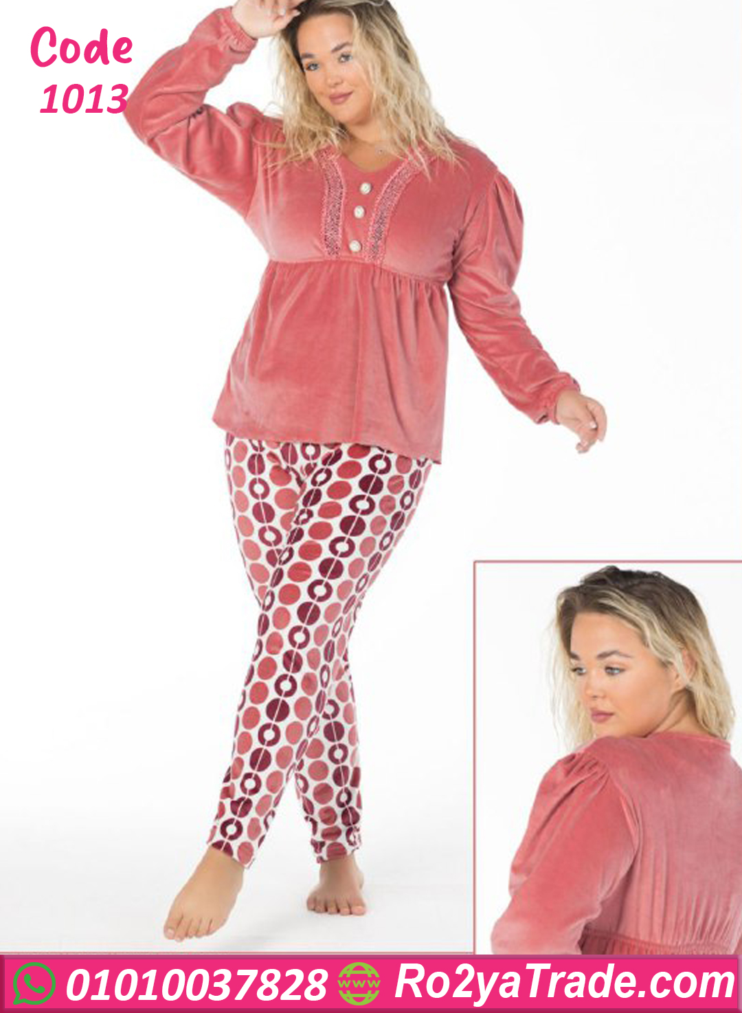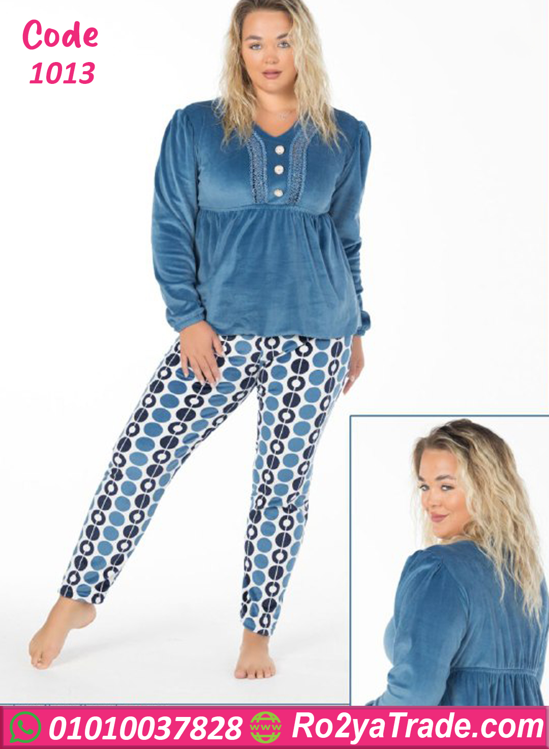 بيجامة شتوي حريمي بيج سايز قماش فرو ناعم جدا ببلوزة شيك بأزرار وبنطلون مطبوع، بتديك دفء وأناقة في نفس الوقت ✨