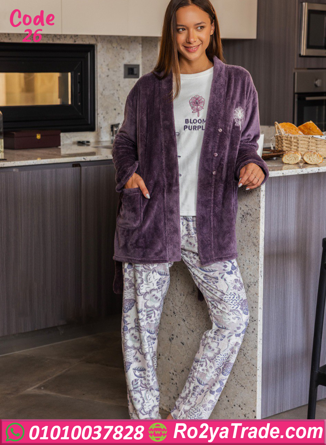 بيجامة شتوي قطيفة بنفسجي – كود 26