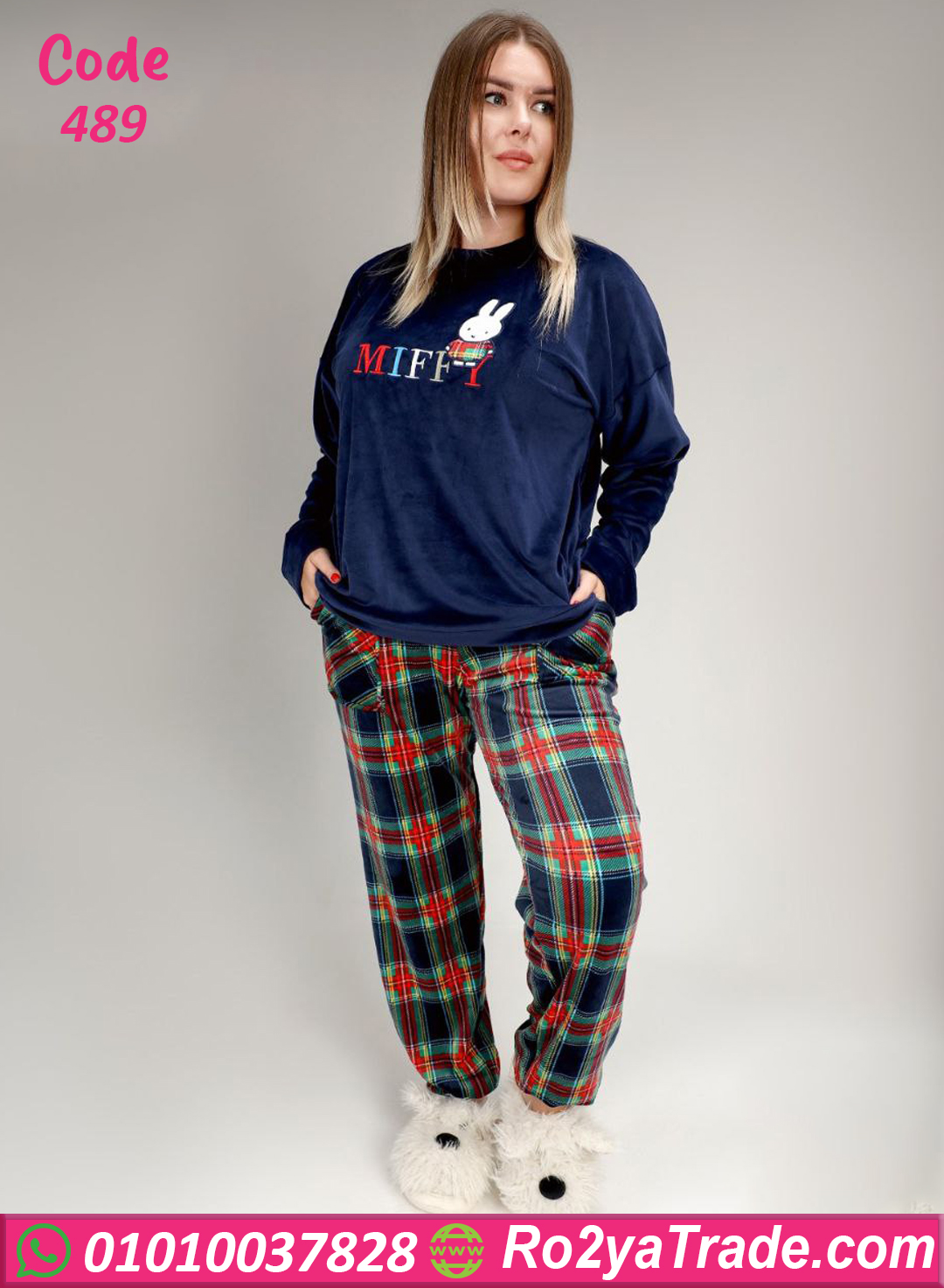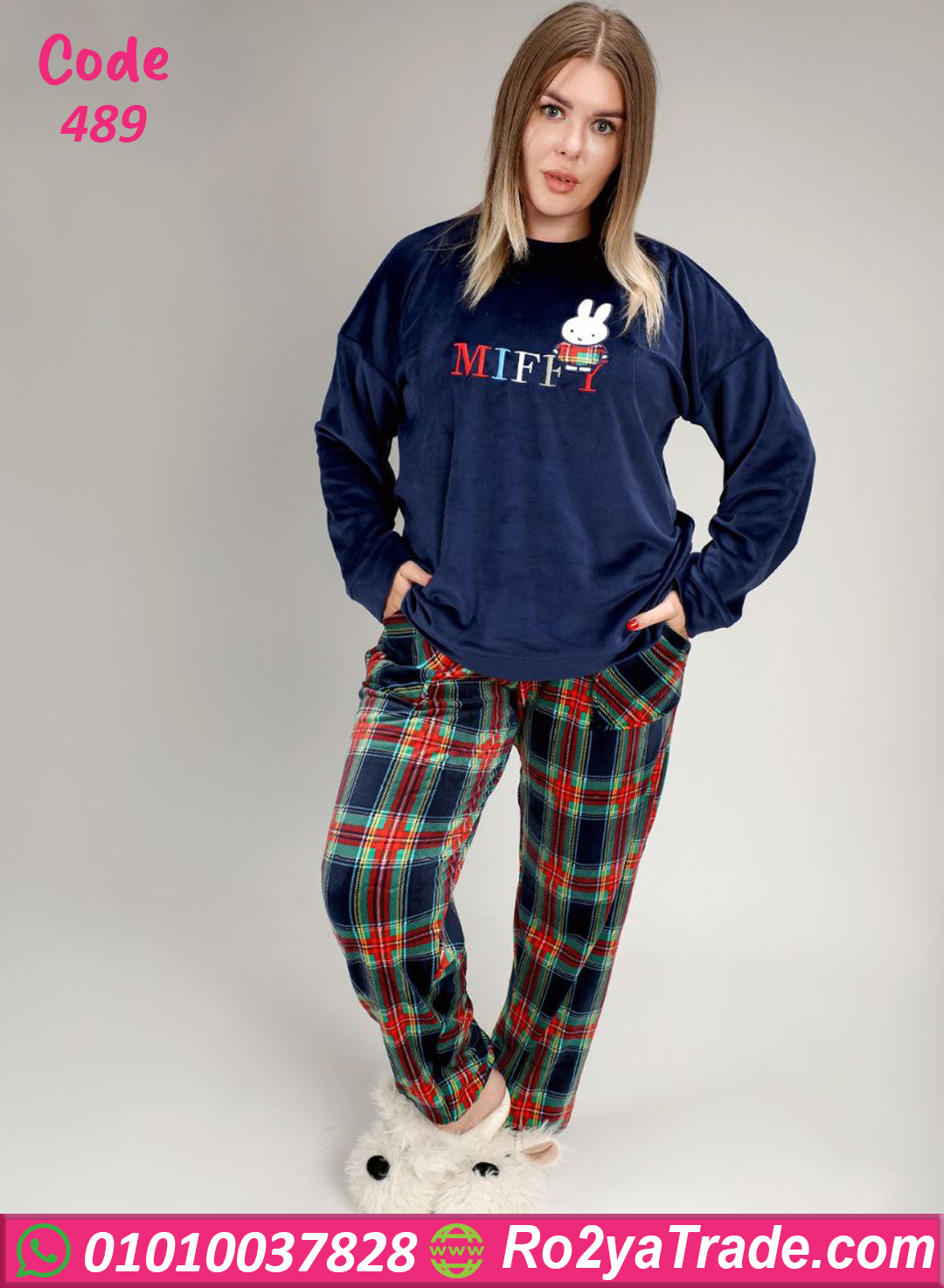 بيجامة شتوي قطيفة كحلي كارو Miffy – كود 489