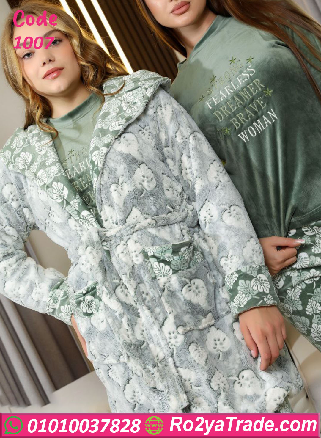 البيجامة جاية بخامة قطيفة ناعمة على الجلد، فيها كابيشو أنيق وجاكت طويل بيضفي لمسة أنوثة وفخامة على الإطلالة 💖