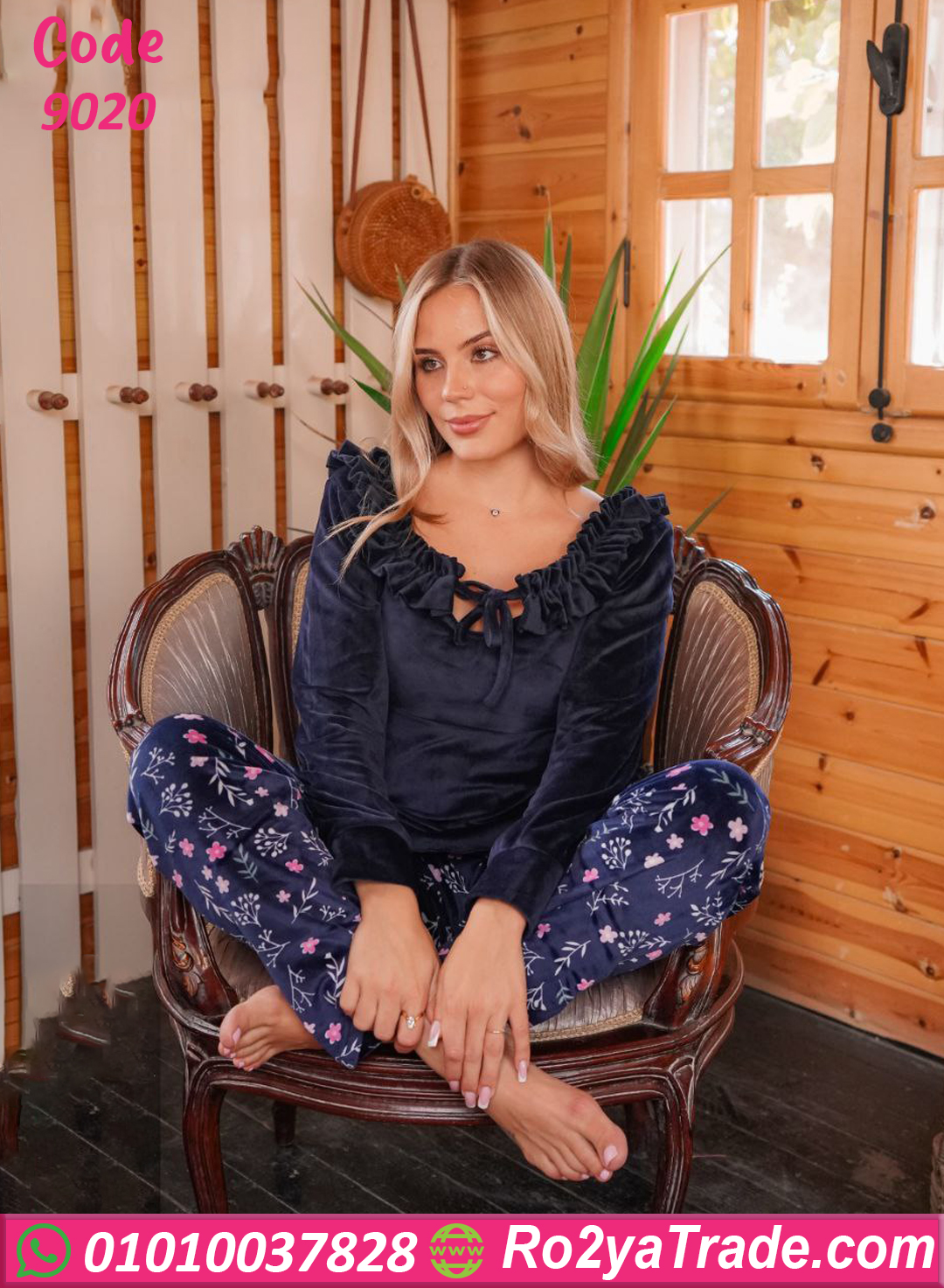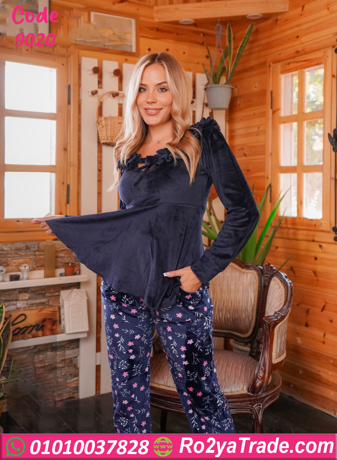بيجامة قطيفة شتوي ناعمة ستايلش ومريحة بلمسة أنوثة