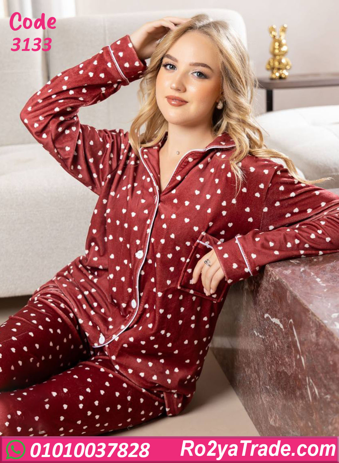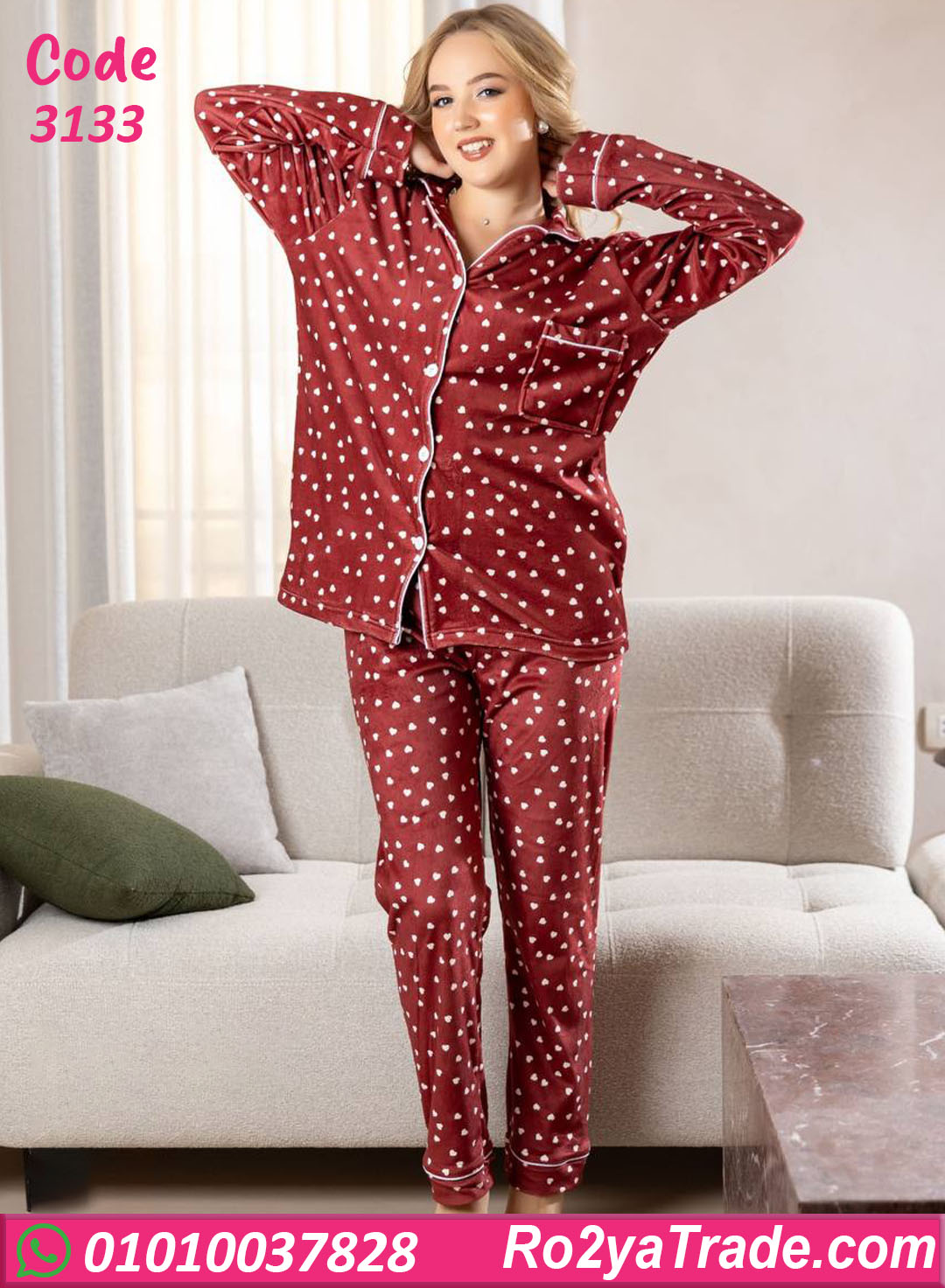 بيجامة شتوي قلوب كود 3133 اختيار مثالي لكل ست بتحب اللوك الهادي والناعم مع الراحة.