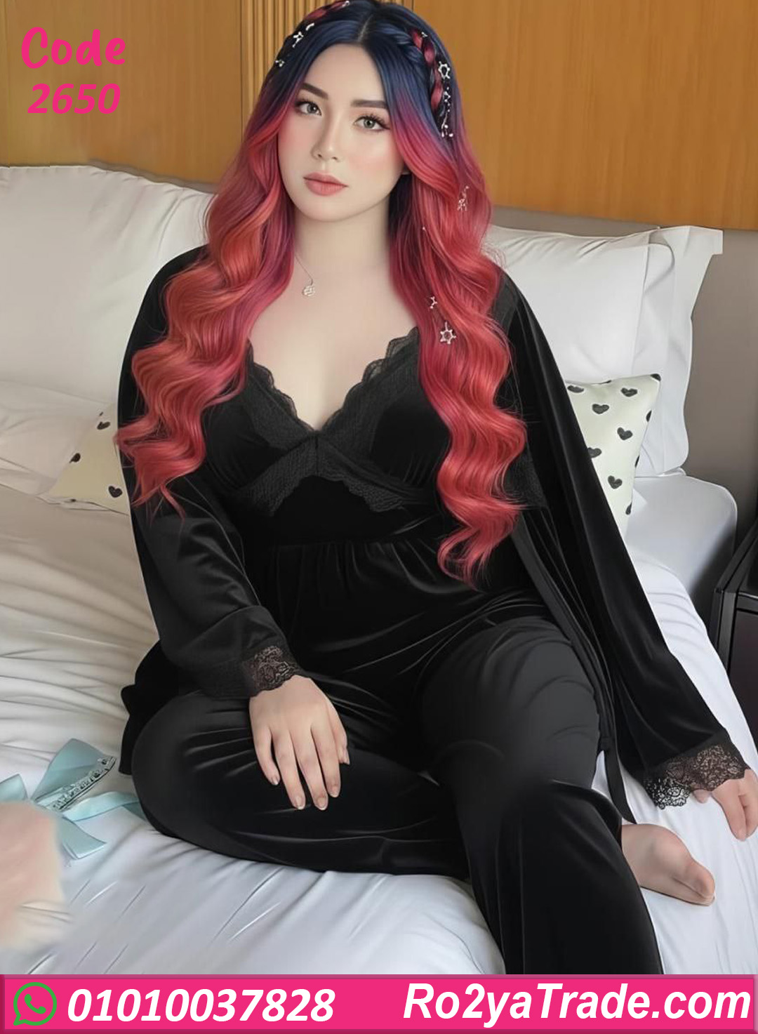 بيجامة شتوي حريمي أنيقة ومريحة جدًا، خامتها ناعمة وبتدي إحساس دفا وراحة ممتاز، تصميم راقي ولمسة أنوثة واضحة تناسب اللي بتحب الشياكة حتى في اللبس البيتي،