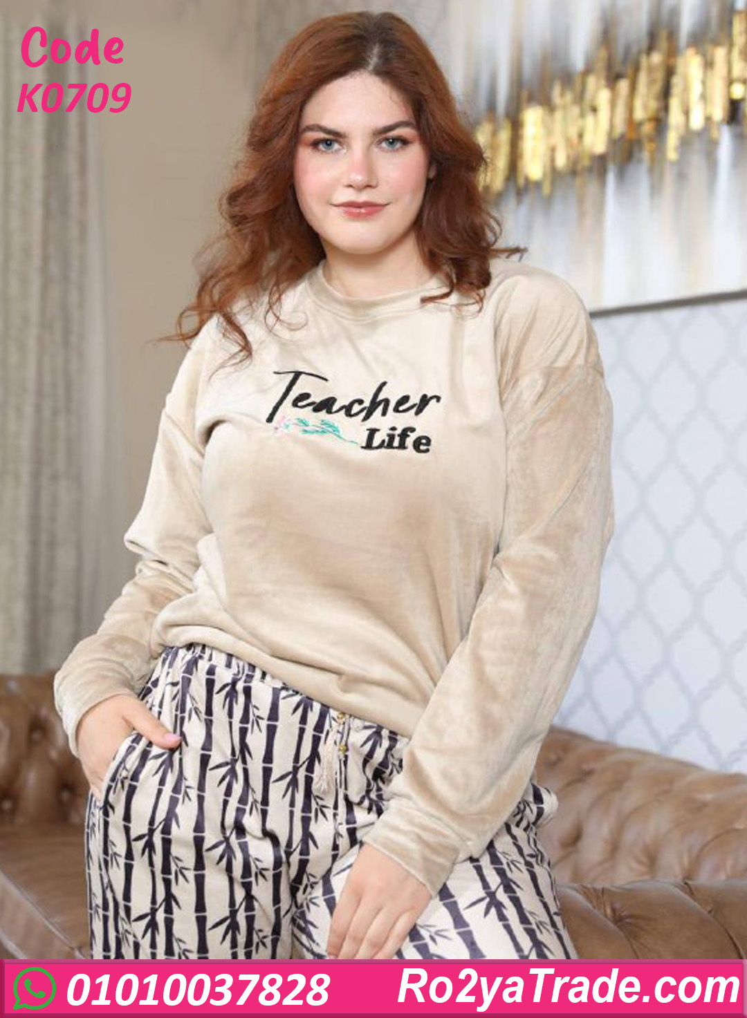 بيجامة شتوي حريمي بيج سايز كود K0709 اختيار مثالي لكل ست بتحب الراحة مع شكل بسيط ومرتب في أيام البرد. التصميم مكوّن من بلوزة كم طويلة بطباعة ناعمة وبنطلون بنقشة هادية بتدي إحساس أنيق، مع خامة ناعمة على الجسم وبتحافظ على الدفا من غير تقيل. البيجامة مناسبة للاستخدام اليومي في البيت أو وقت الراحة، وبتدي حرية حركة وإحساس مريح طول اليوم.