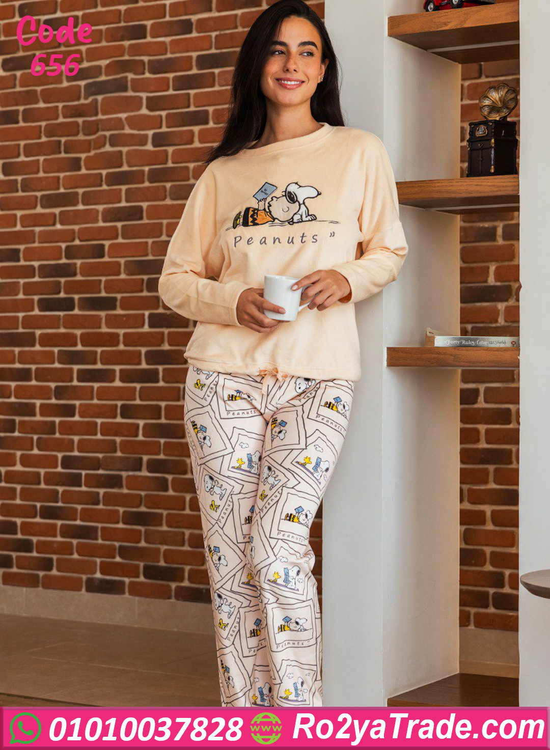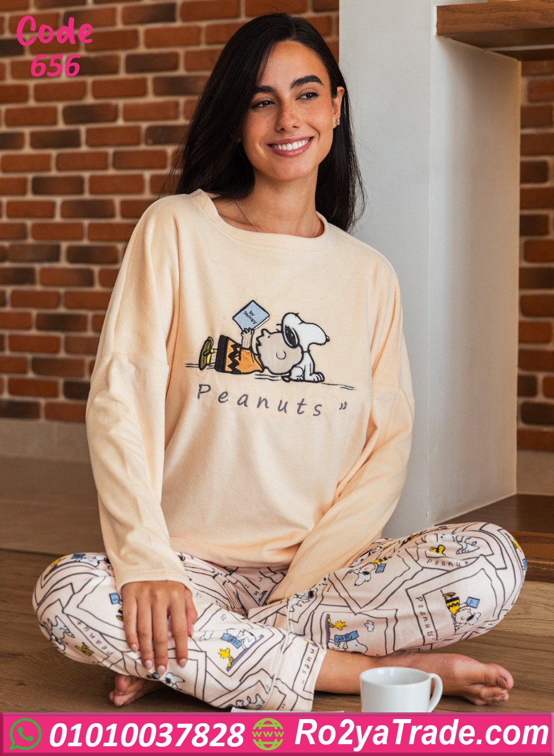 مصنوعة من خامة قطيفة سوفت مريحة على الجسم وبتحافظ على الدفا طول اليوم، الجزء العلوي عليه رسمة Snoopy الكيوت، والبنطلون بنفس النقشة بتصميم واسع بيخلي اللبس مريح جدًا.