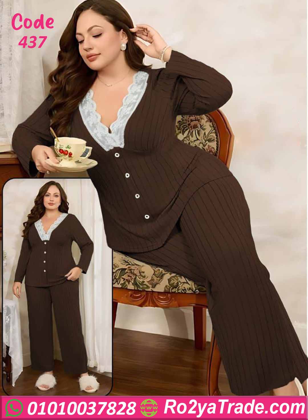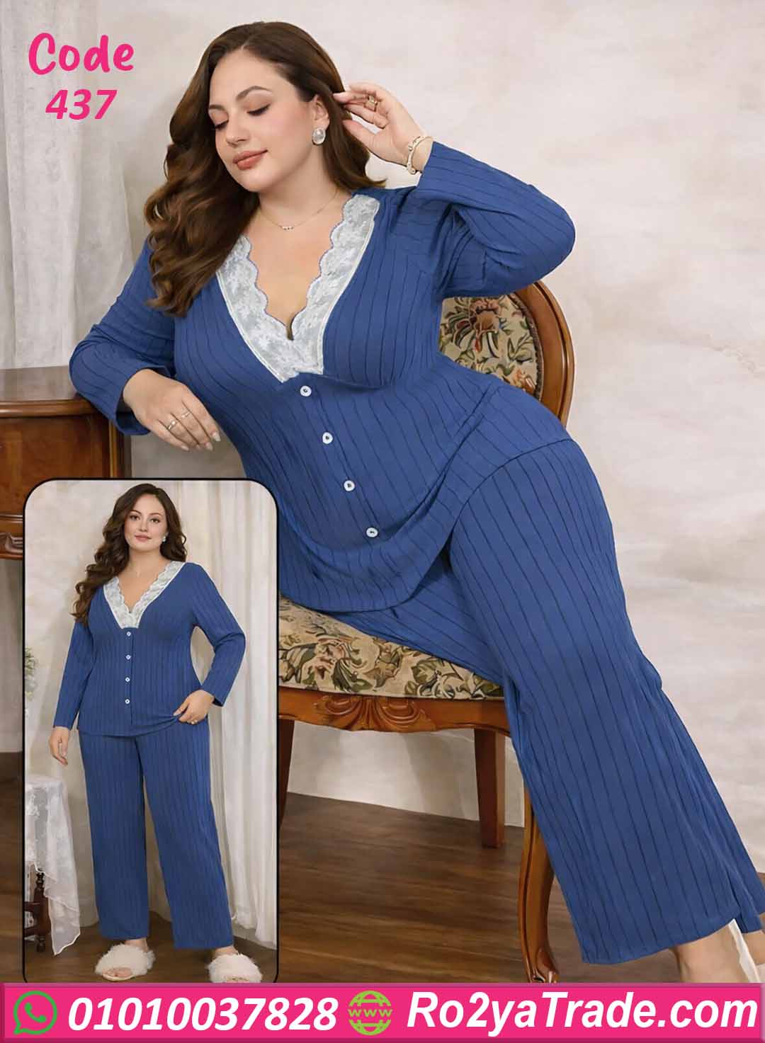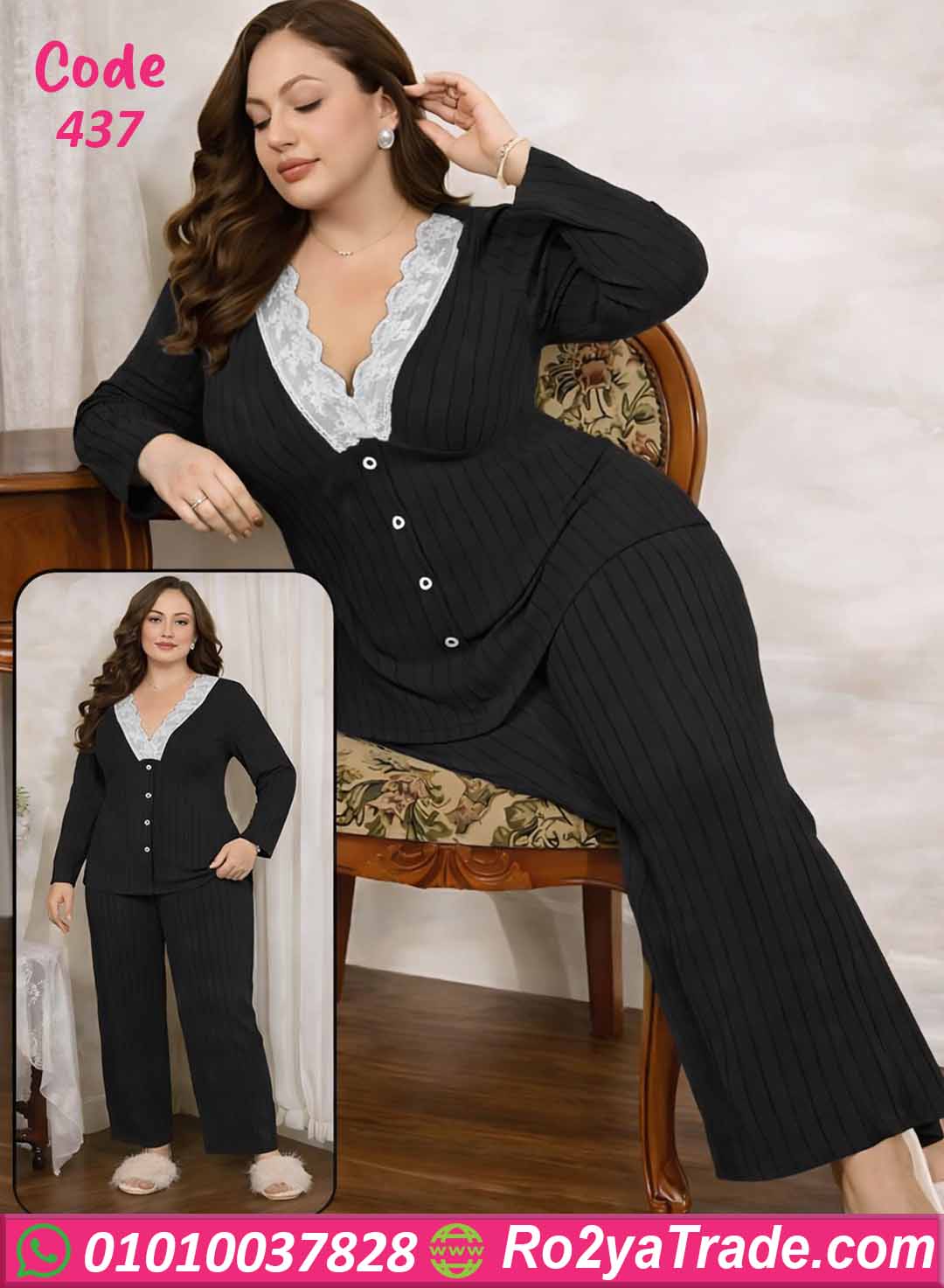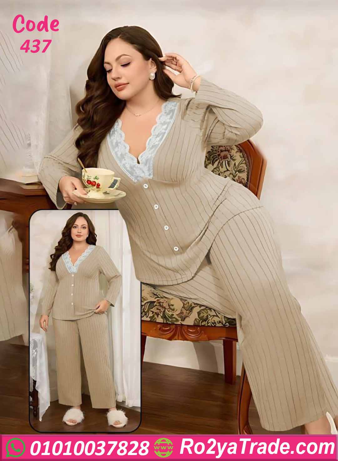 بيجامة كود 437 من ماركة Big Ladies مصممة بخامة مضلعة مرنة تمنحك راحة طوال اليوم مع تصميم جذاب يناسب المقاسات الكبيرة.