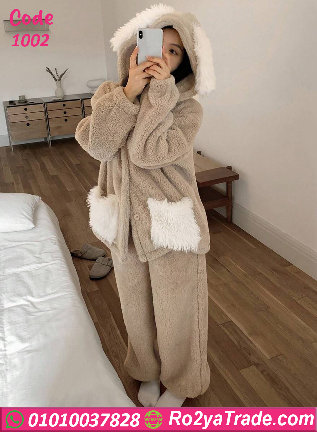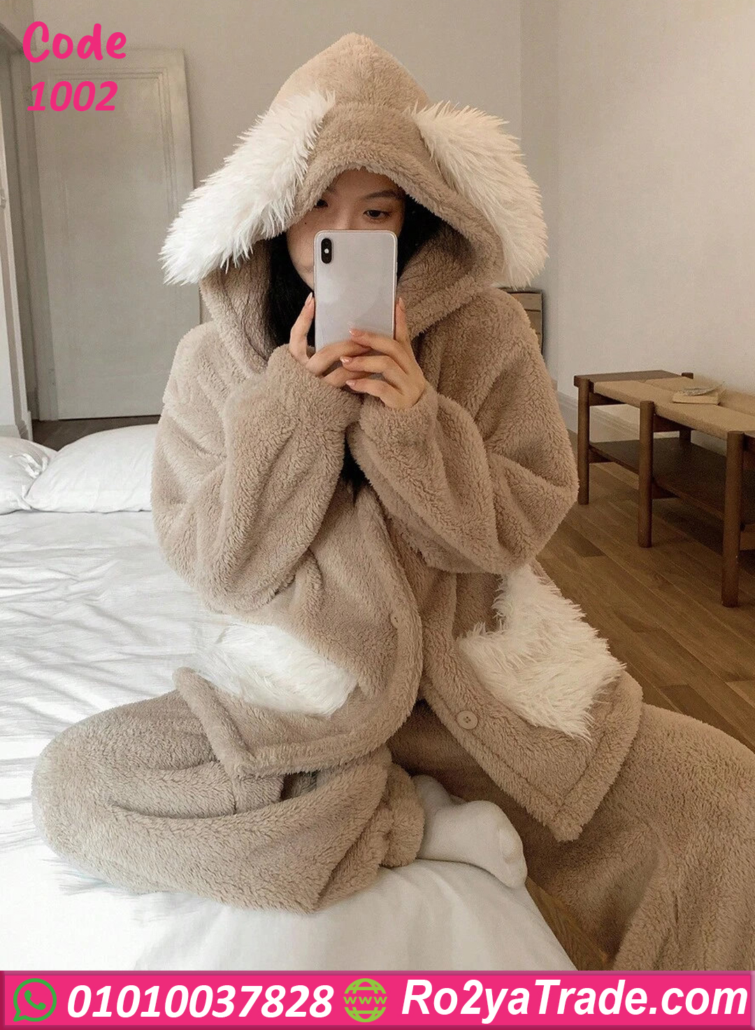 دلّعي نفسك براحة ودفا مش طبيعي مع بيجامة شتوي فرو الأرنب كود 1002 🐰💕