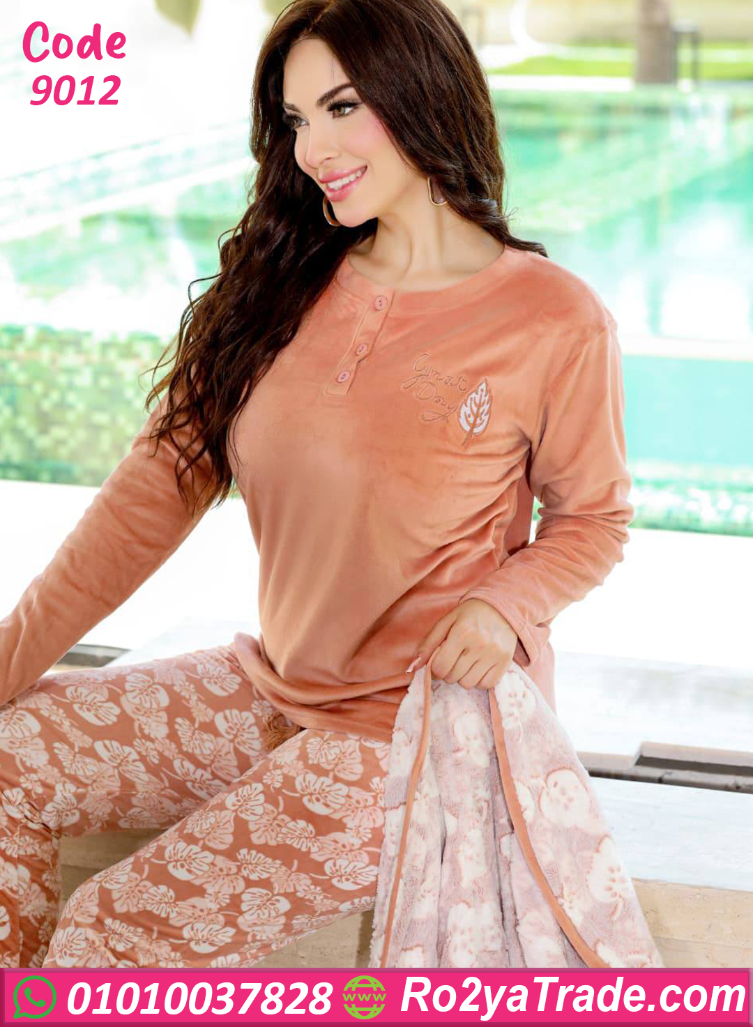 ومعاها روب بنفس النقشة عشان الإطلالة تكون متكاملة. الخامة قطيفة عالية الجودة مريحة وبتحافظ على الدفا طول اليوم، مناسبة للبيت أو سهرات الشتاء، بتقدملك راحة وأناقة في نفس الوقت من MASS،