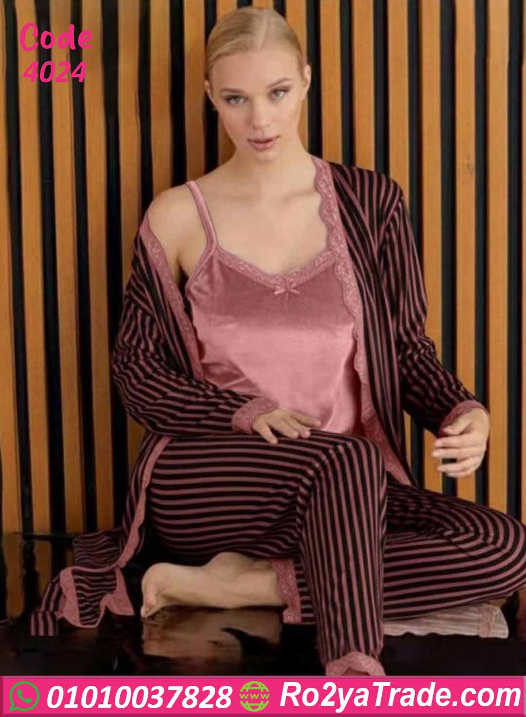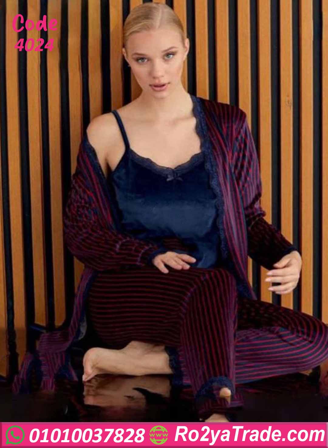 بيجامة شتوي 3 قطع مخططة – كود 4024