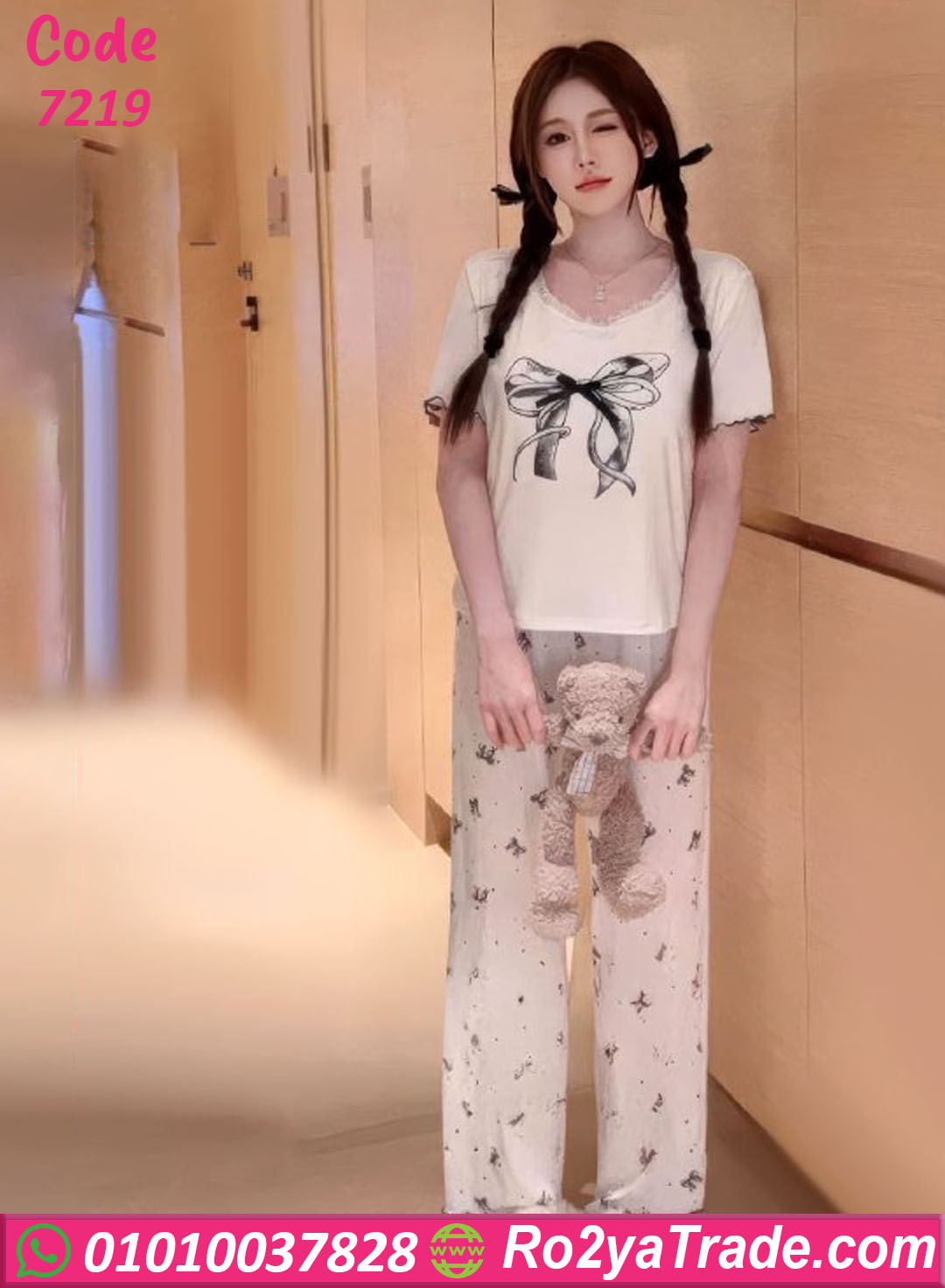 لو بتحبي الستايل الناعم والبناتي 🎀🤍، موديل بيجامة صيفي – كود 7219 هيكون اختيارك المثالي 😍