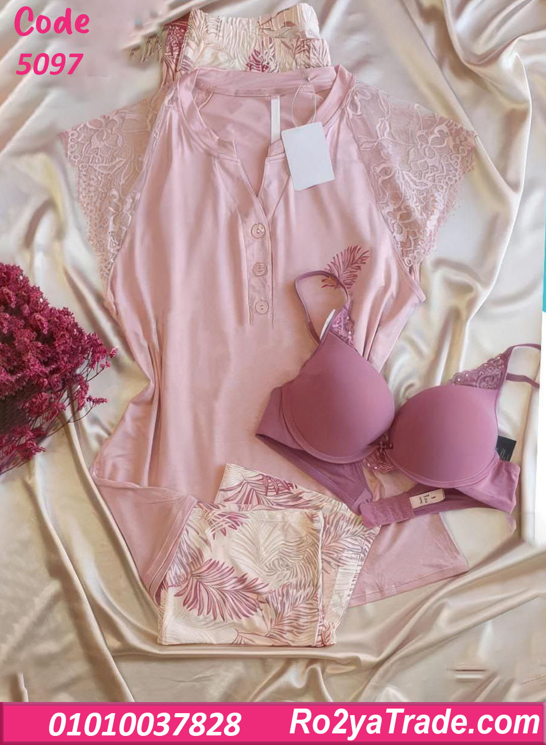 لو بتحبي الستايل الراقي والبسيط 🌿، موديل بيجامة صيفي – كود 5097 هيكون اختيار مثالي ليكي 👌