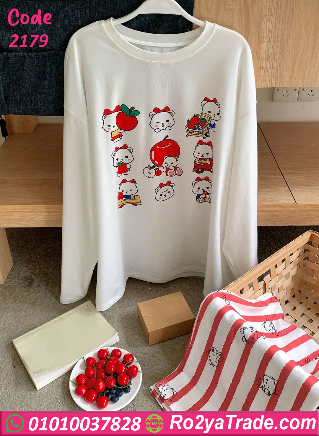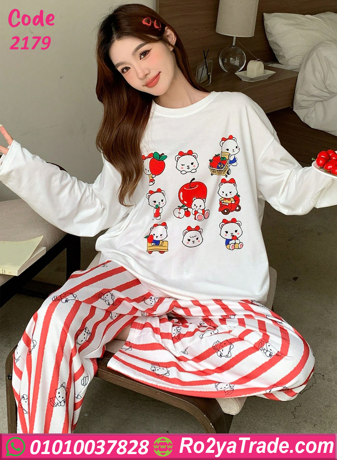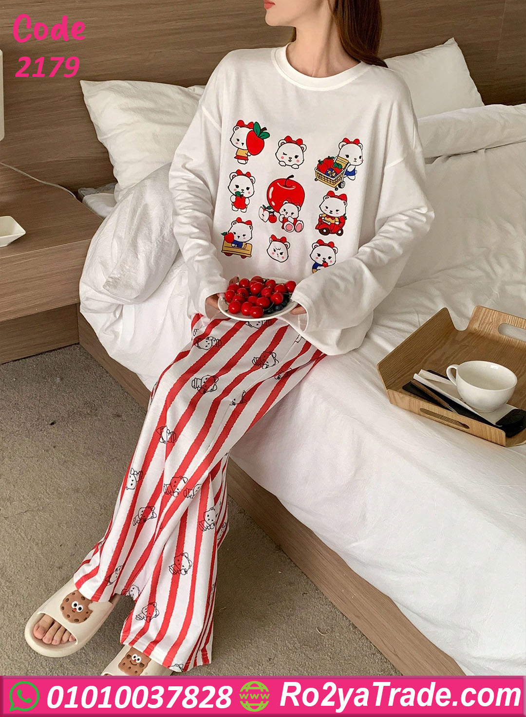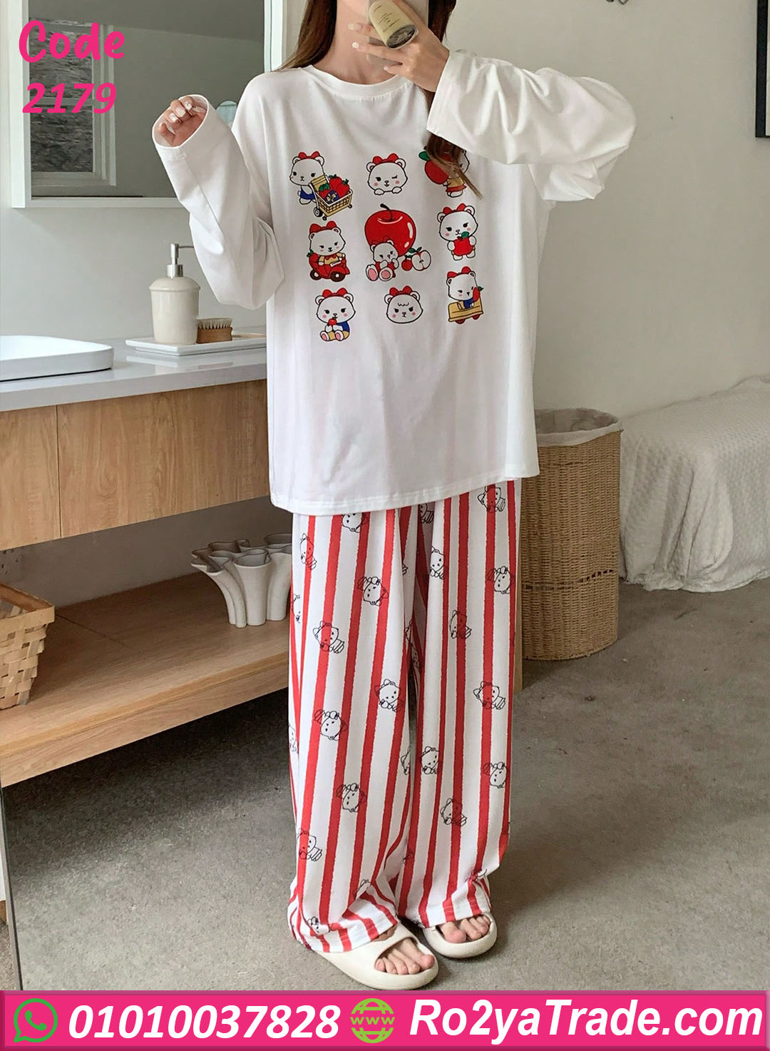 الخامة قطن مريحة جدًا على الجسم، التيشيرت الأبيض عليه رسومات دباديب كيوت تضيف شكل بناتي لذيذ، والبنطلون الطويل المخطط بالأحمر والأبيض بخامة ناعمة ووسع مريح بيكمل الإطلالة الكاجوال المميزة 😍