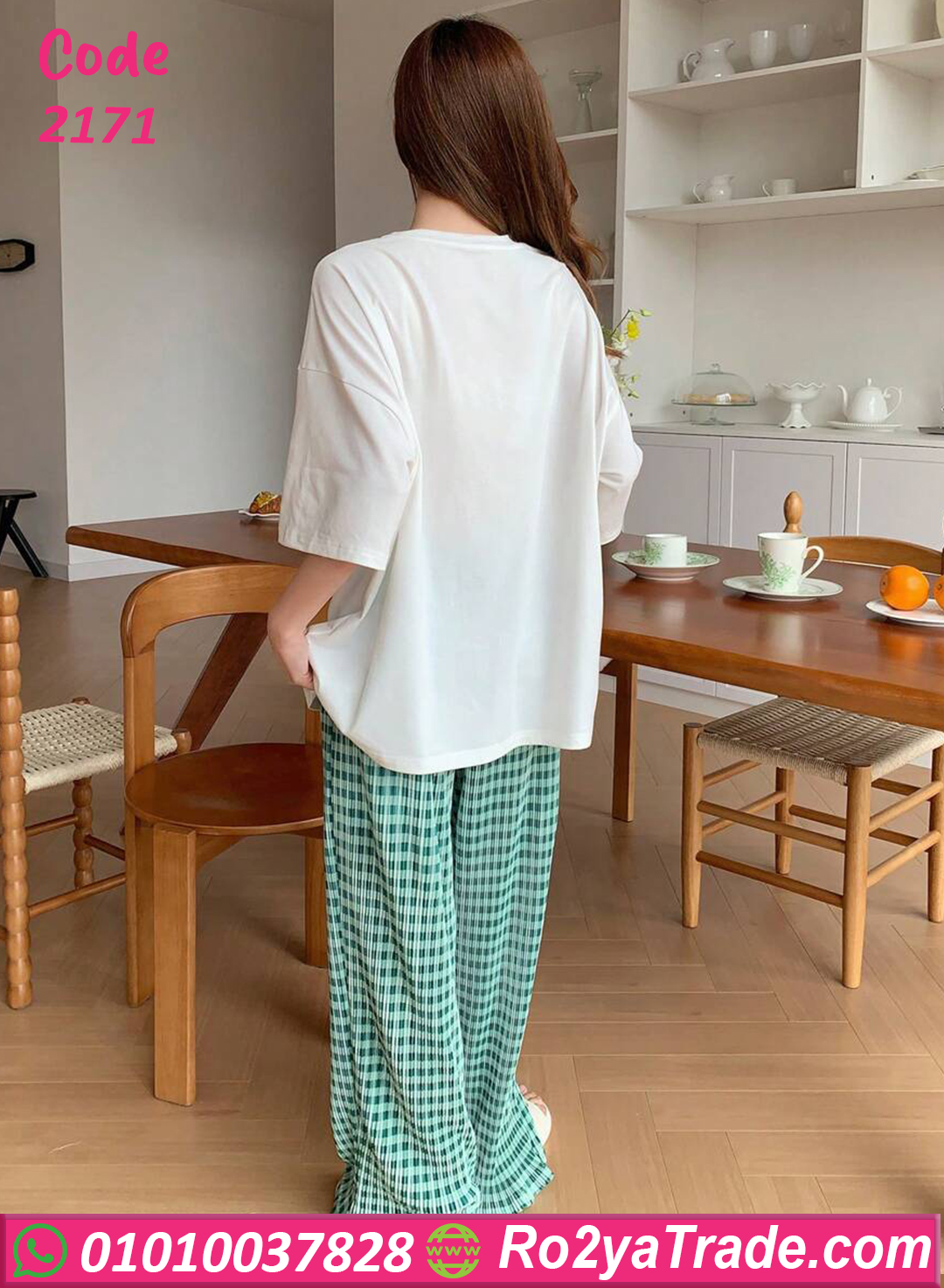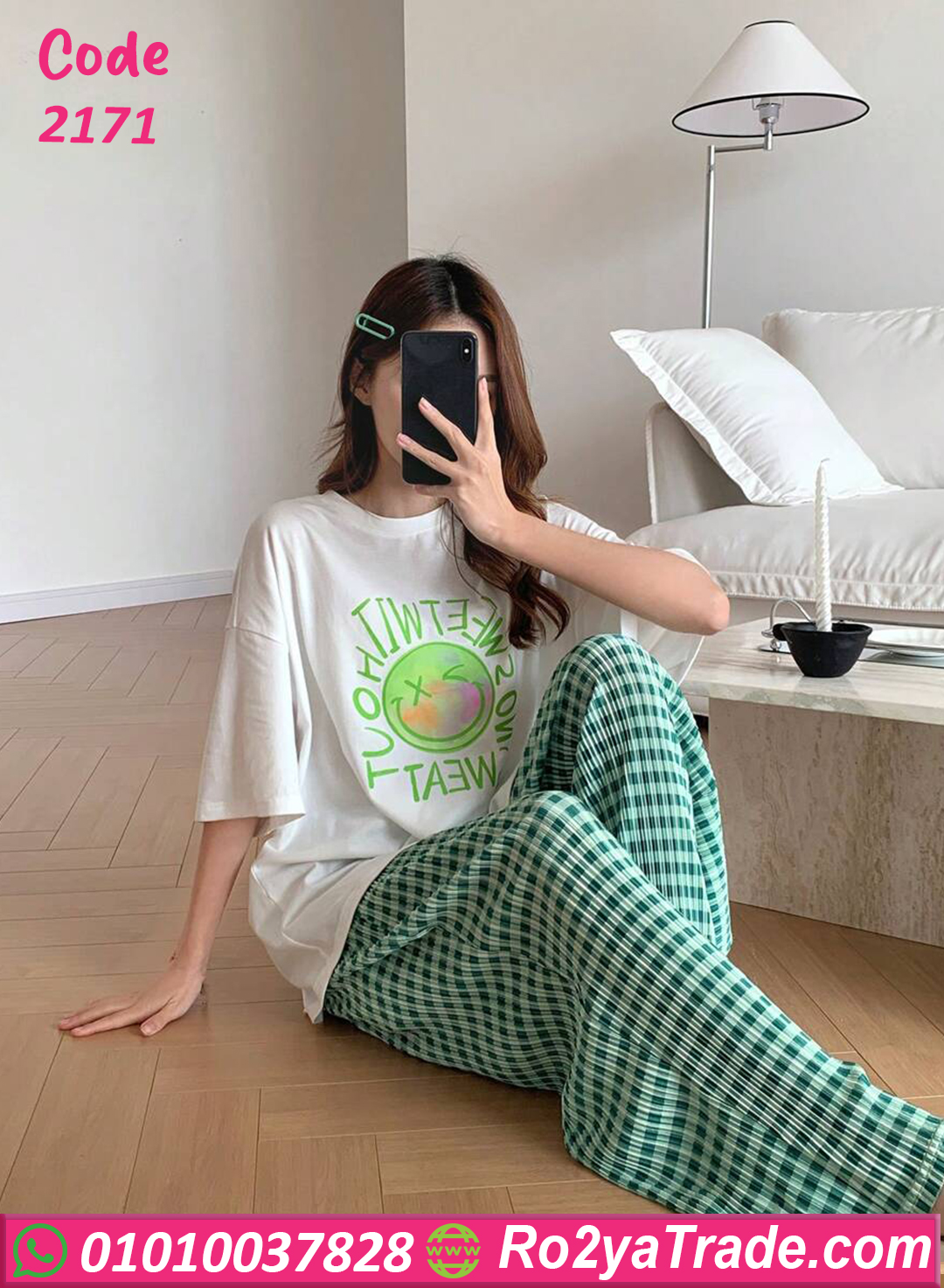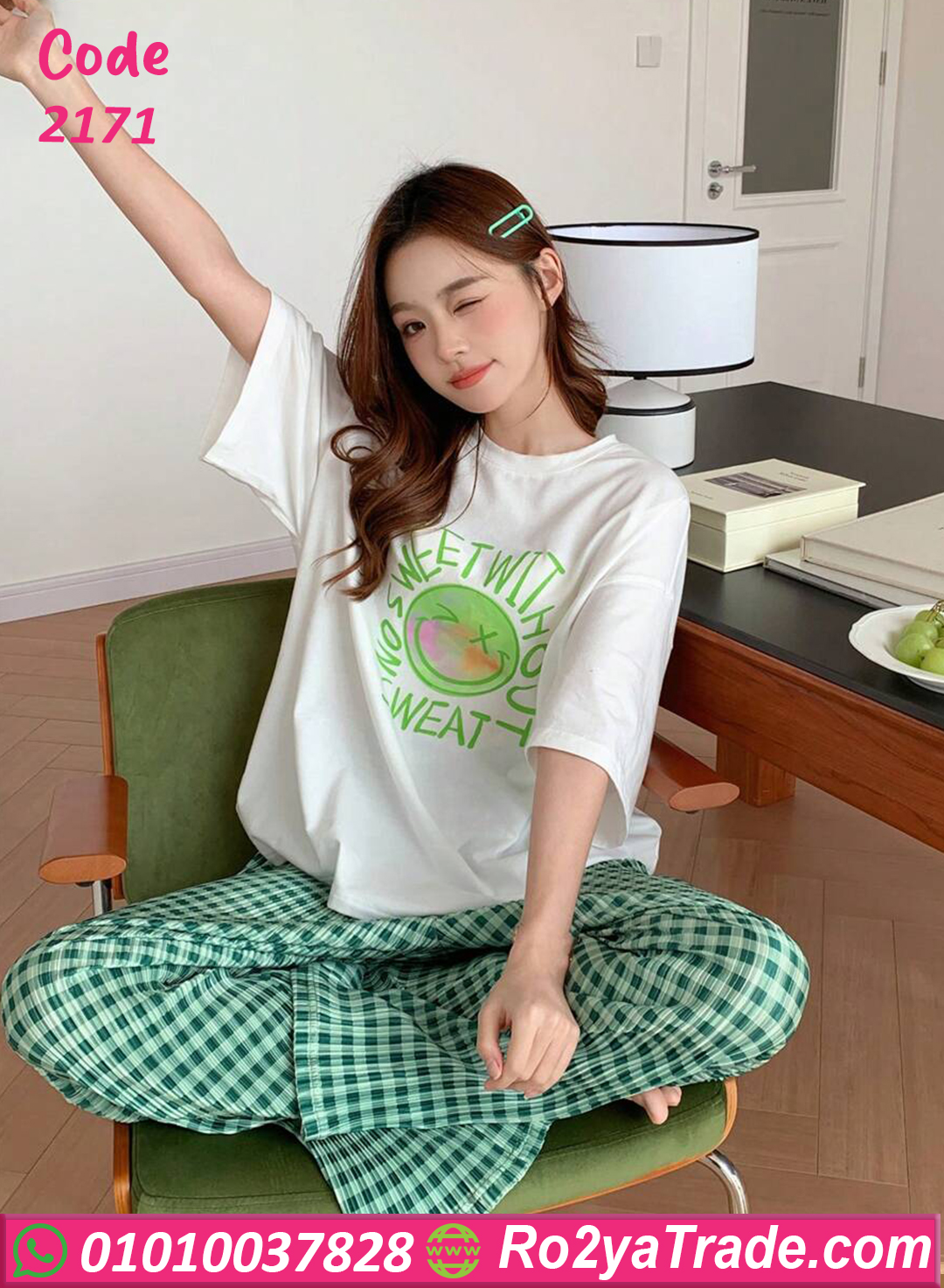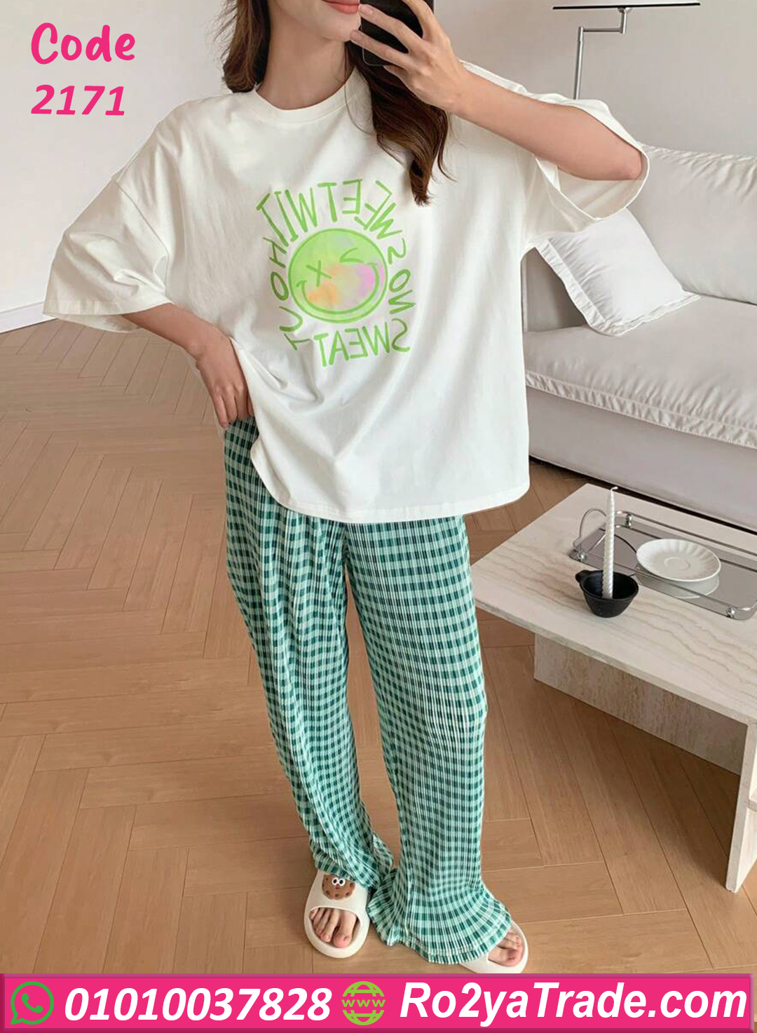بيجامة كاجوال قطن خفيفة ومريحة جدًا، مكونة من تيشيرت أبيض مطبوع عليه تصميم لذيذ باللون الأخضر، مع بنطلون كاروه أخضر أنيق بخامة ناعمة على البشرة. الموديل ده مناسب للبيت أو المصيف، عملي وفي نفس الوقت شيك، بستايل مميز يدي طابع شبابي عصري. الخامة قطن 100% بتمتص العرق وبتخلي جسمك يتنفس بحرية، وبتحافظ على شكلها بعد الغسيل. الألوان ثابتة ومش بتبهت، والموديل واسع علشان يناسب كل المقاسات وان سايز من 60 لحد 80 كجم.