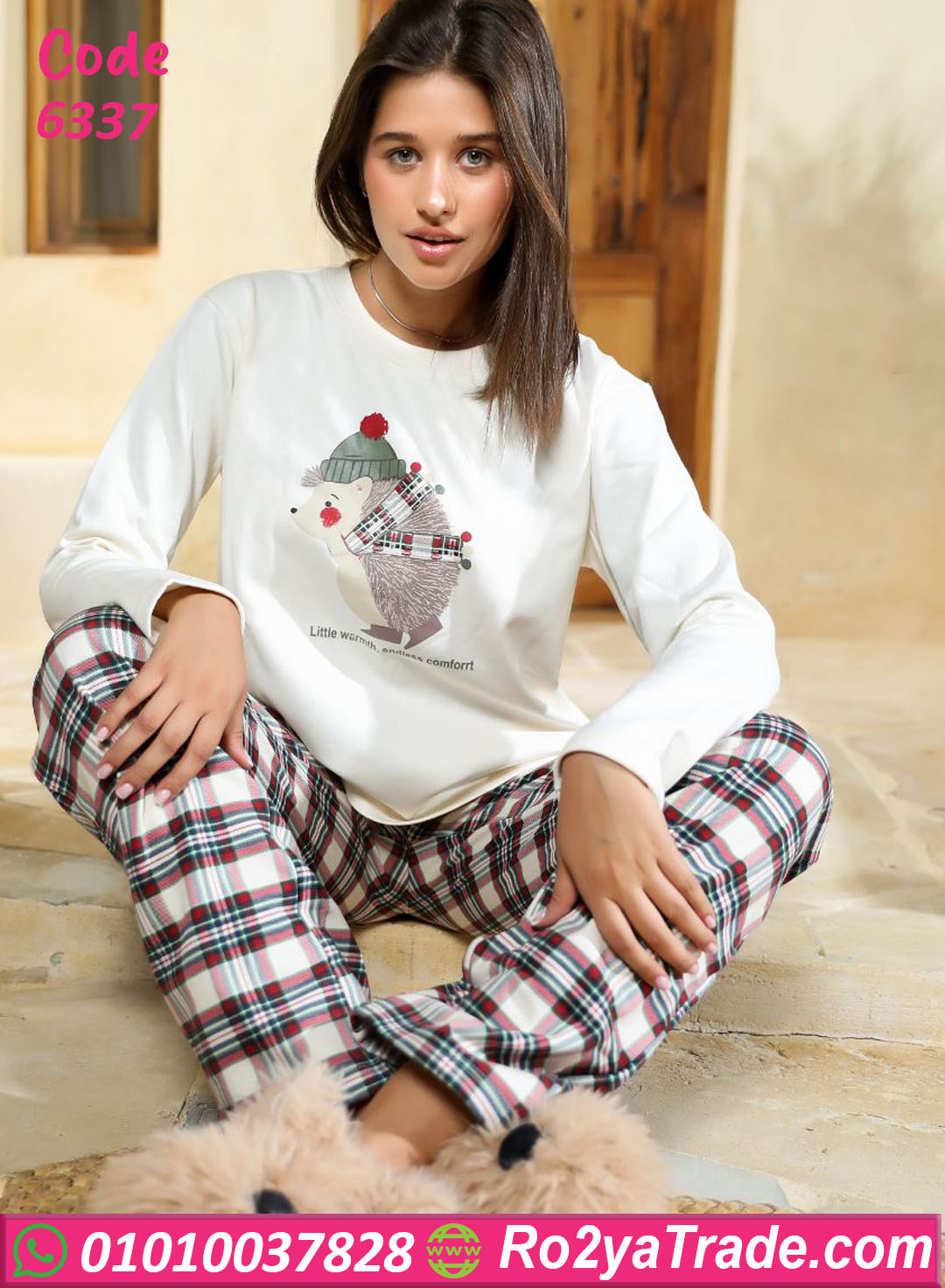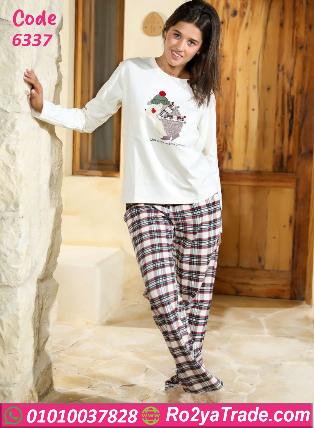 بيجامة شتوي ناعمة جدا بخامة فرو خفيفة مريحة في اللبس، التصميم شيك جدا بقصة كلاسيك على بنطلون كاروهات ناعم،