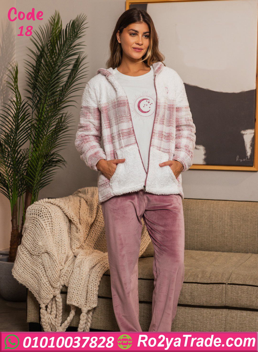 بيجامة فرو شتوي ناعمة 3 قطع – كود 18