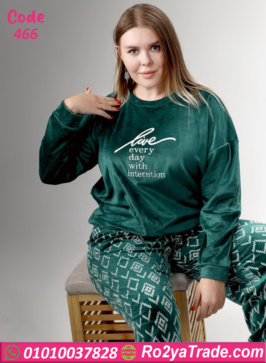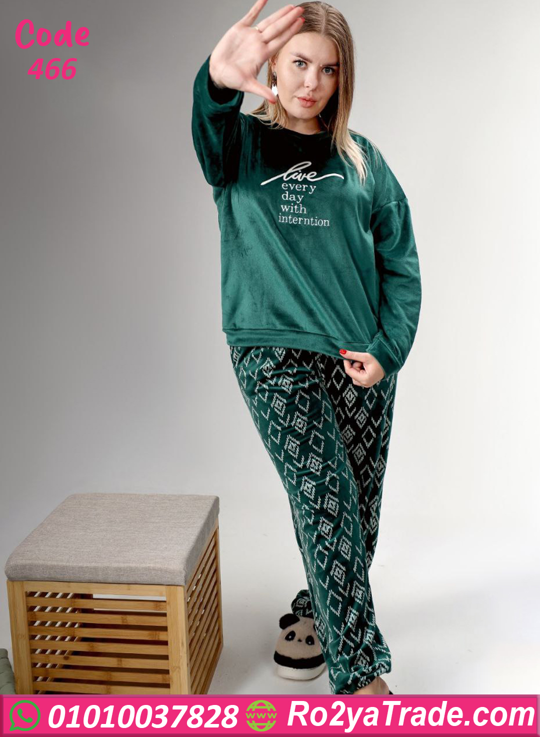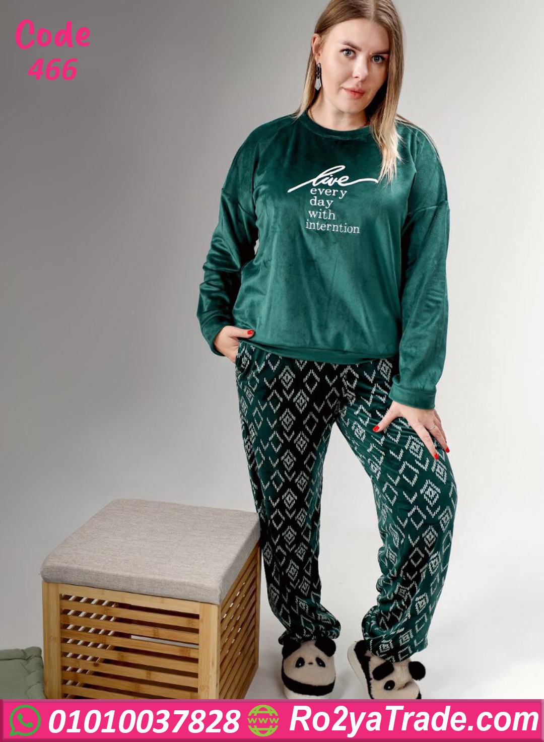 بيجامة قطيفة بيج سايز – 466