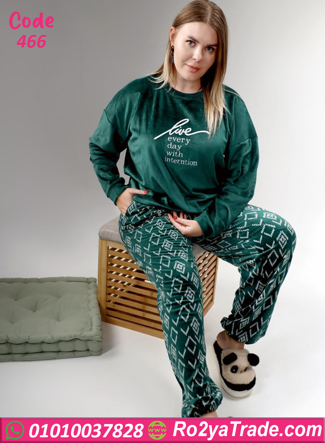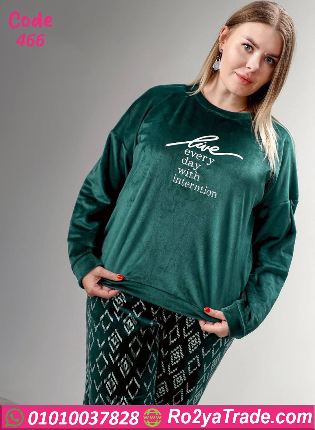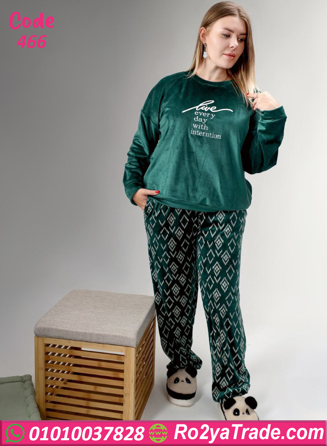 بيجامة قطيفة بيج سايز – 466