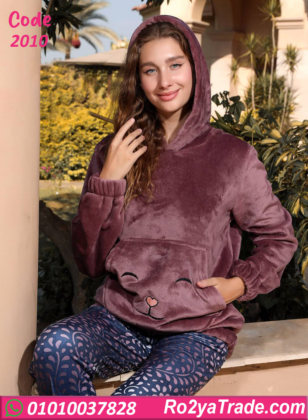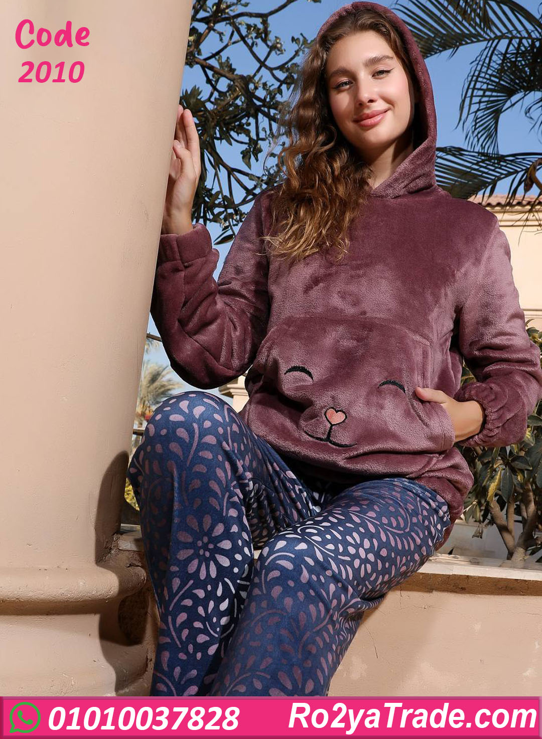 بيجامة قطيفة حريمي شتوي كود 2010 اختيار مثالي لكل ست بتدور على الدفا والراحة مع شكل مختلف وعصري.