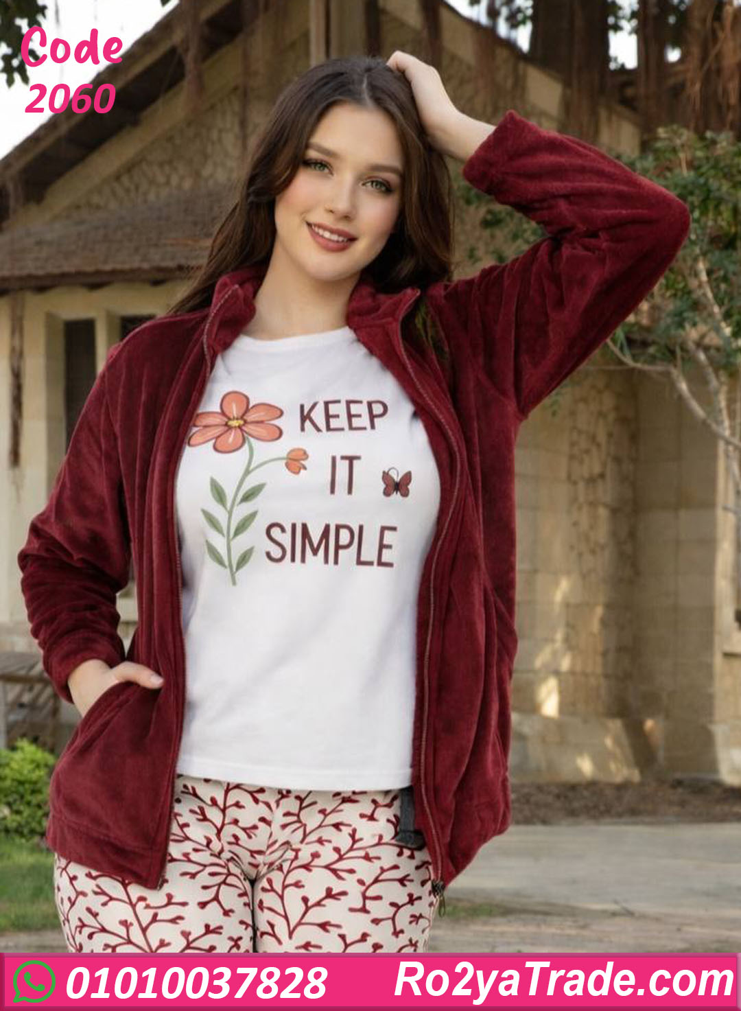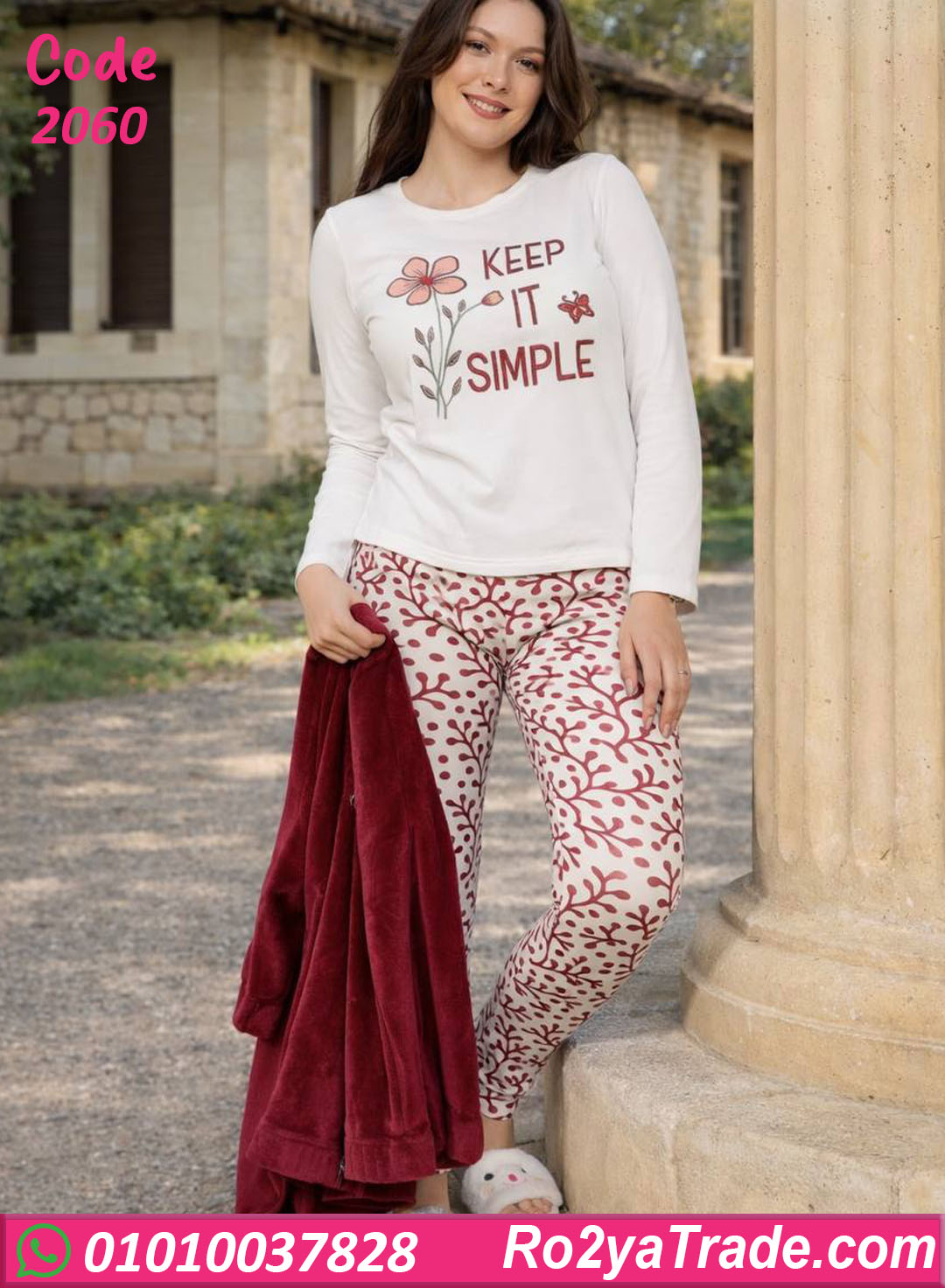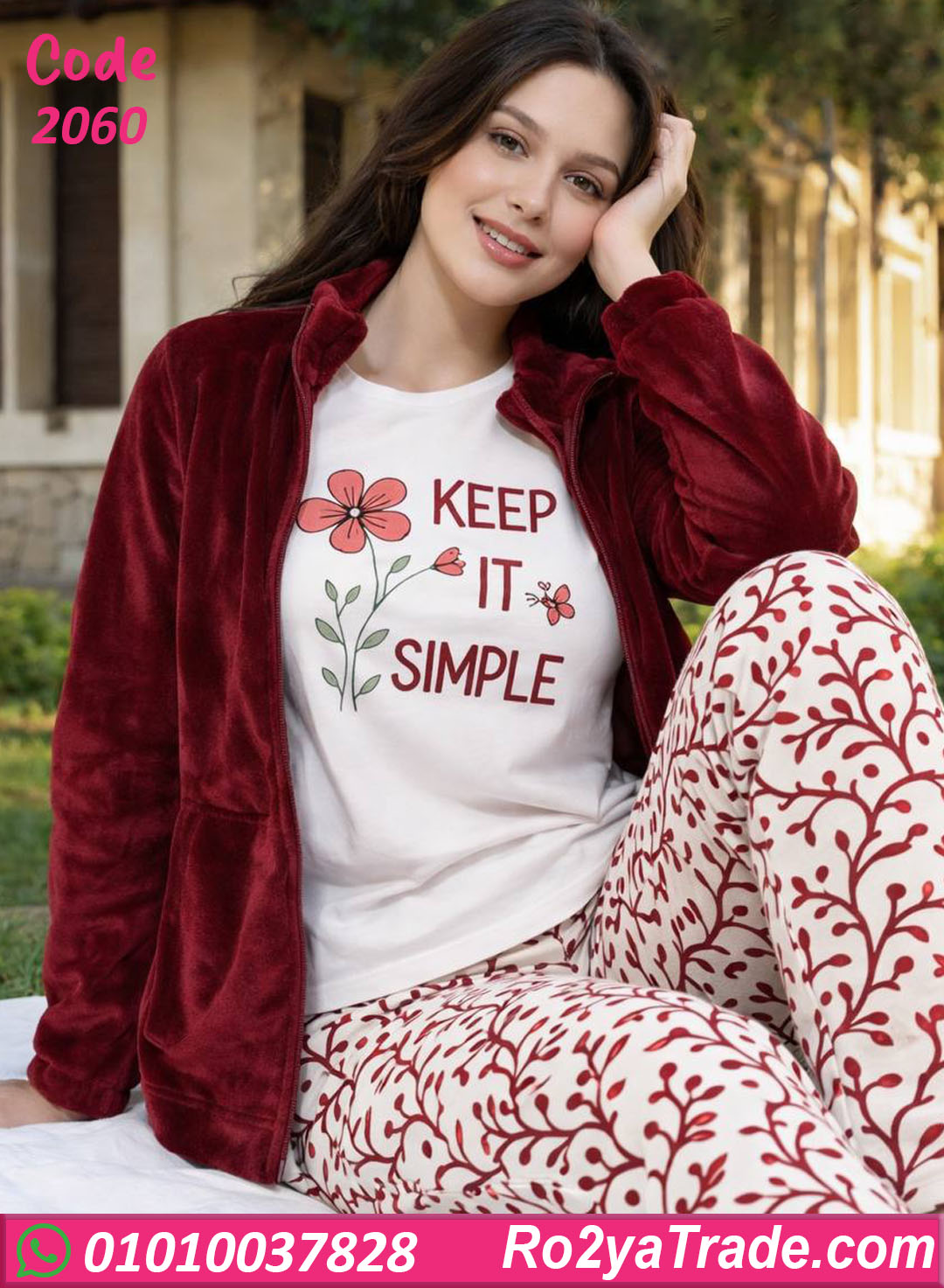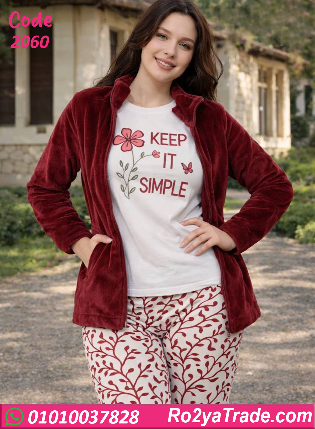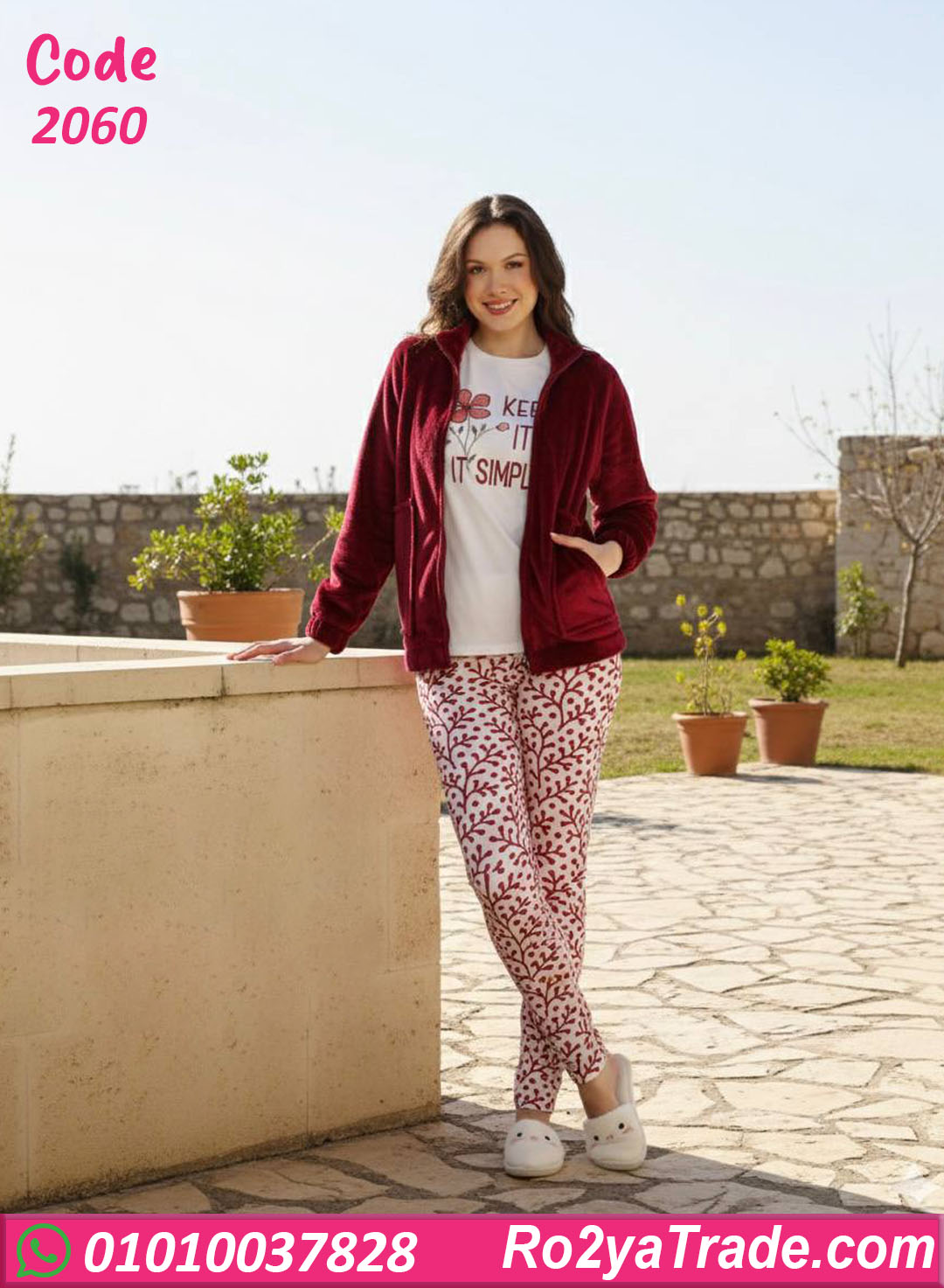 بيجامة قطيفة حريمي شتوي كود 2060 اختيار مثالي لكل ست بتدور على