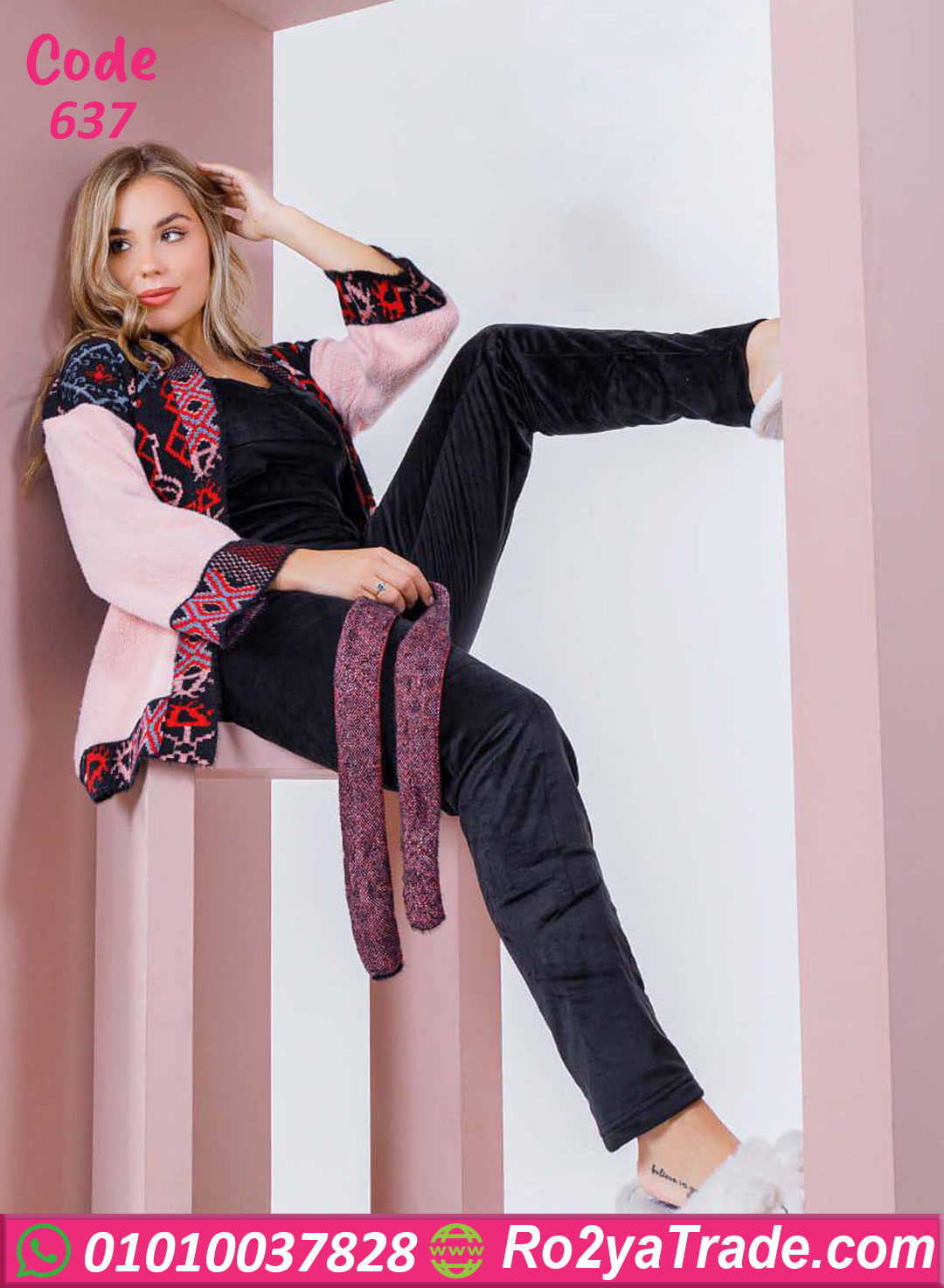 بيجامة قطيفة شتوي بالجاكيت الكاروه – 637