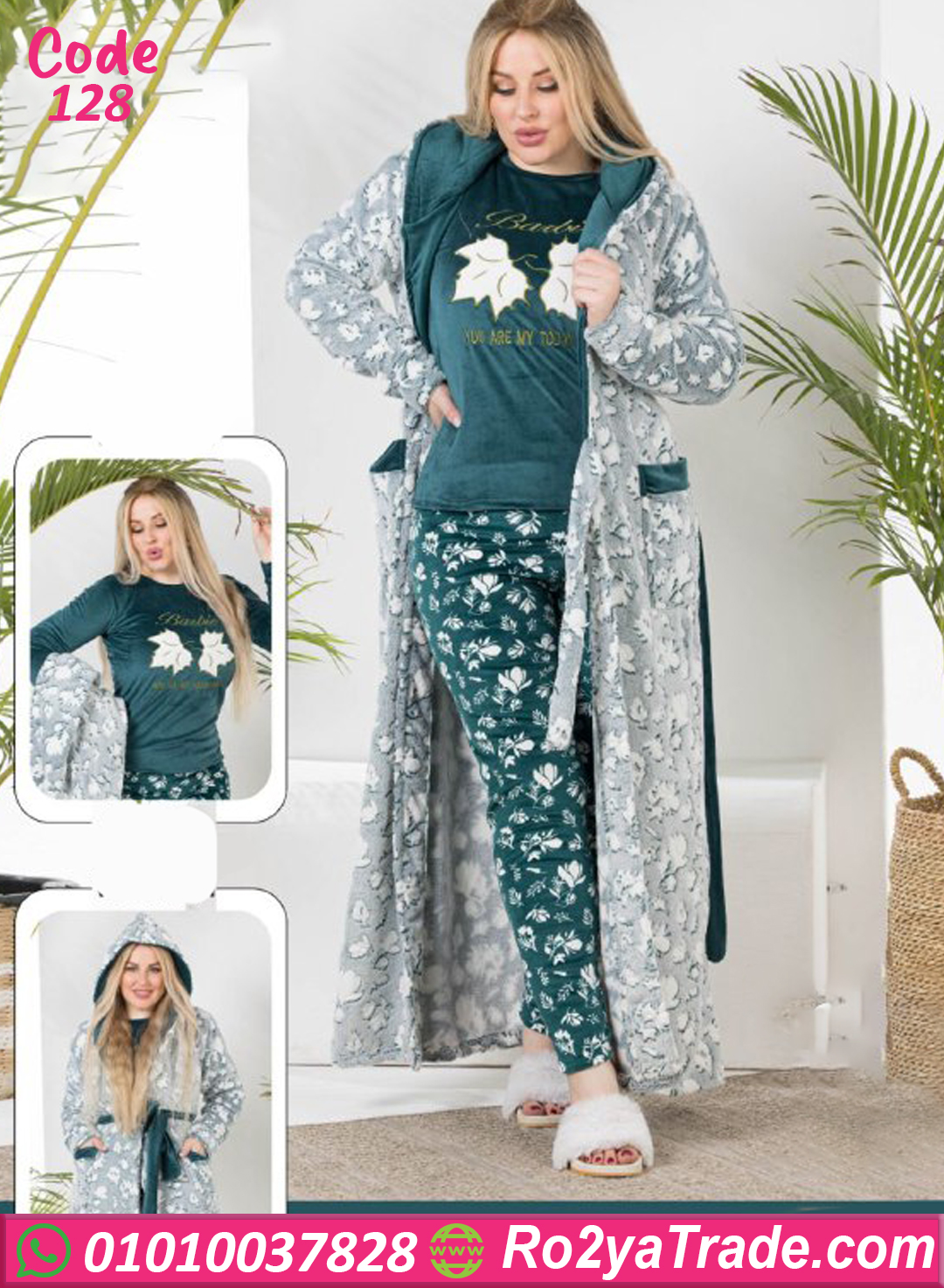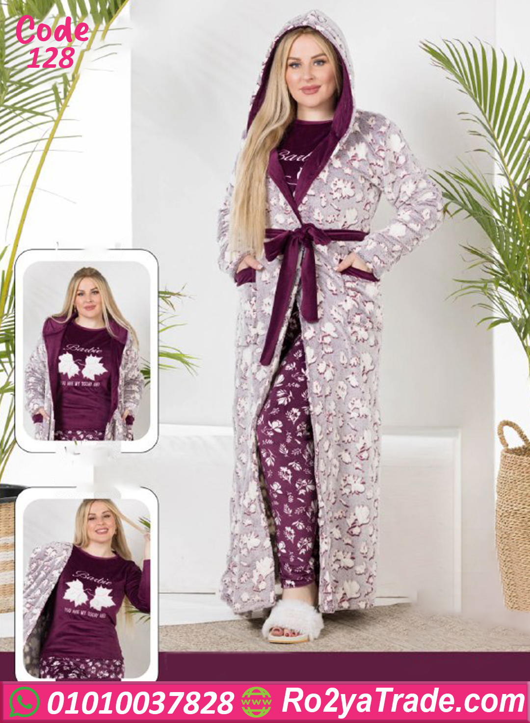 بيجامة قطيفة شتوي بالروب الطويل – كود 128
