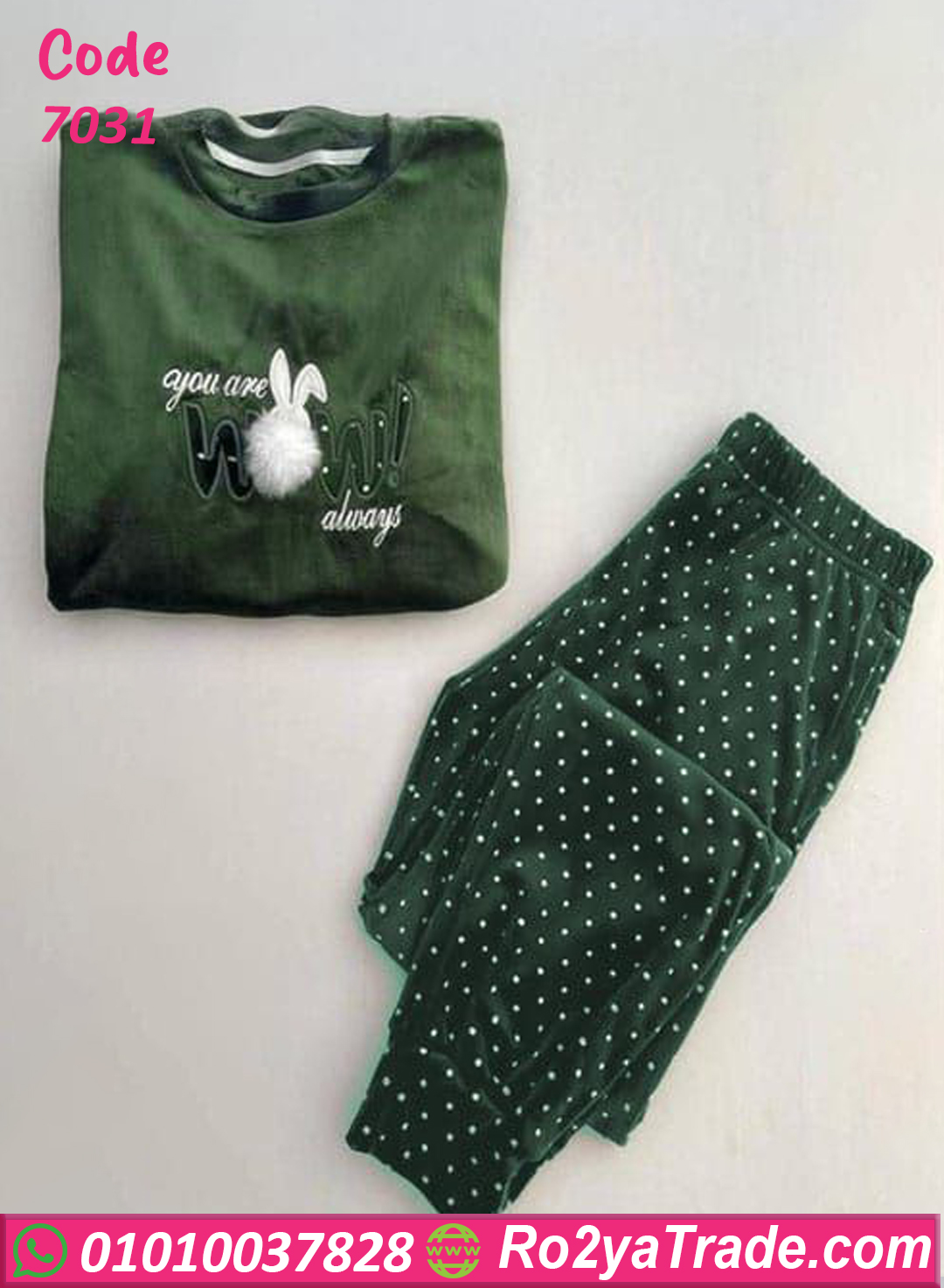 بيجامة قطيفة شتوي دافئة ومميزة بلون أخضر جذاب،