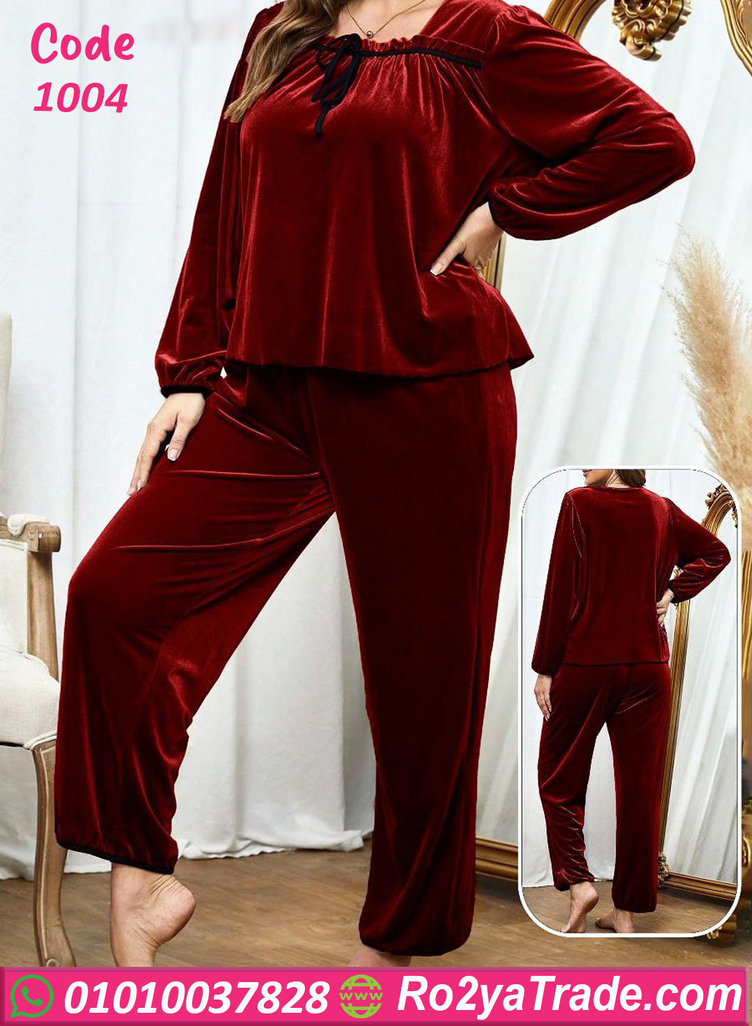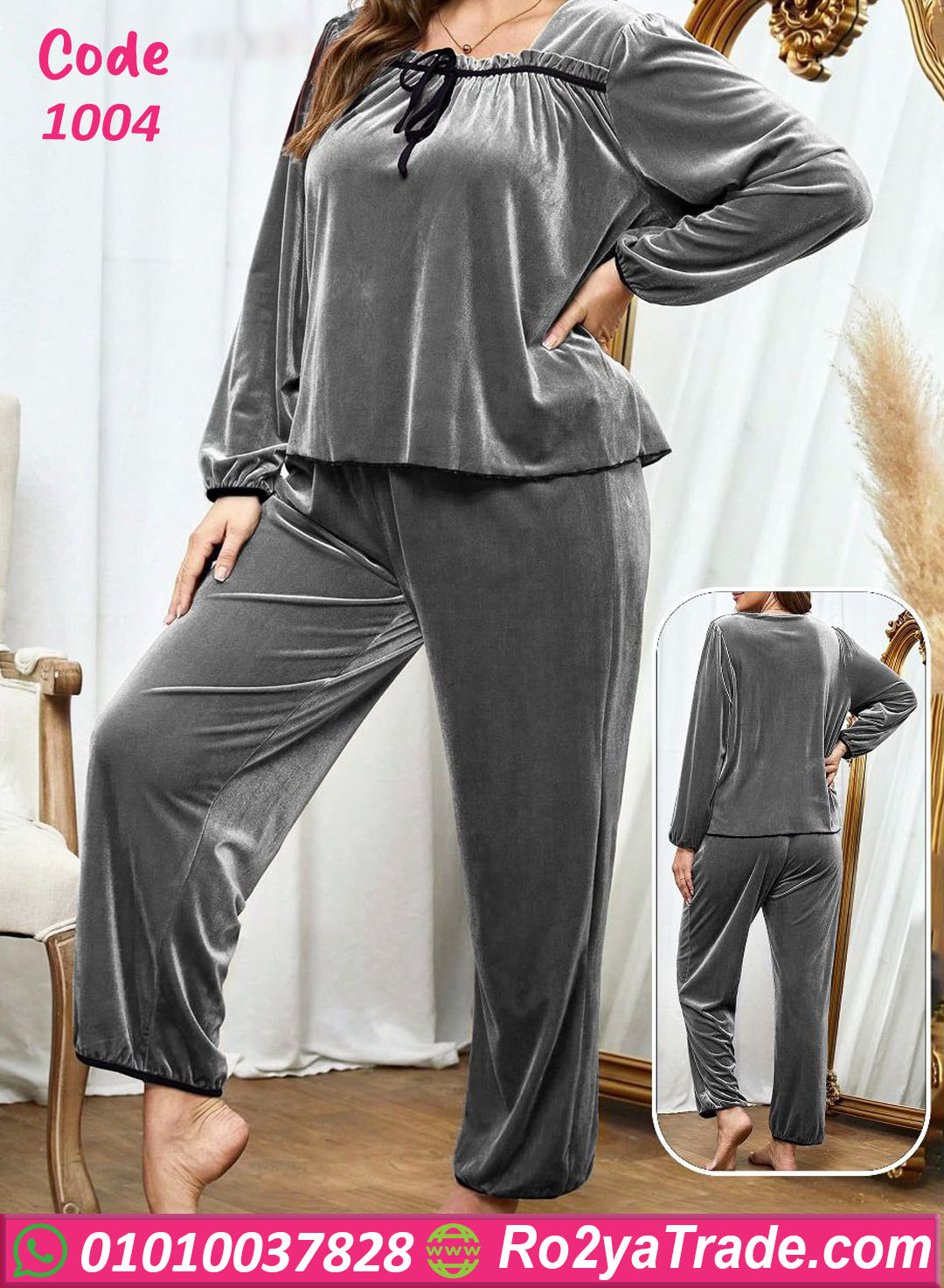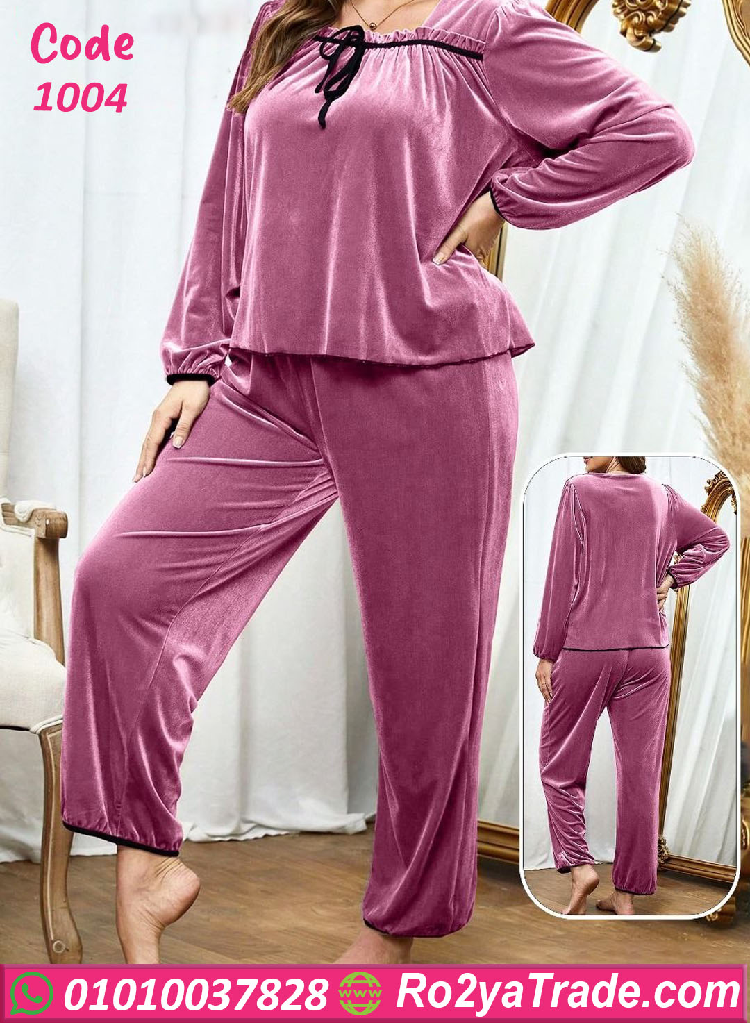 بيجامة شتوي ستان ناعمة بملمس قطيفة راقي بتصميم بسيط ومريح،