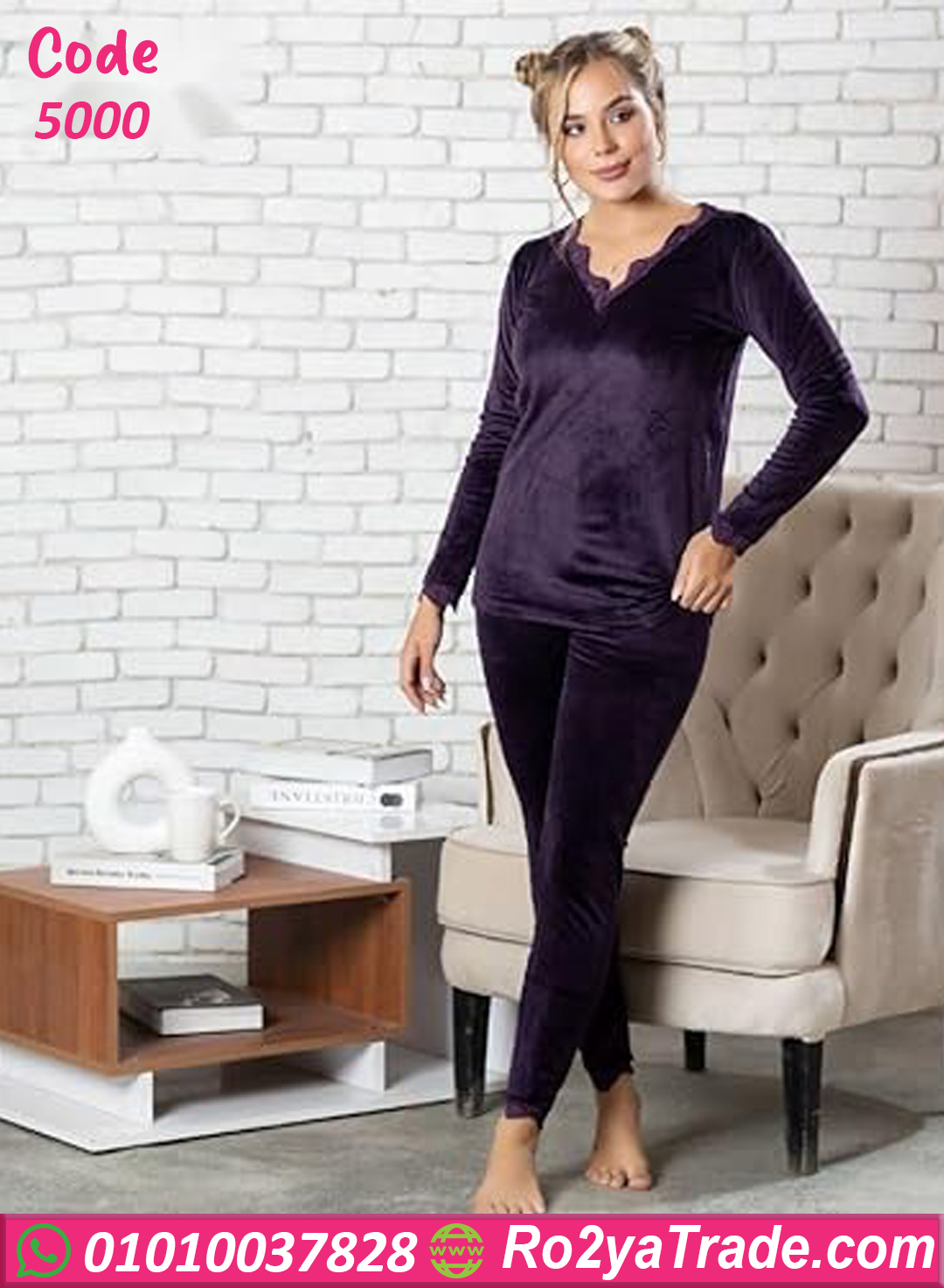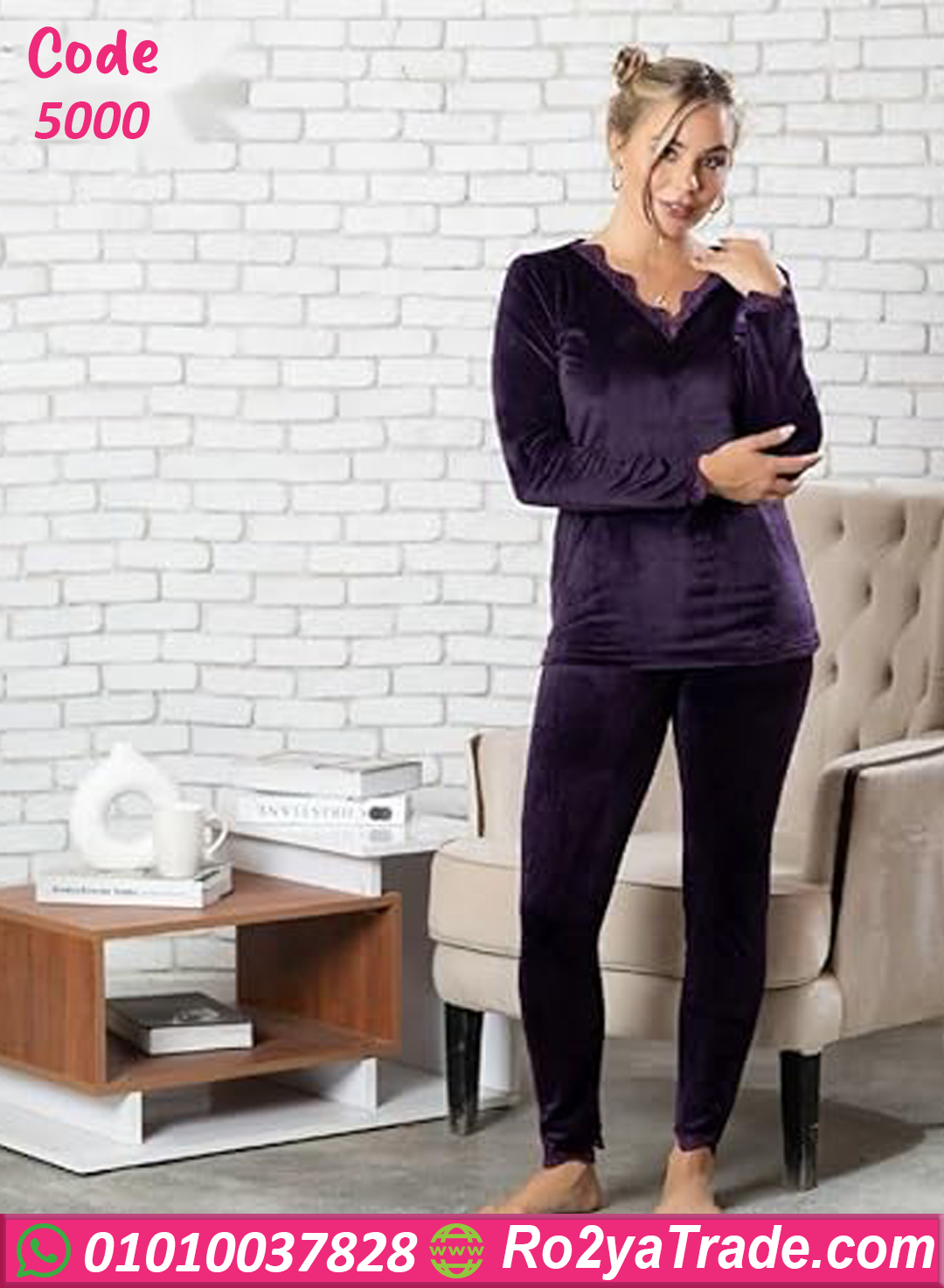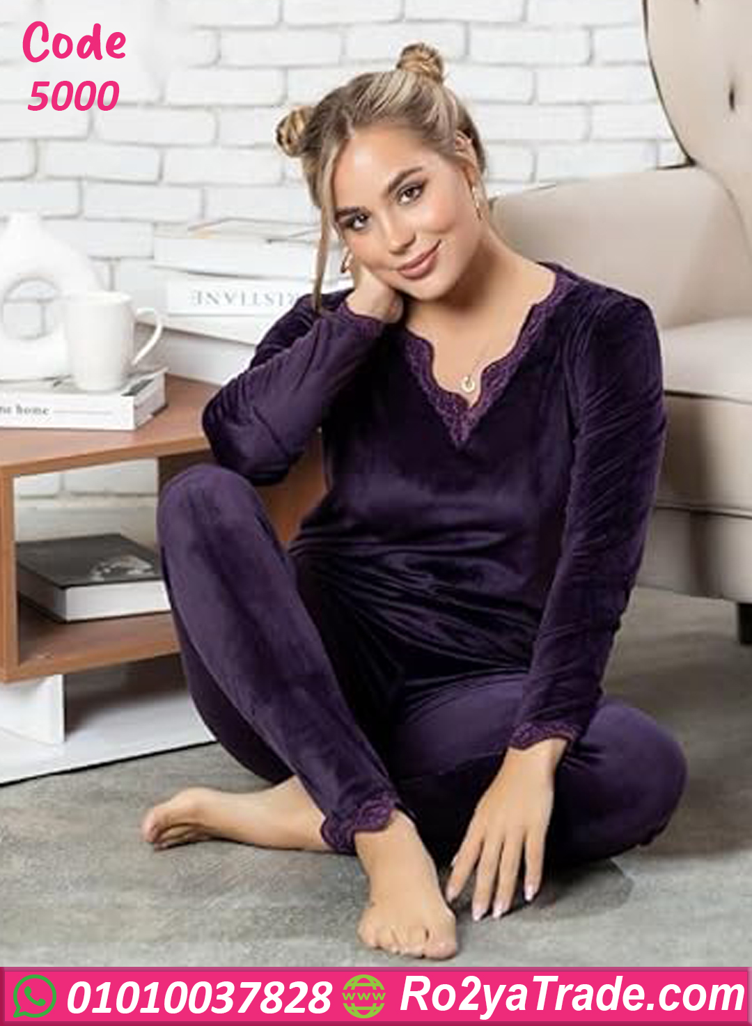 بيجامة شتوي ناعمة بخامة قطيفة فخمة، بتدي إحساس بالدفا والراحة طول اليوم 💕
