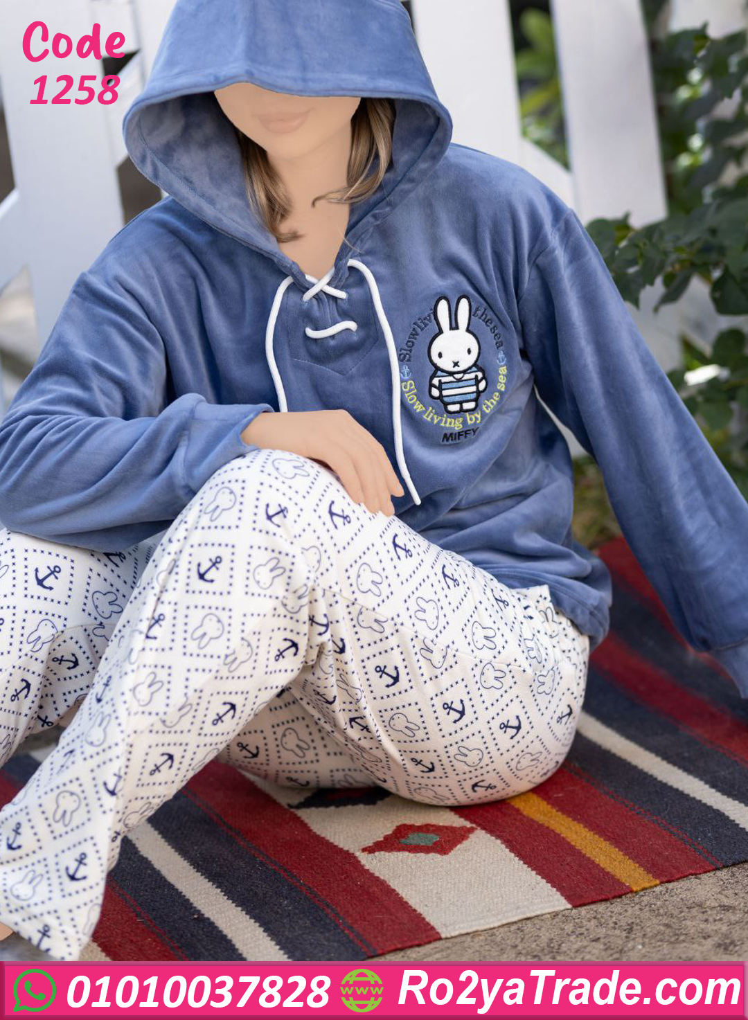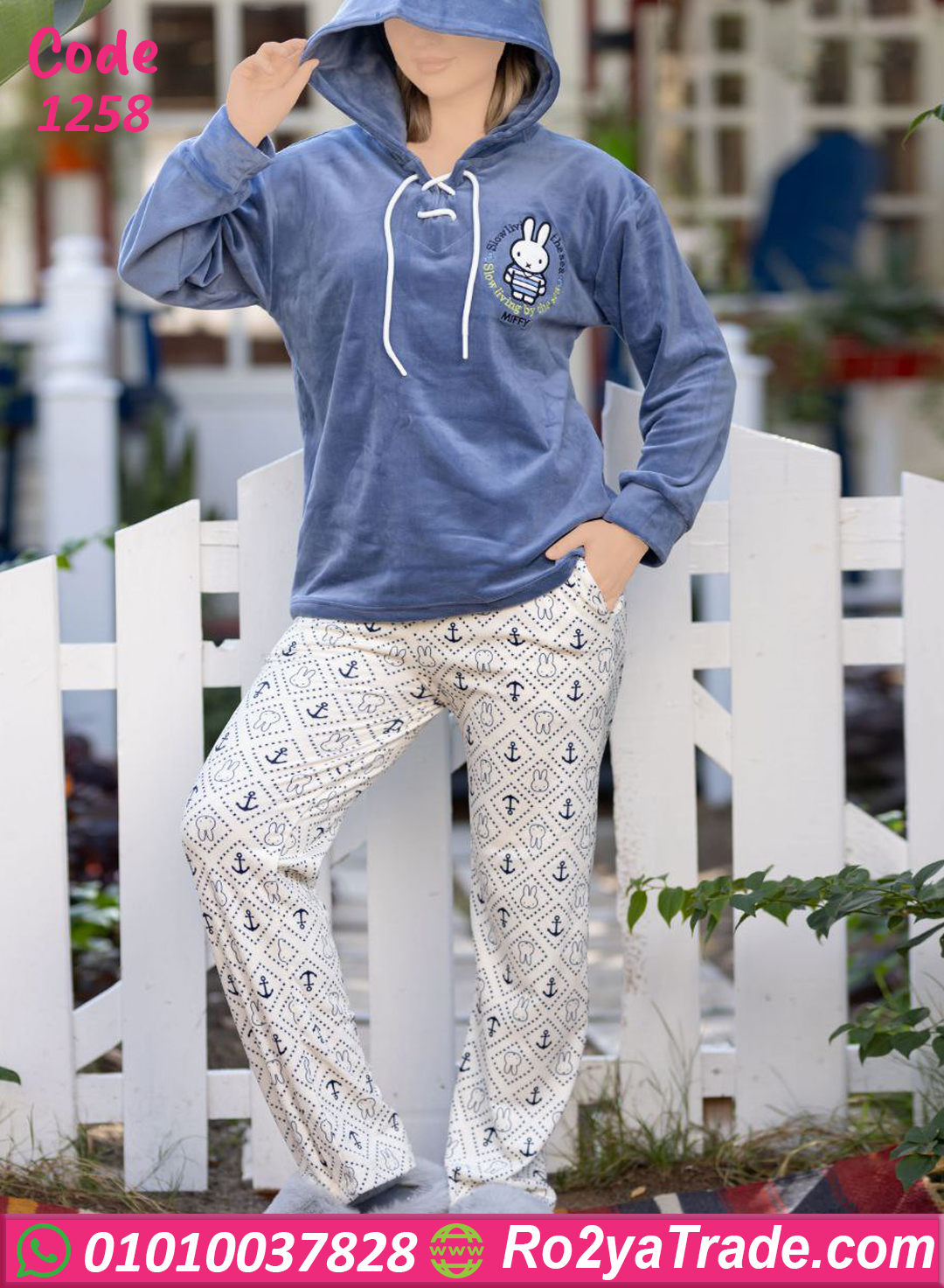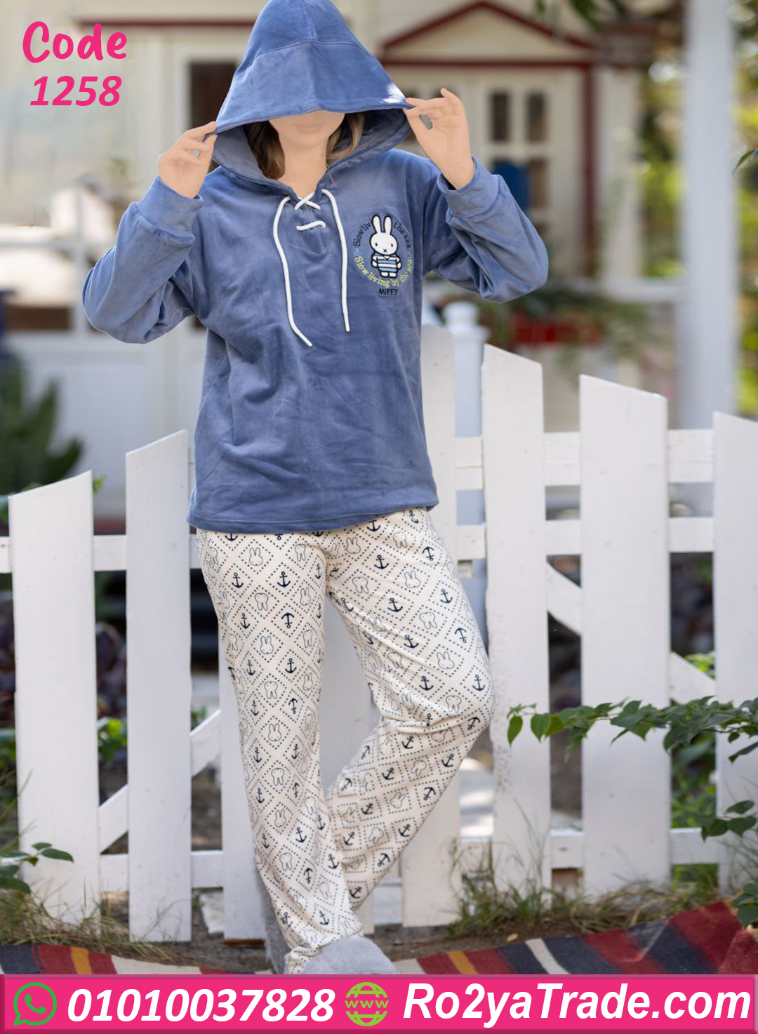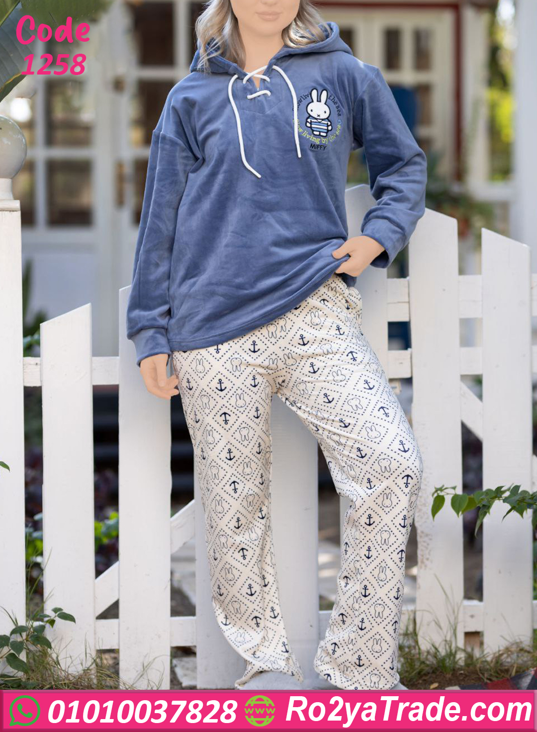 بيجامة قطيفة شتوي هودي مطبوعة – كود 1258